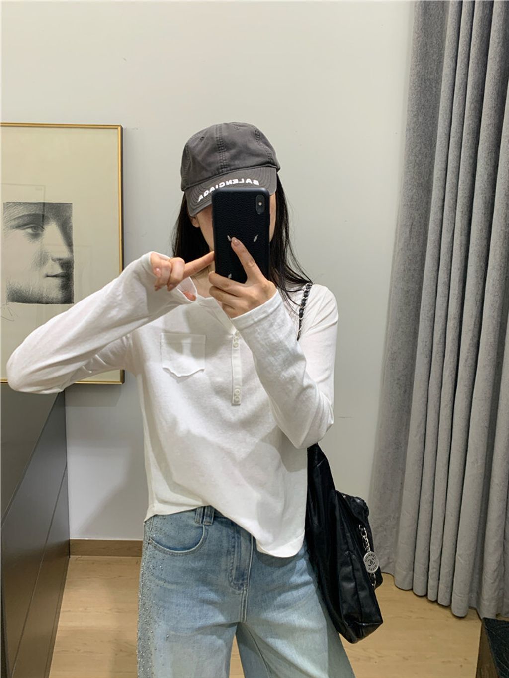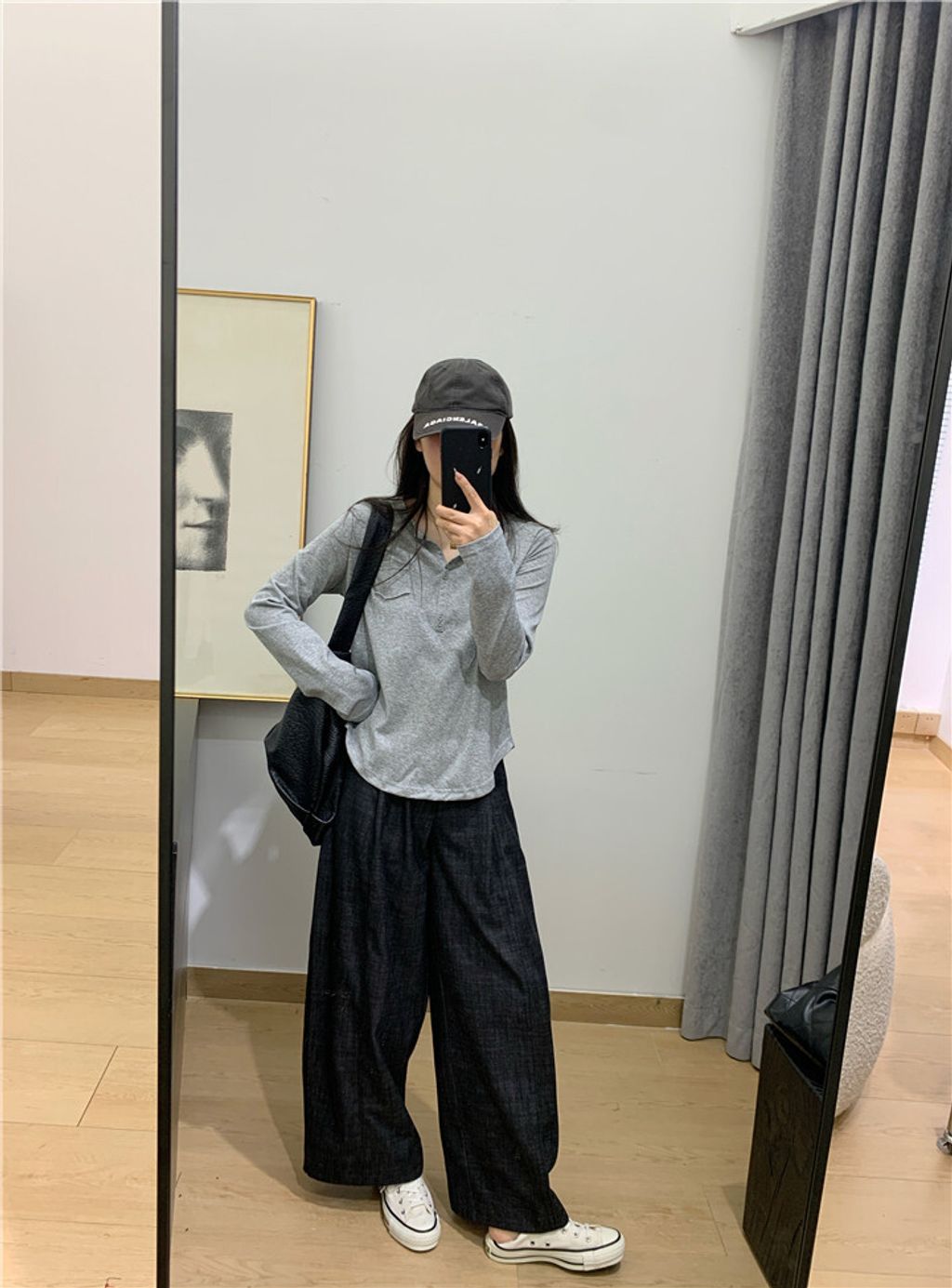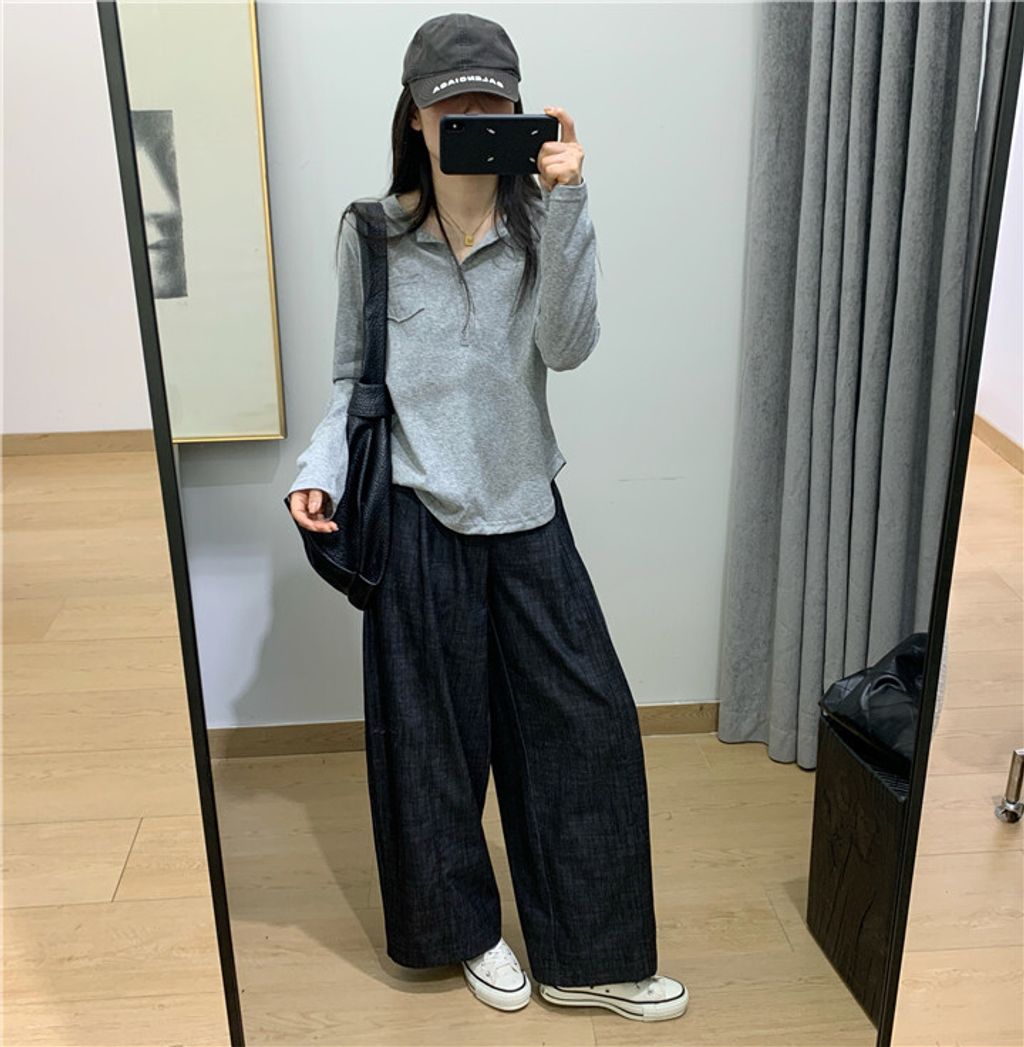 簡約雪花棉排釦親膚長T*黑米白花灰*【S0323-140】