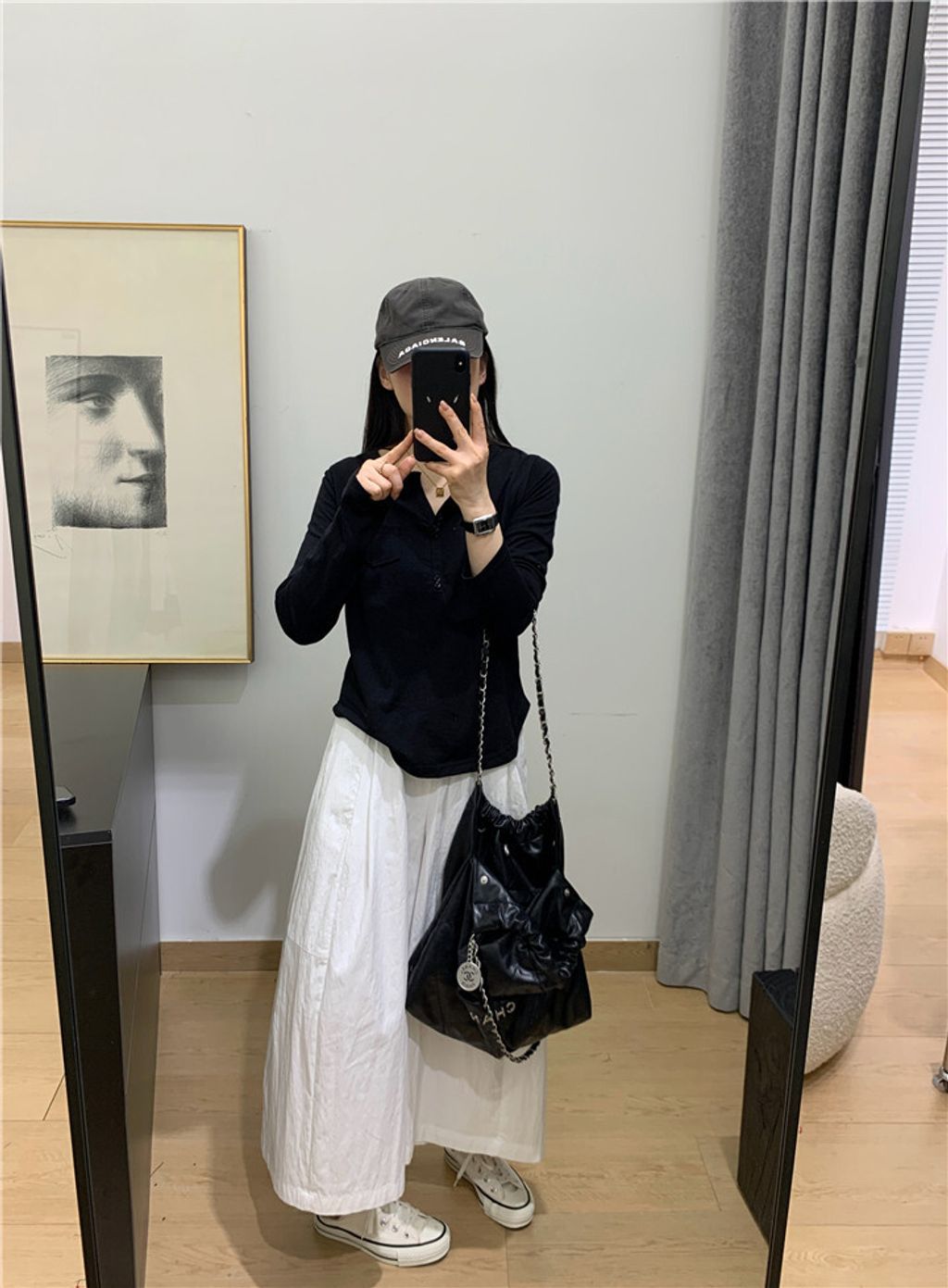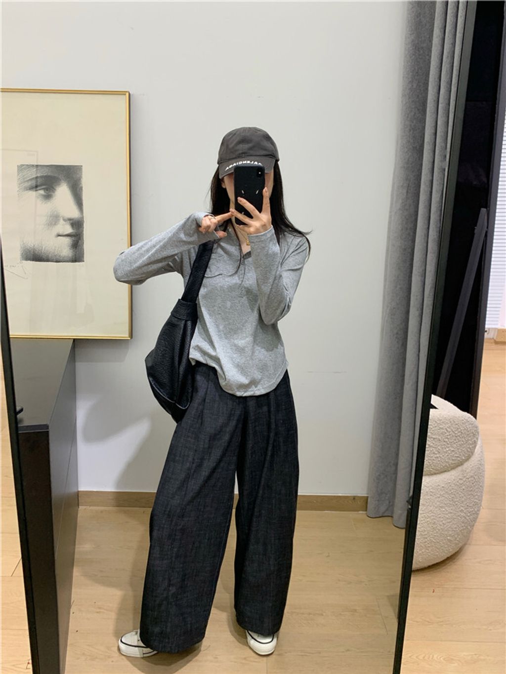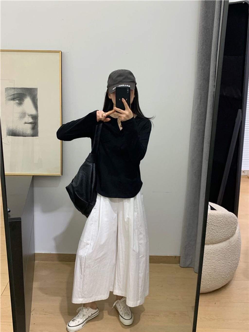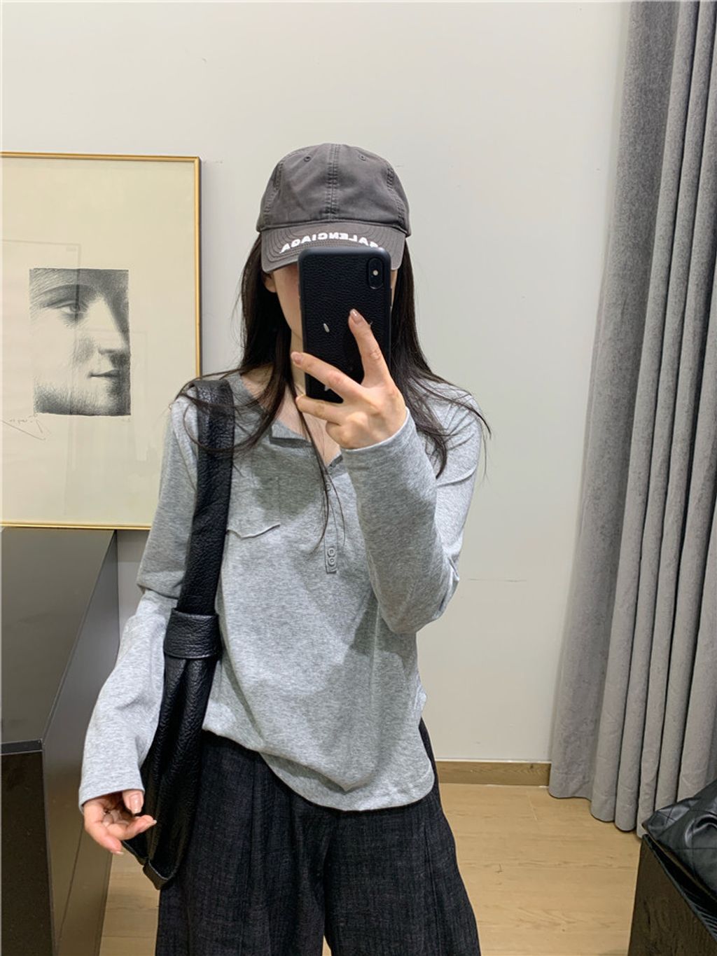 簡約雪花棉排釦親膚長T*黑米白花灰*【S0323-140】