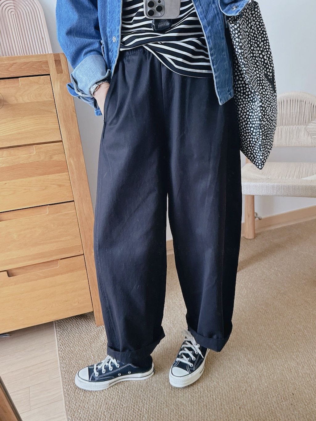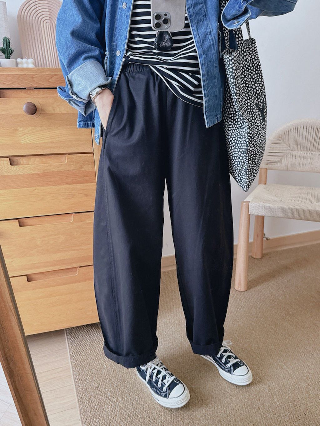 純色系好穿寬鬆感百搭休閒褲*卡其黑深藍*【S0323-130】