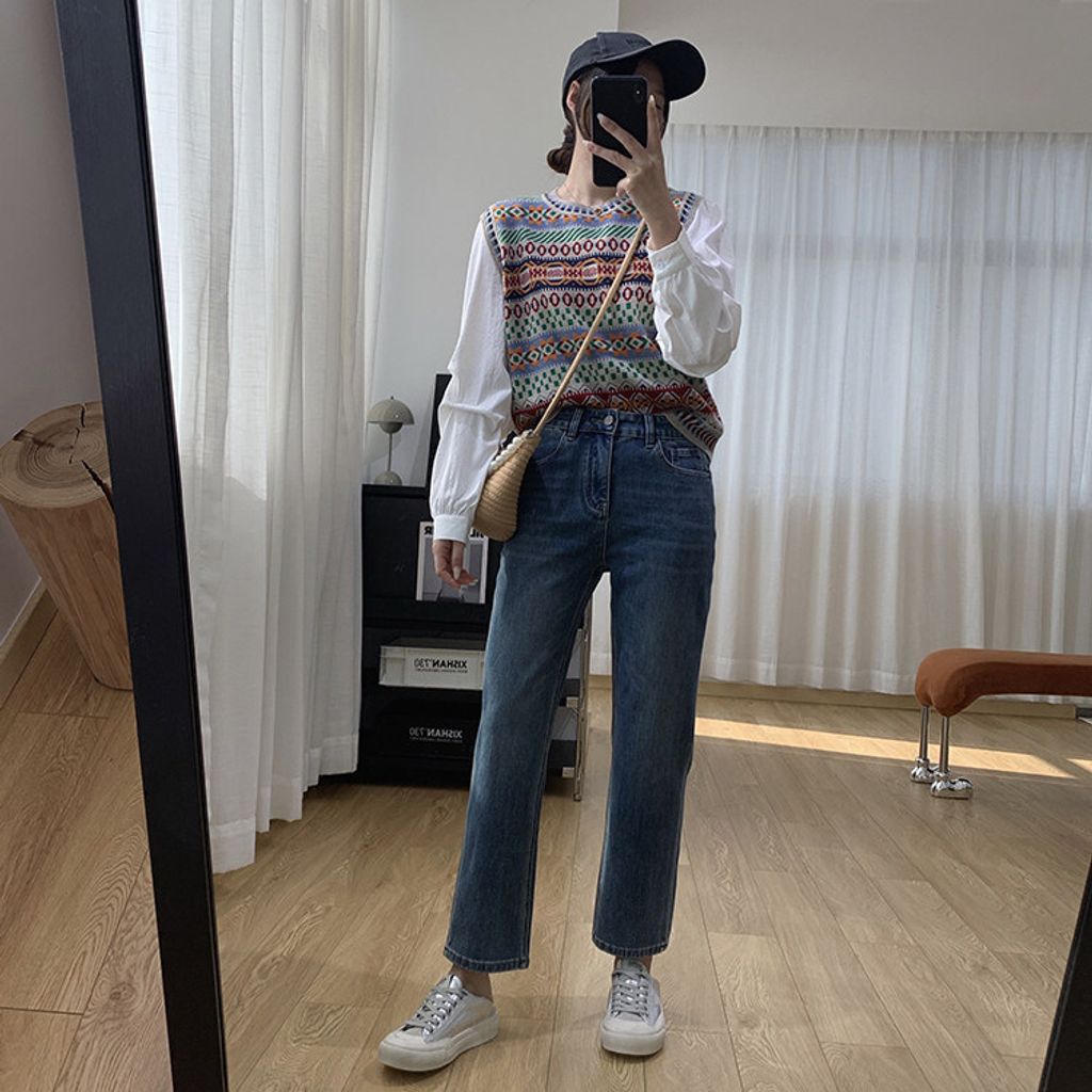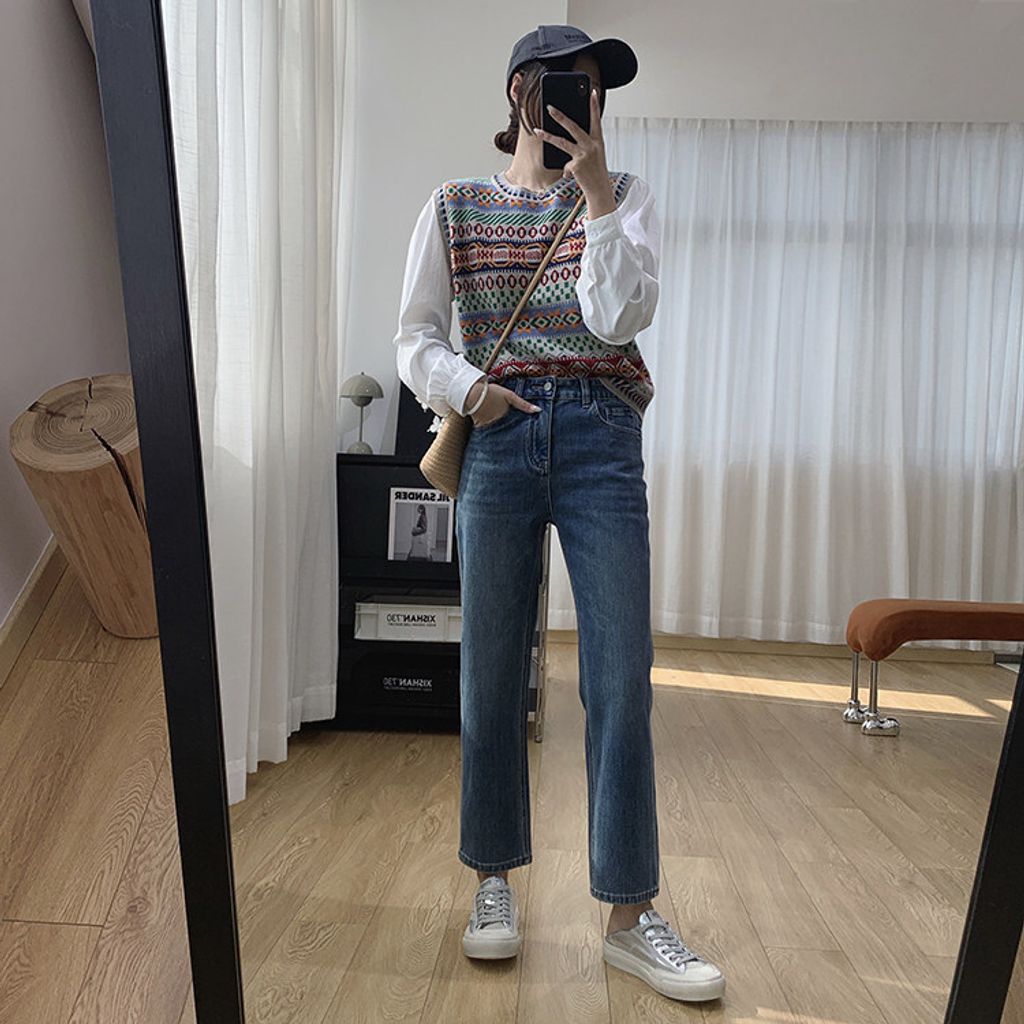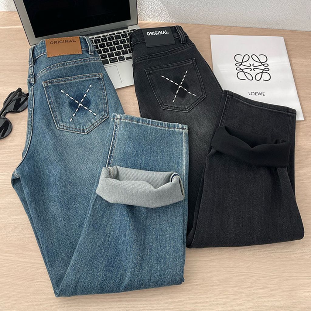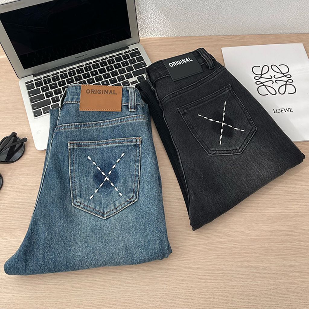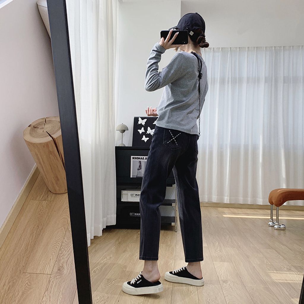 設計款復古刷色叉叉車線彈力顯瘦牛仔褲*黑灰復古藍*【S0228-63】