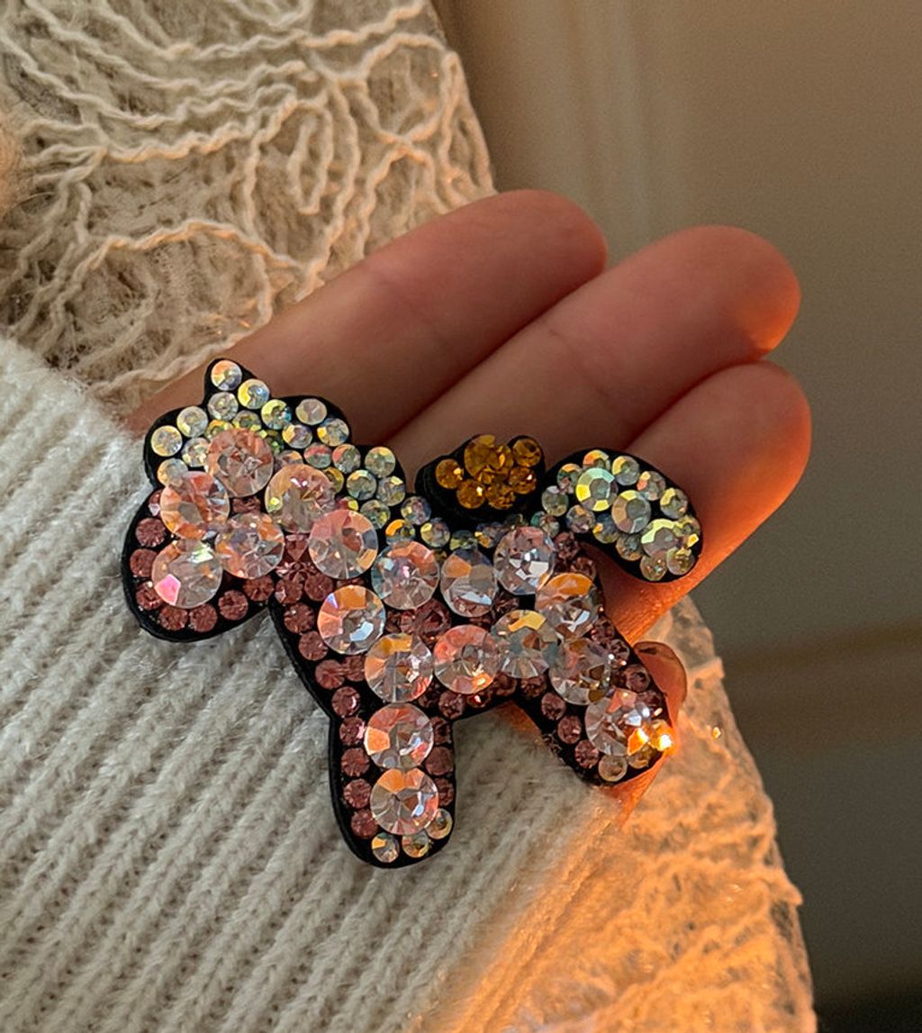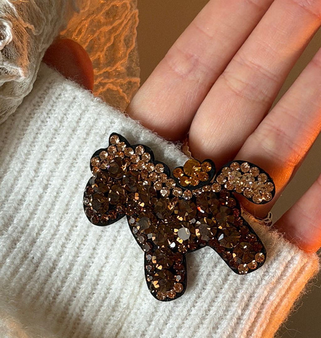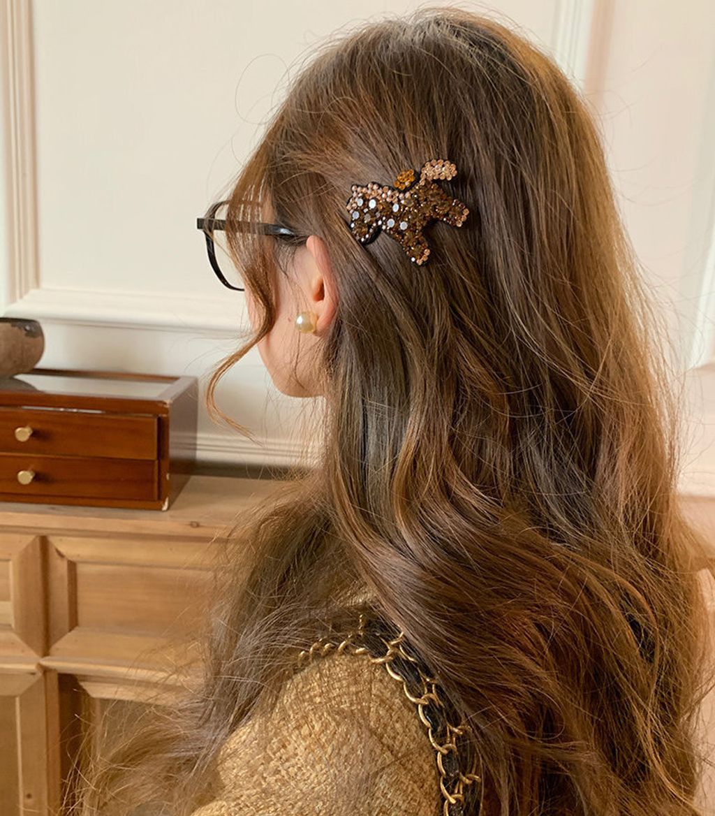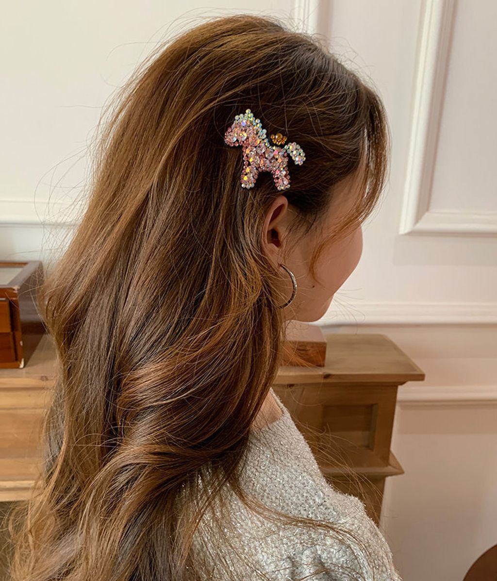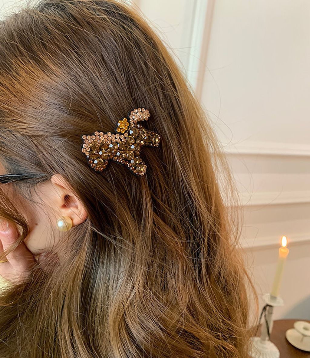韓 俏皮閃亮水鑽小馬髮夾*粉咖*【S0228-72】