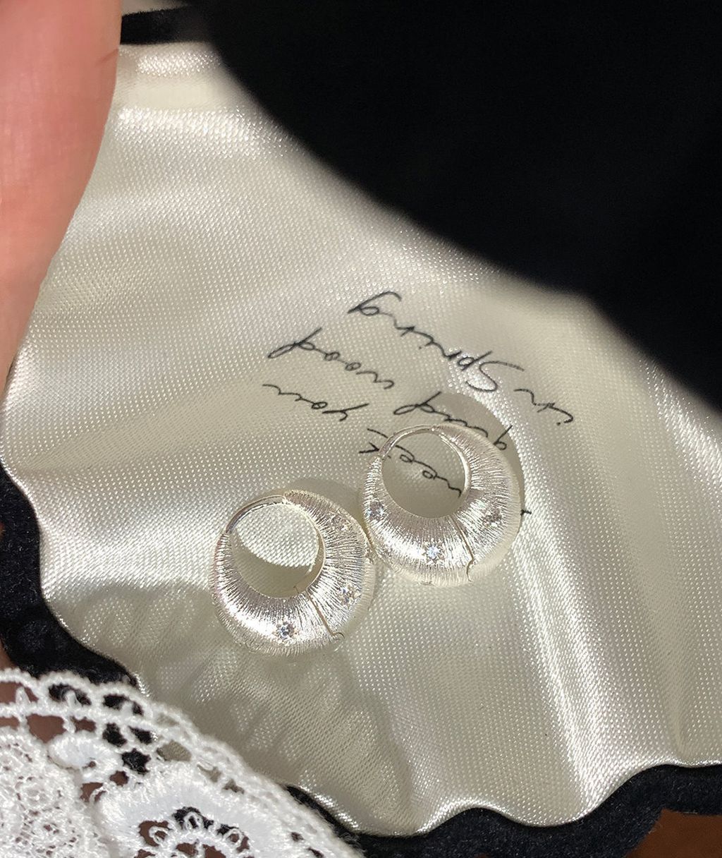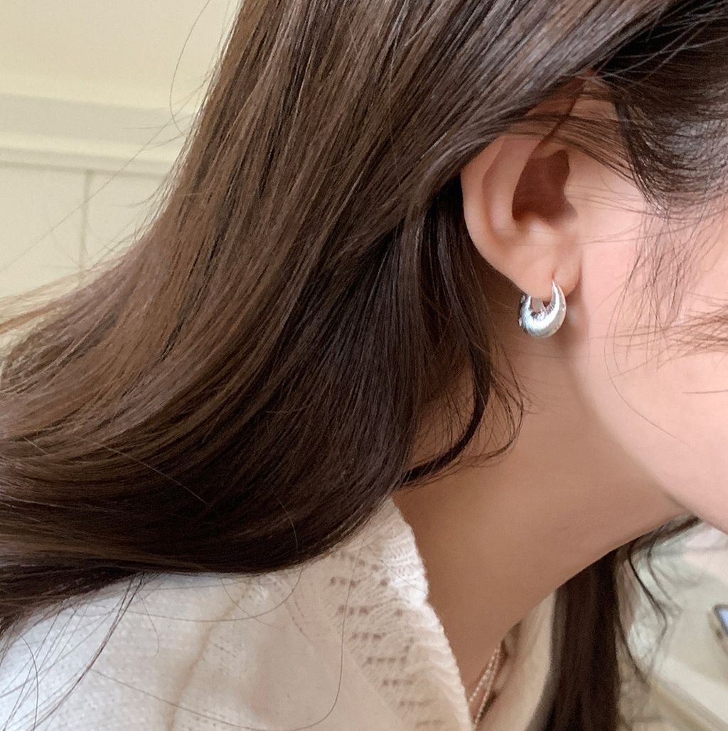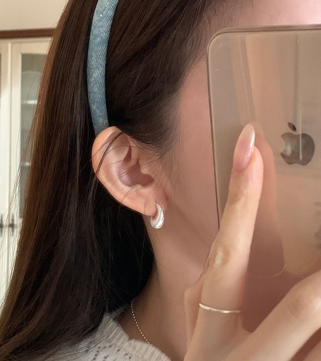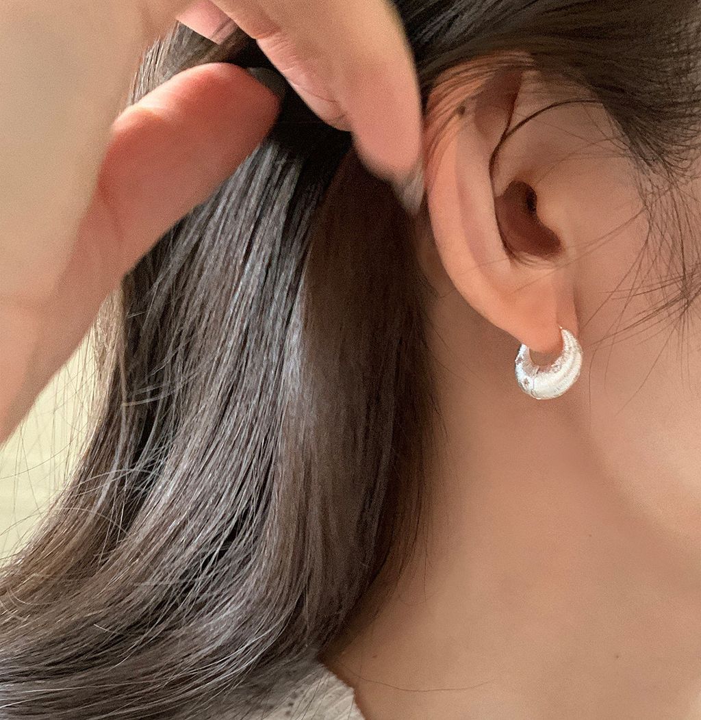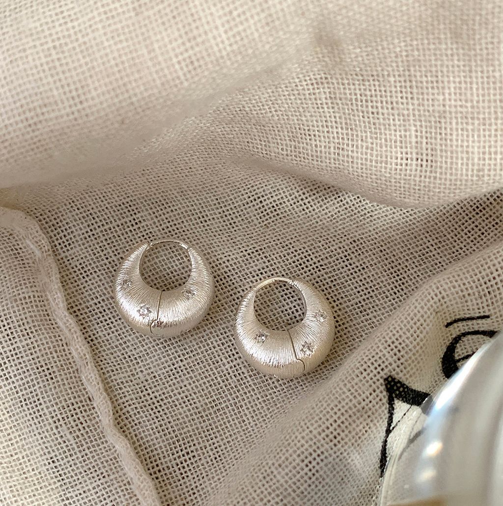 韓 優雅設計感紋路設計彎月水鑽耳環*銀*【S0228-64】