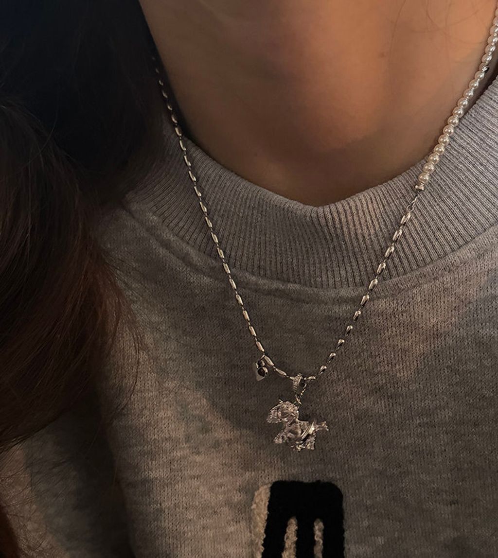 韓 可愛亮眼水鑽小馬設計質感項鍊*銀*【S0228-73】