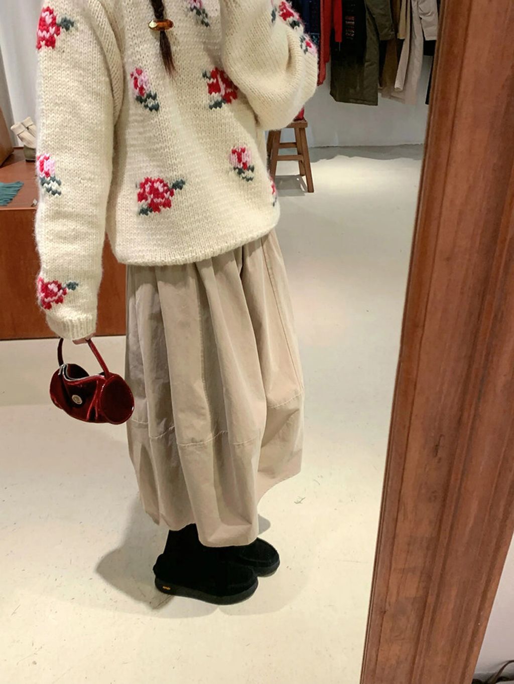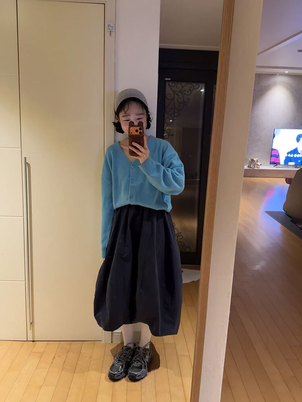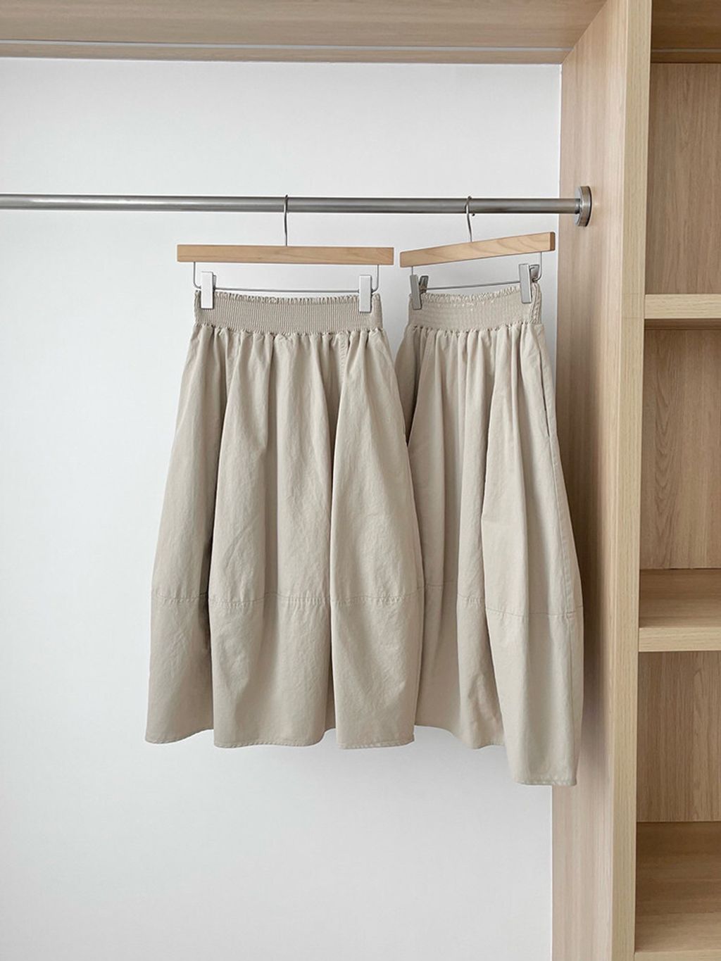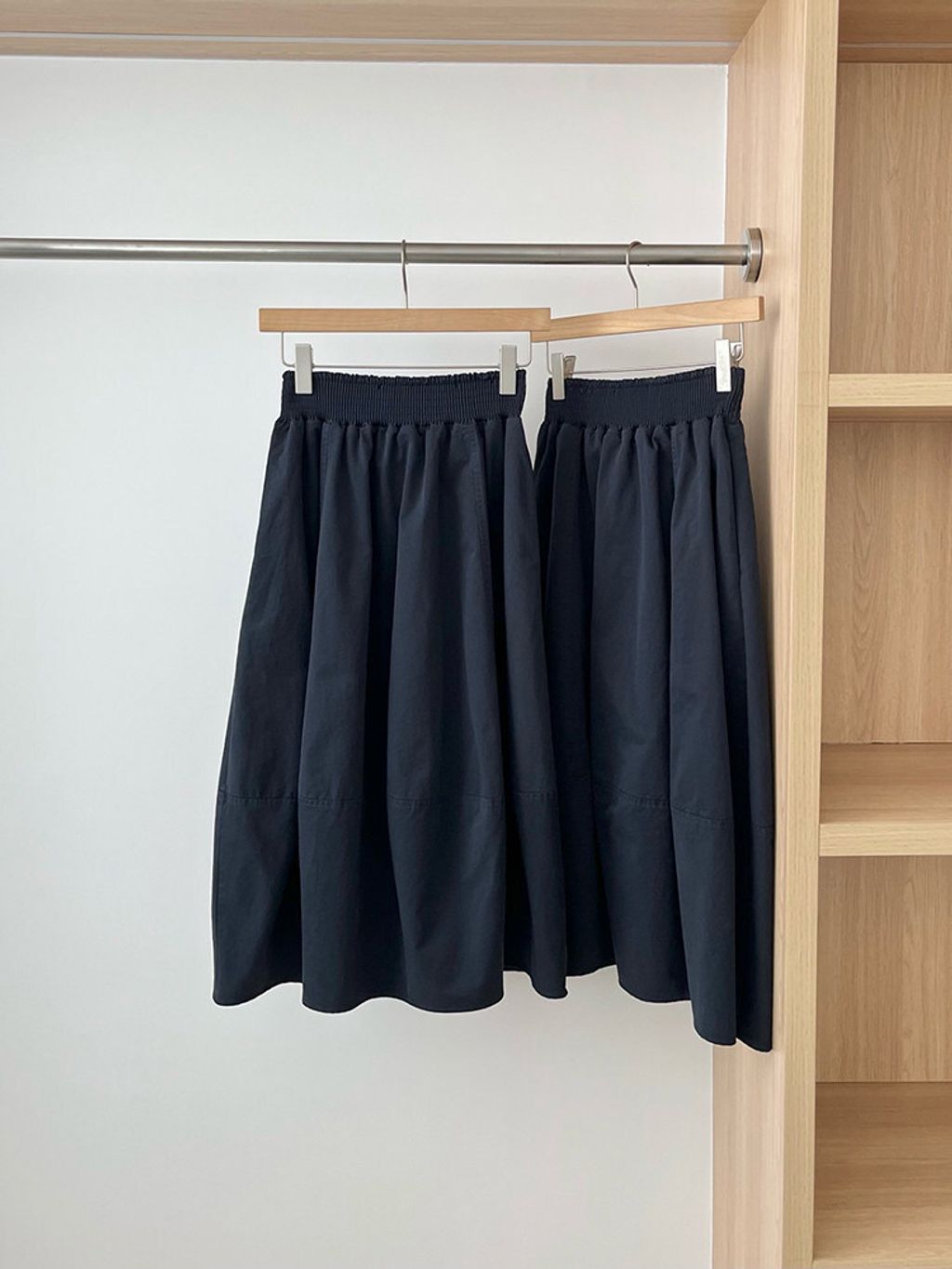 韓 可愛花苞設計蓬蓬腰側口袋長裙*卡其深藍*【S0228-07】
