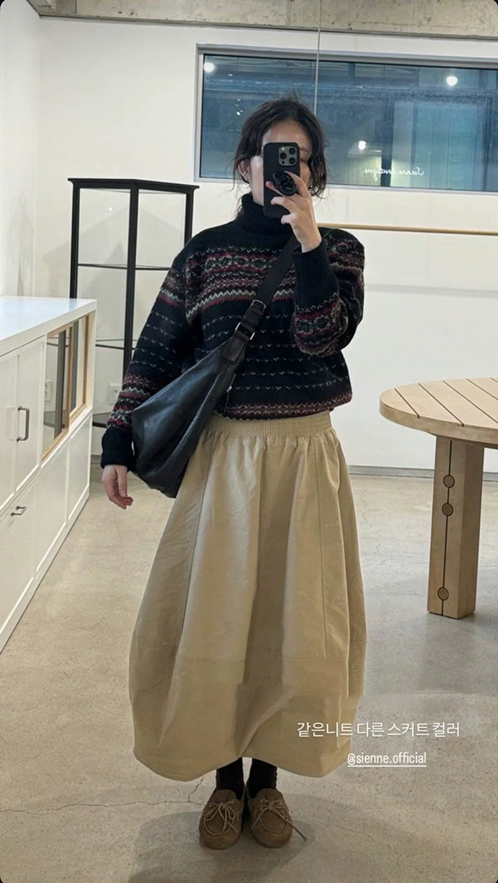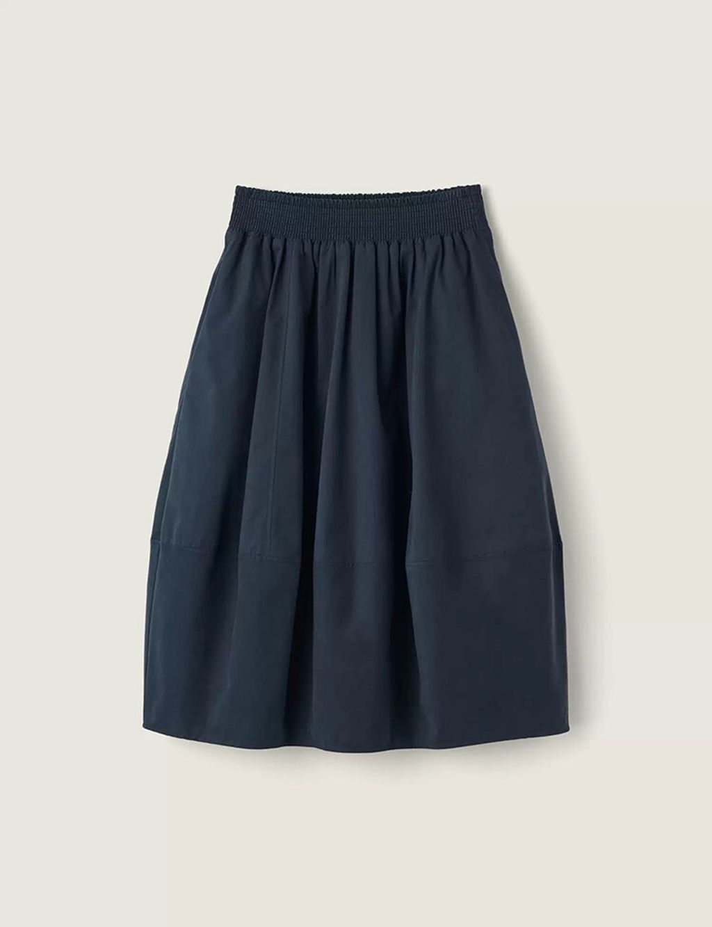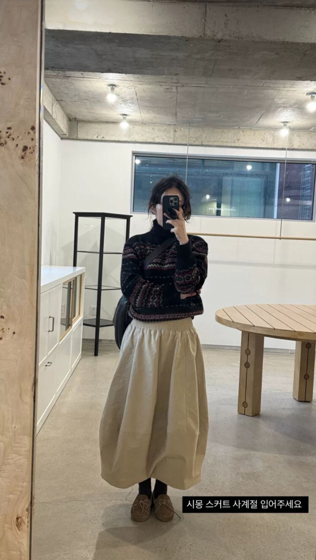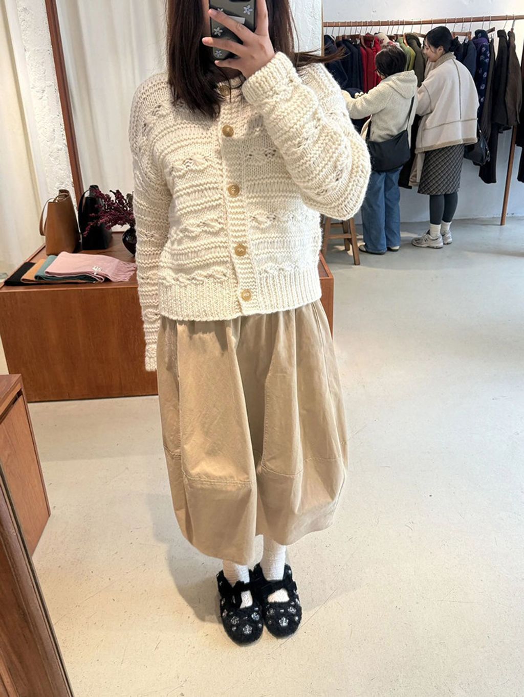 韓 可愛花苞設計蓬蓬腰側口袋長裙*卡其深藍*【S0228-07】