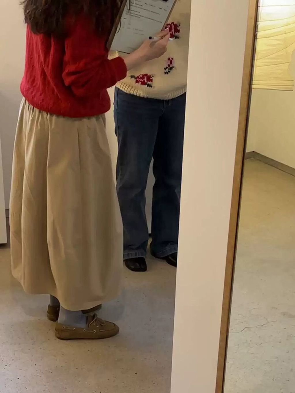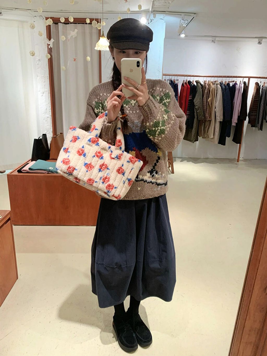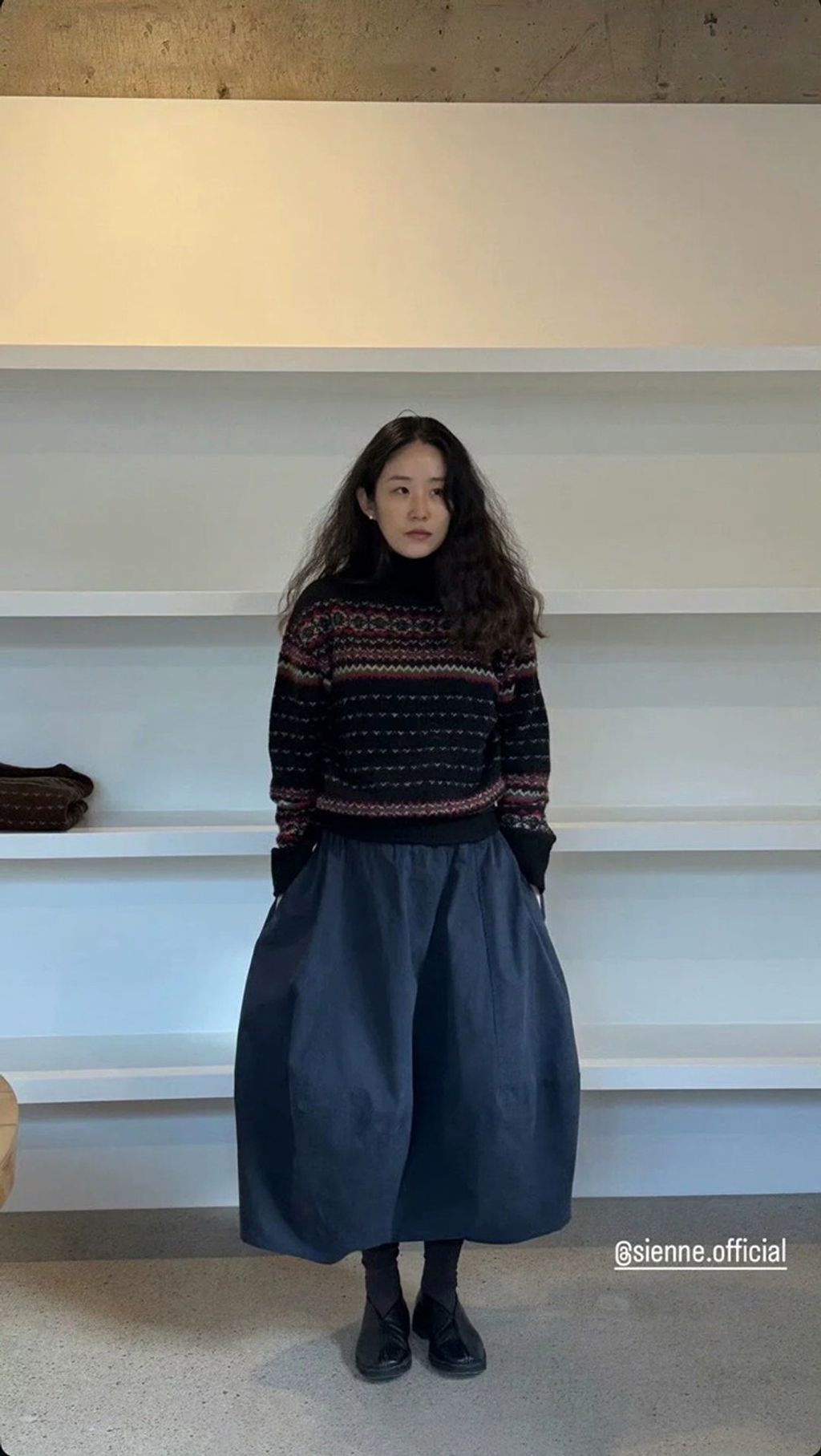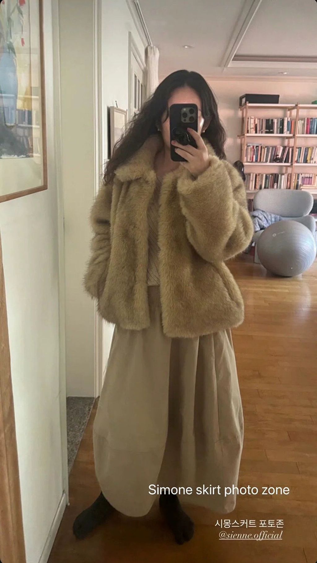 韓 可愛花苞設計蓬蓬腰側口袋長裙*卡其深藍*【S0228-07】