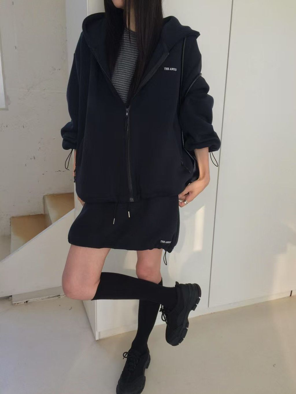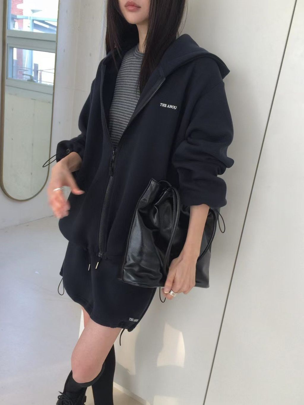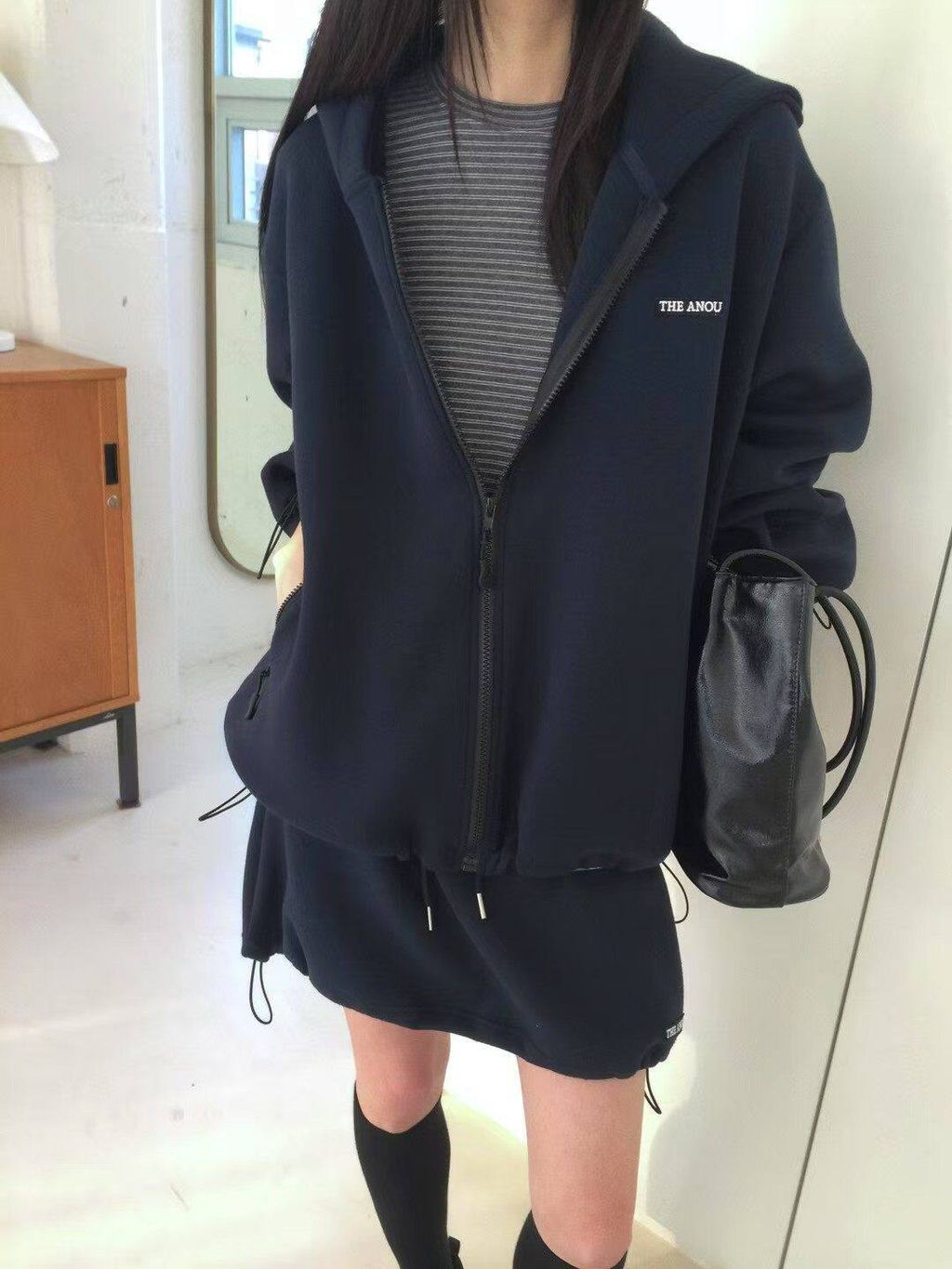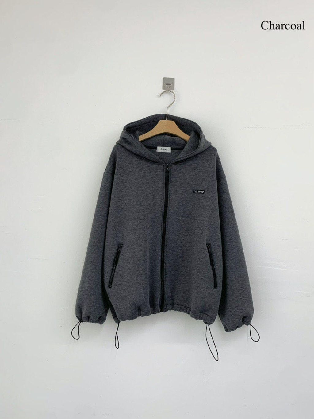 韓 復古學院風休閒感寬鬆連帽外套*灰深藍*【S0228-17】