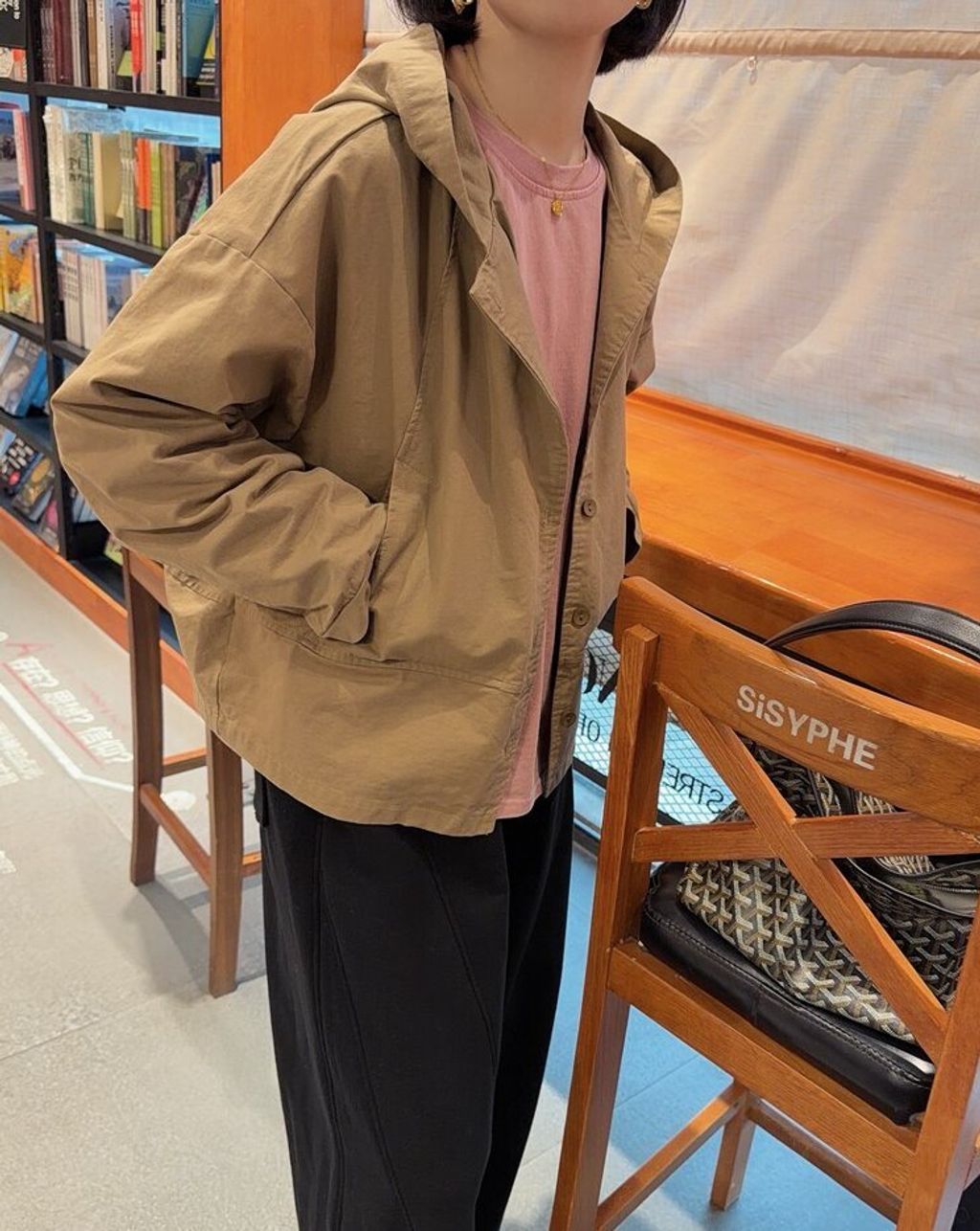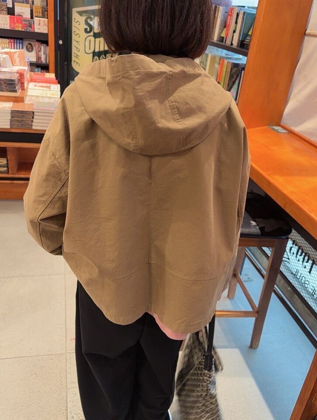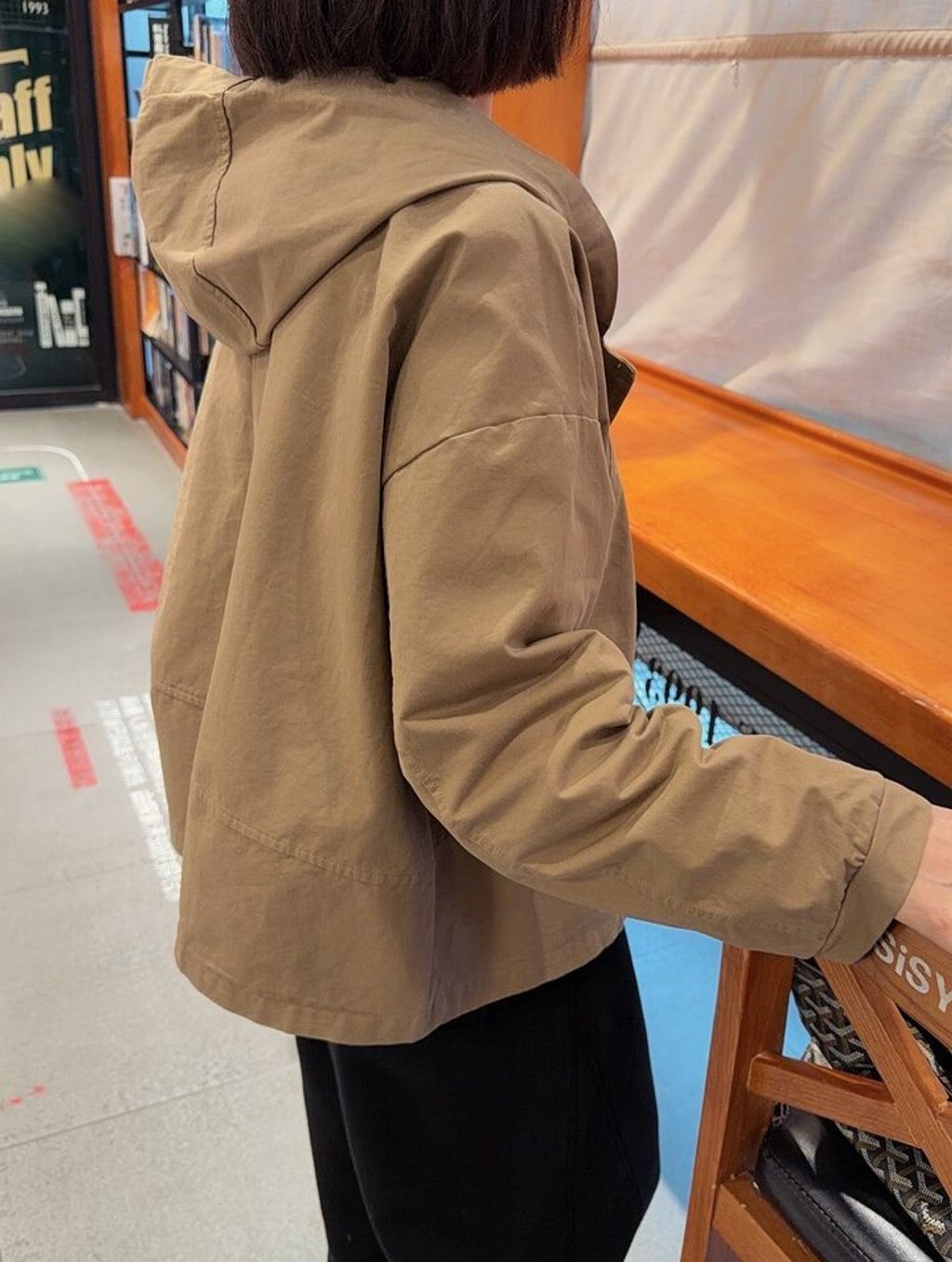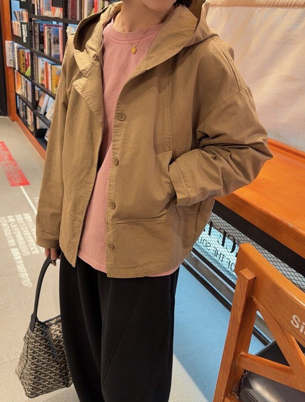 韓 復古簡約感寬鬆連帽外套*黑卡其*【S0323-152】