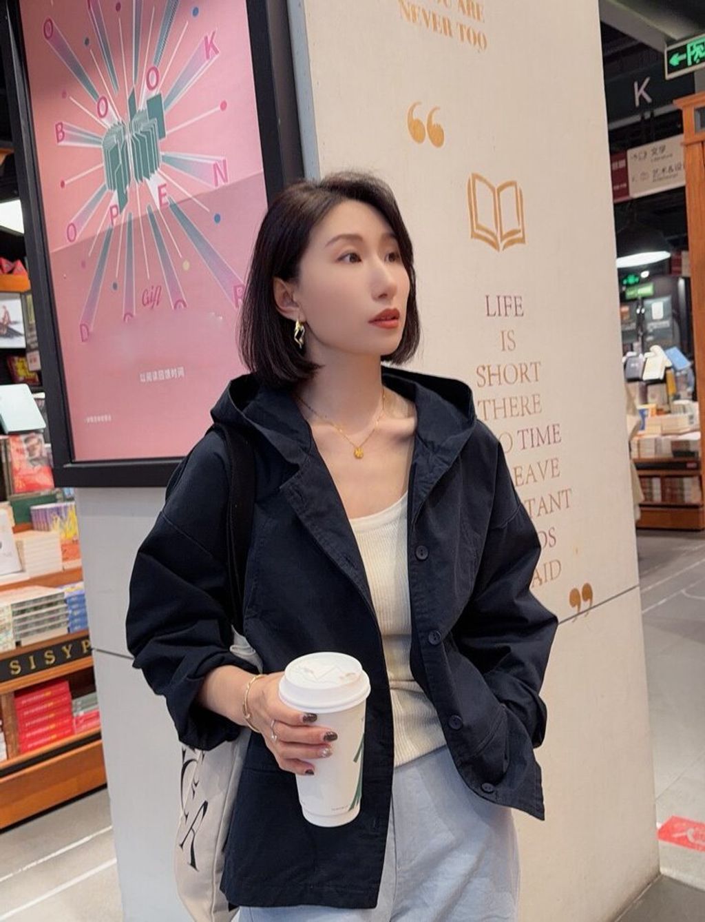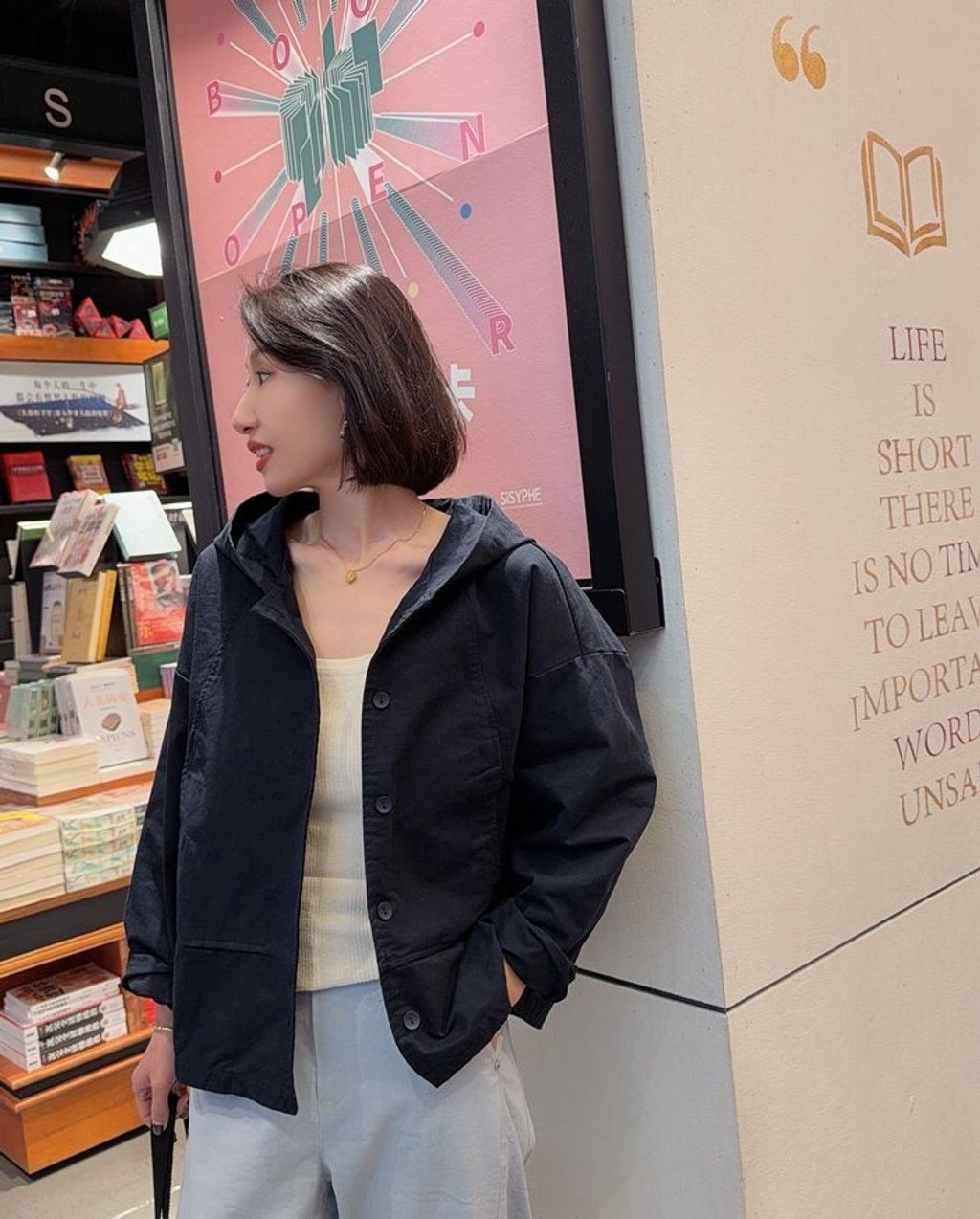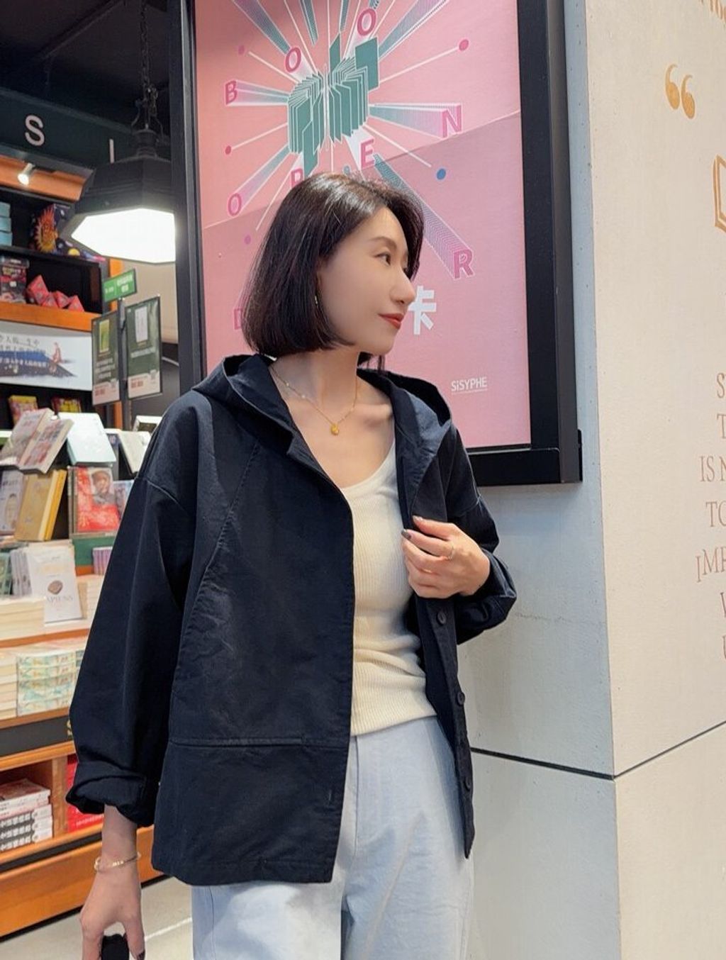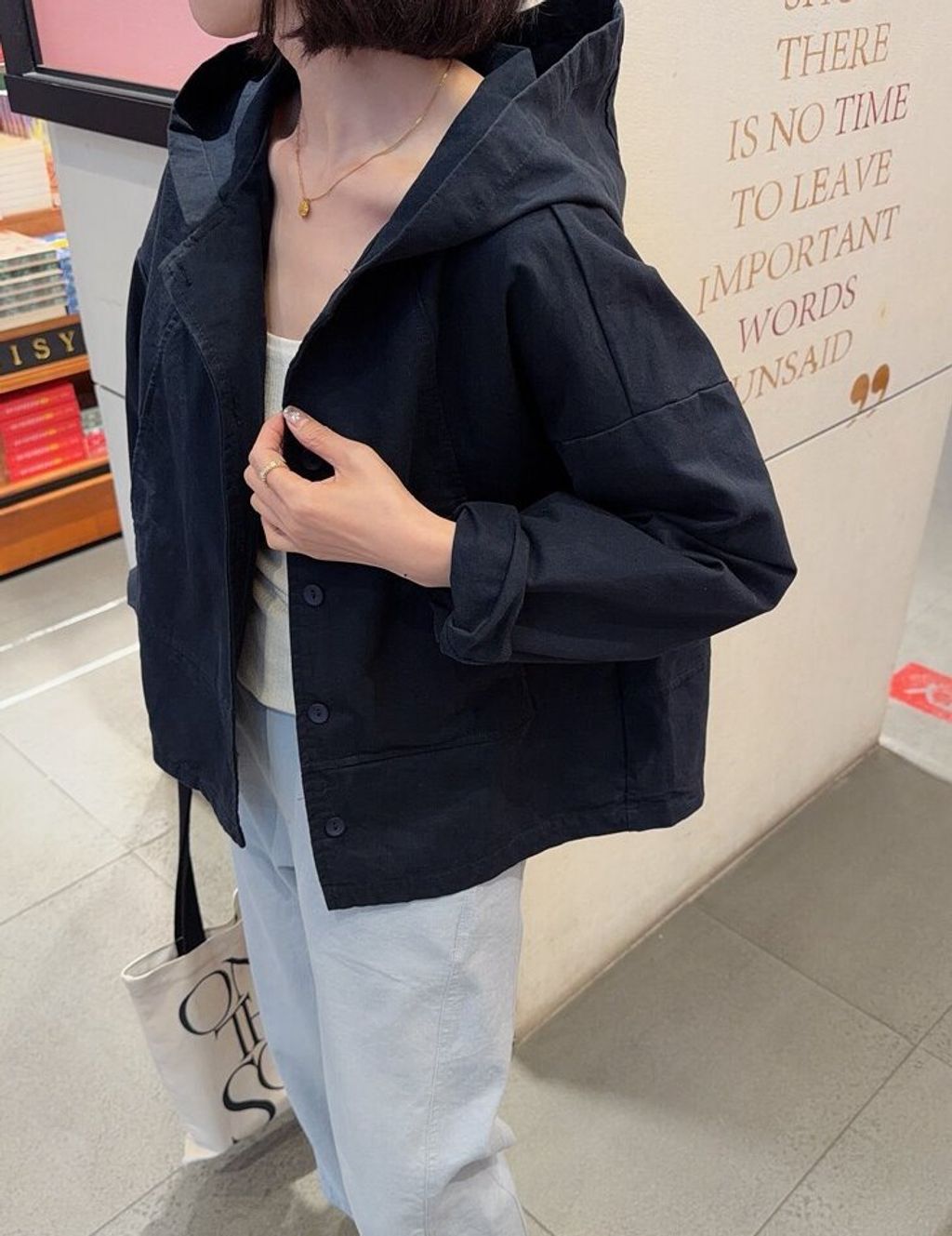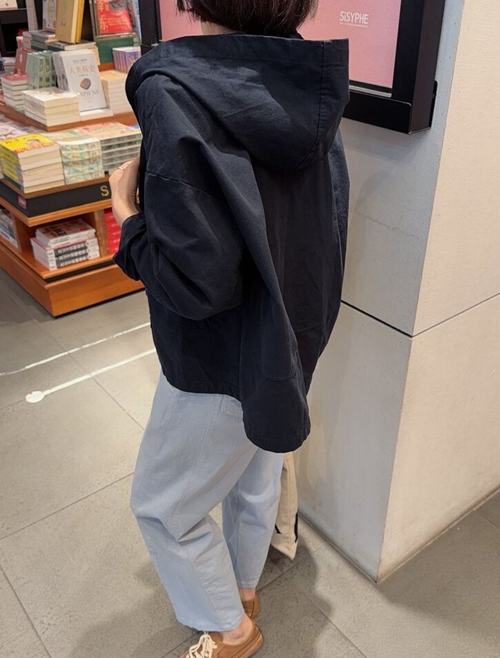 韓 復古簡約感寬鬆連帽外套*黑卡其*【S0323-152】