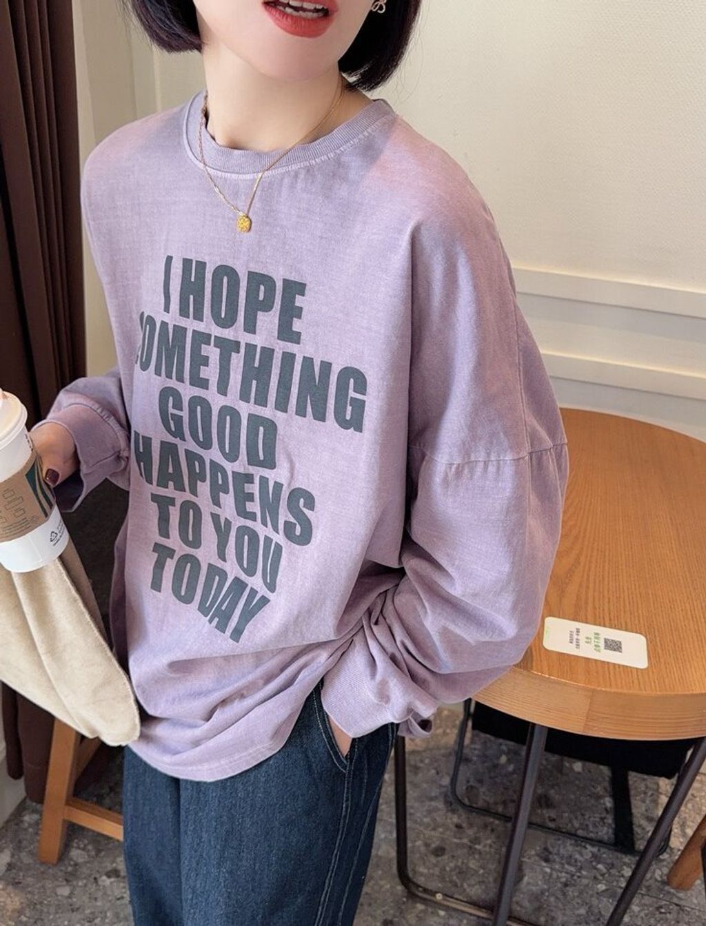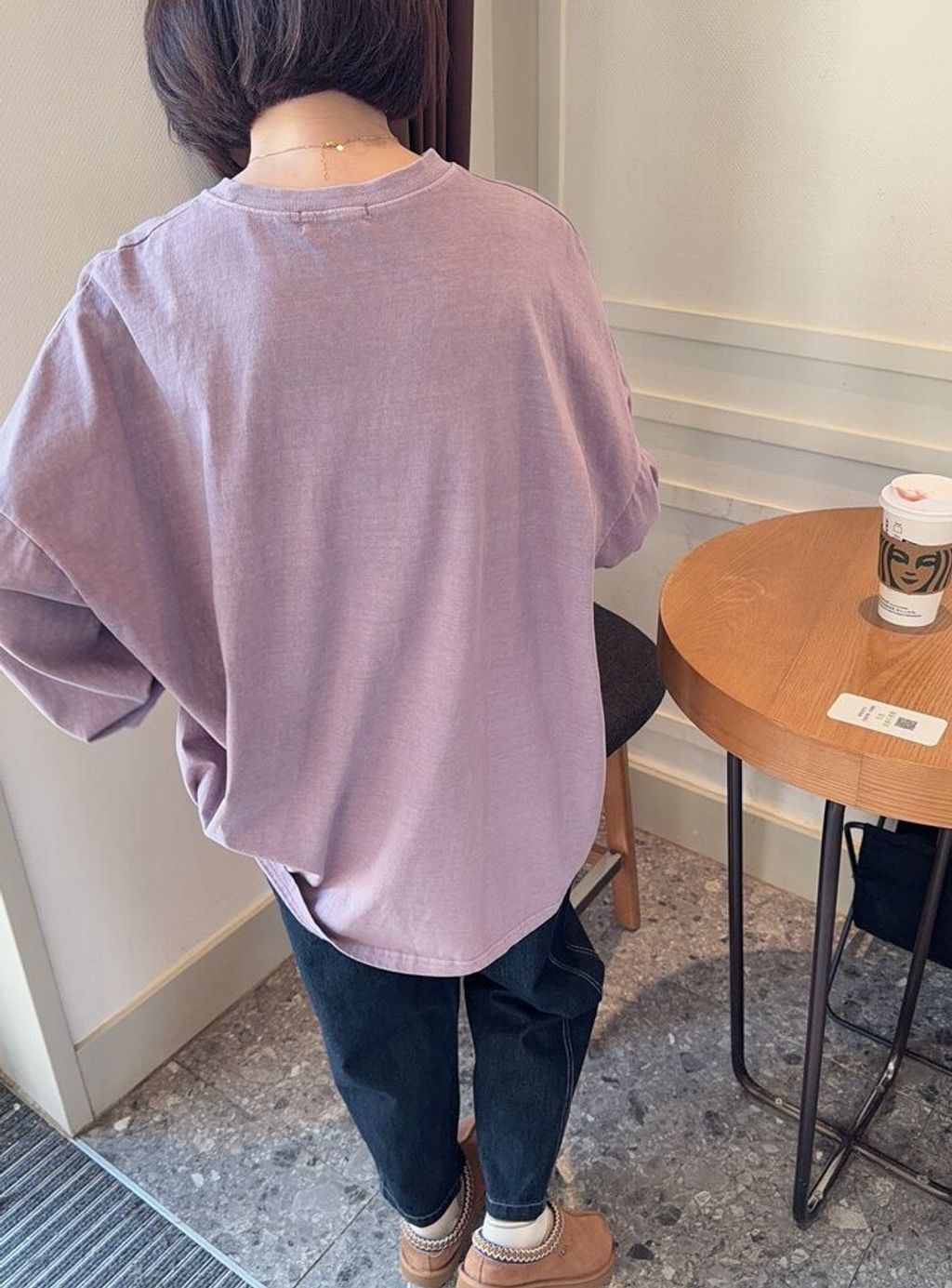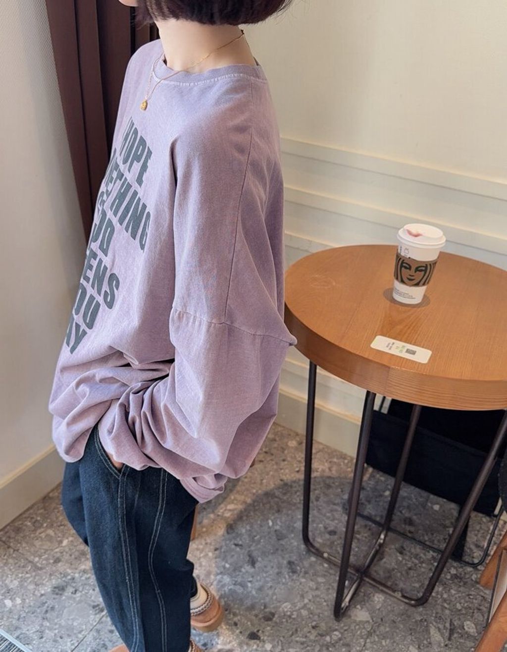 韓 復古美式字母寬鬆質感長T*紫*【S0228-107】