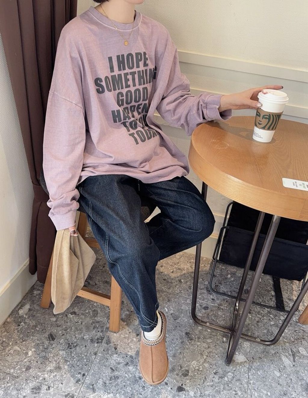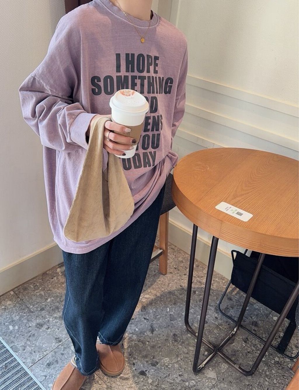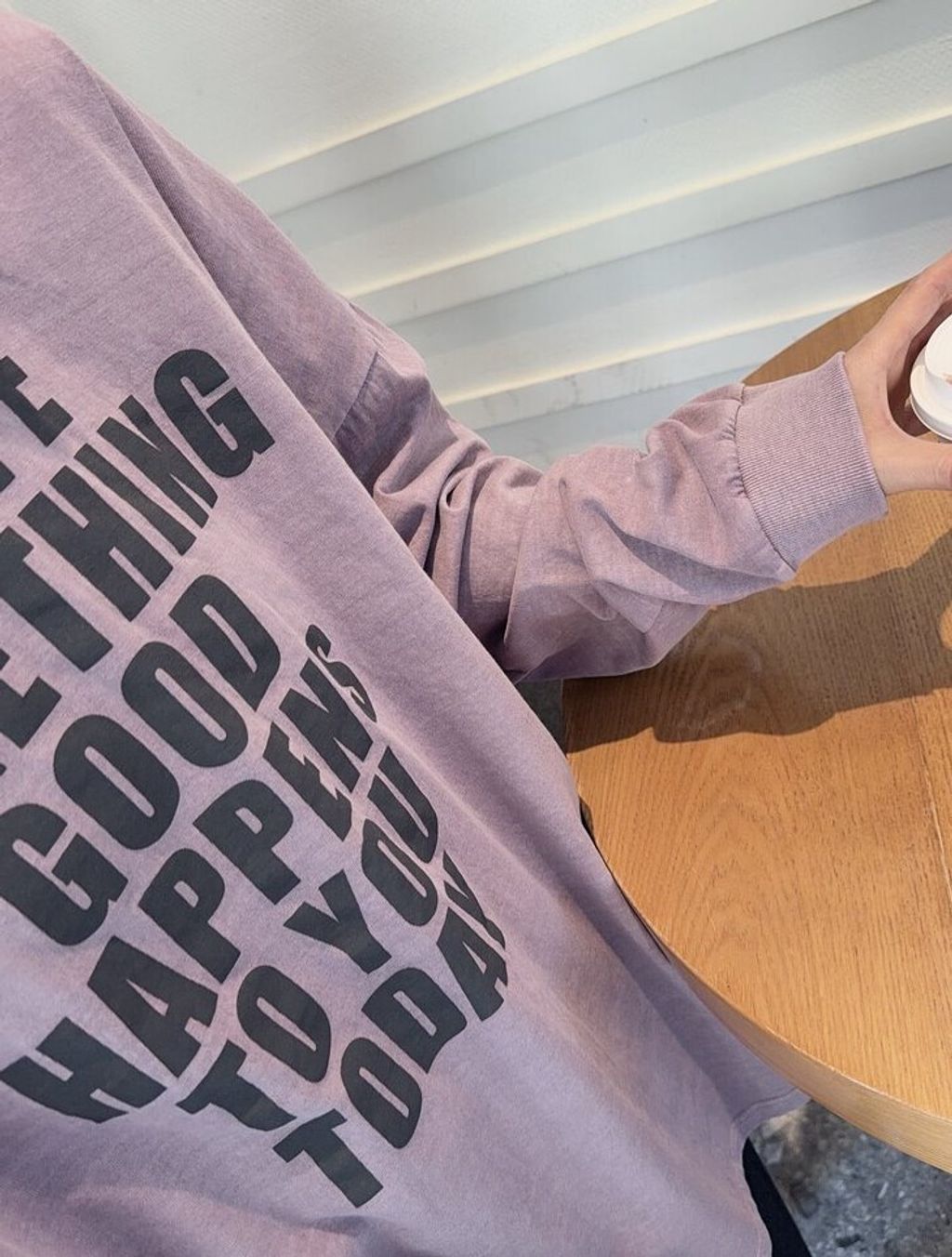 韓 復古美式字母寬鬆質感長T*紫*【S0228-107】
