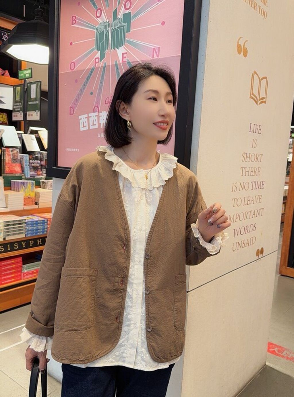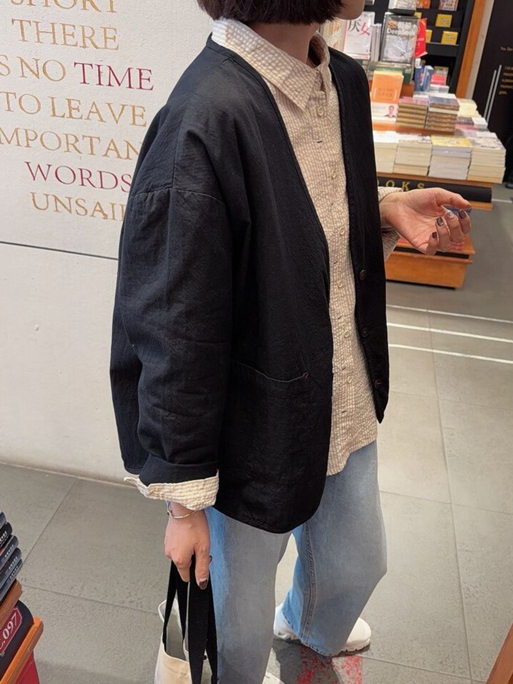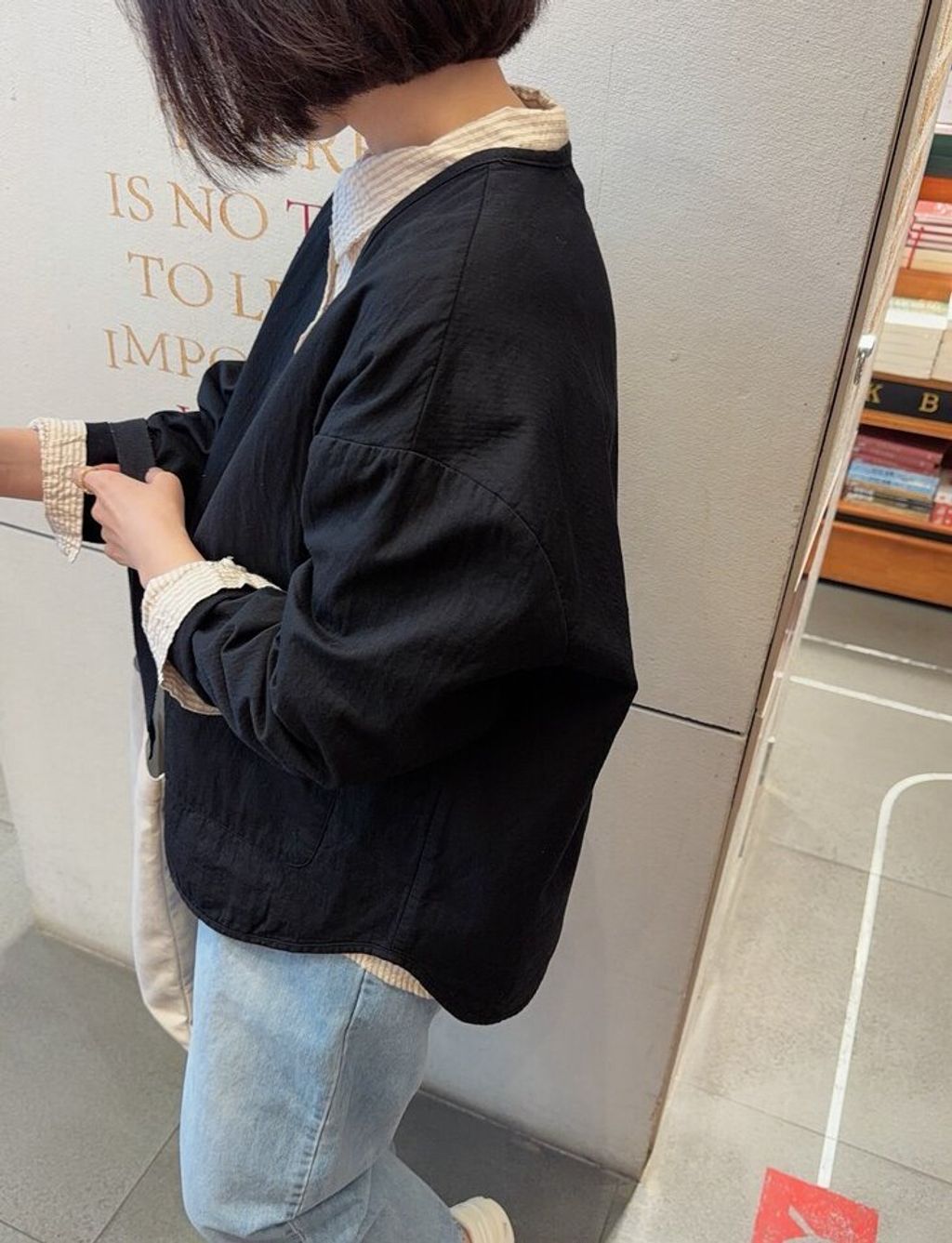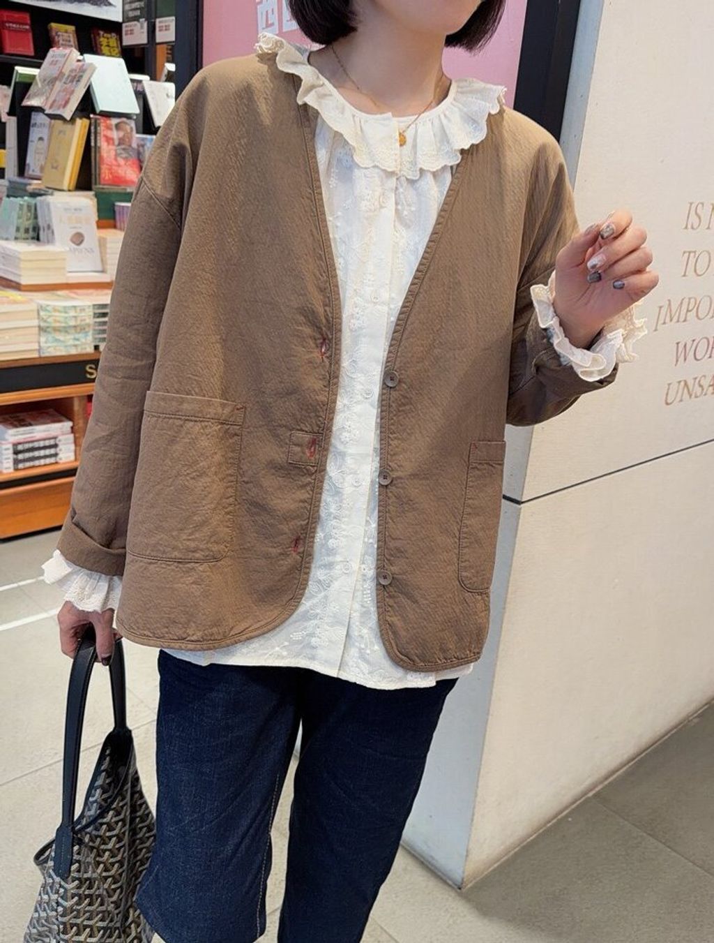 韓 復古設計感V領寬鬆感外套*黑深卡其*【S0323-153】