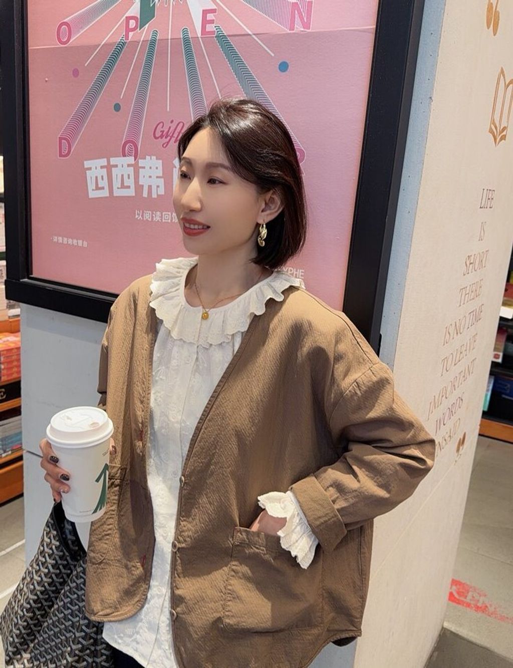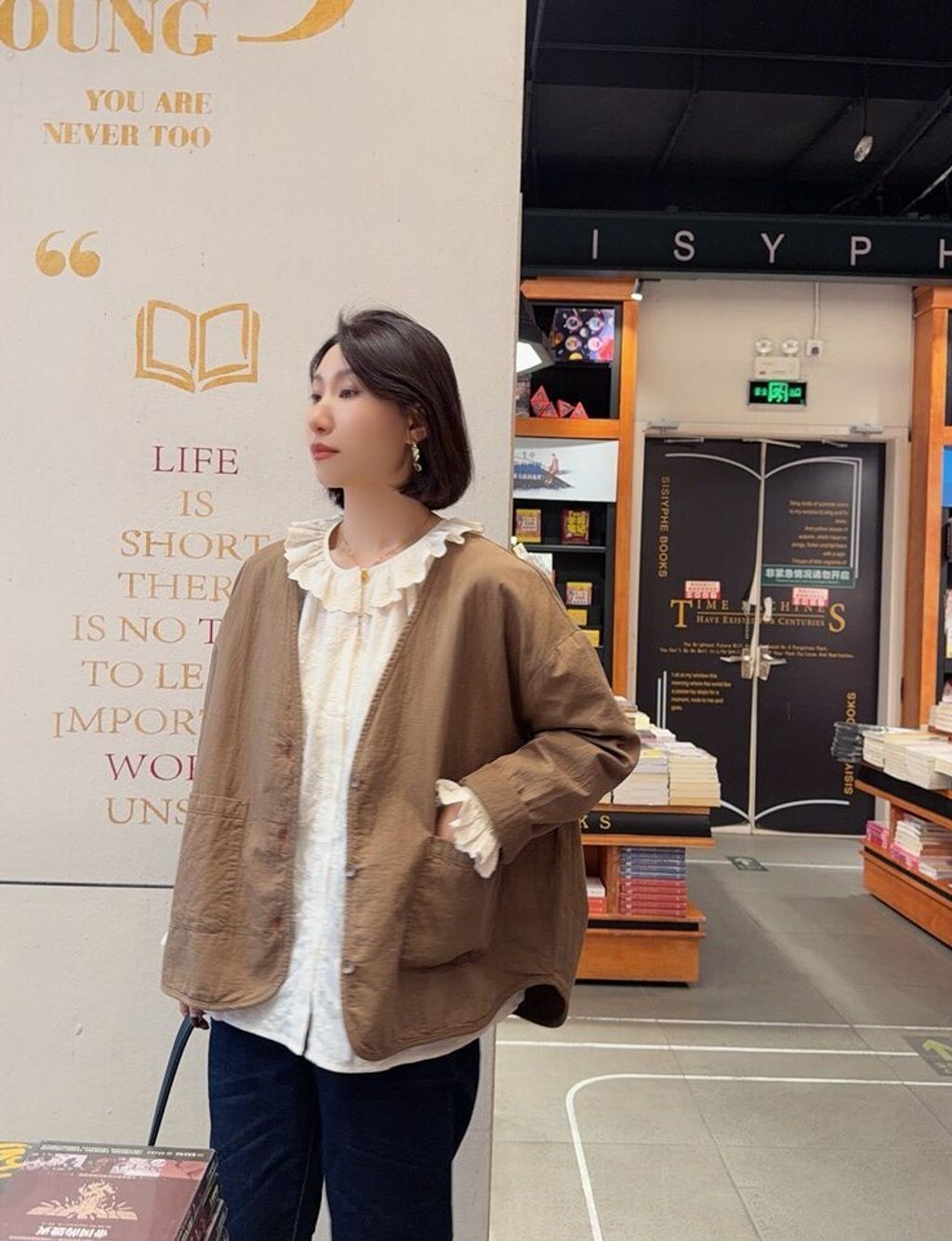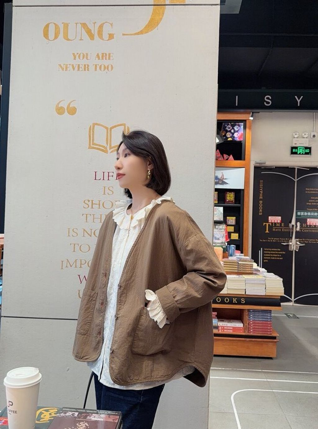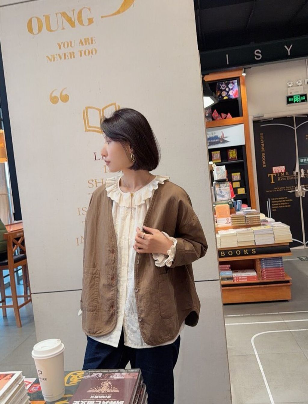 韓 復古設計感V領寬鬆感外套*黑深卡其*【S0323-153】