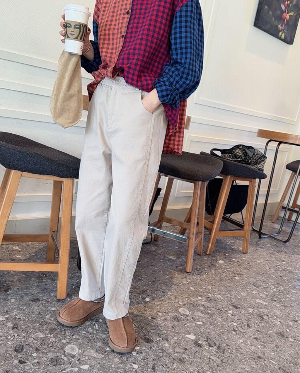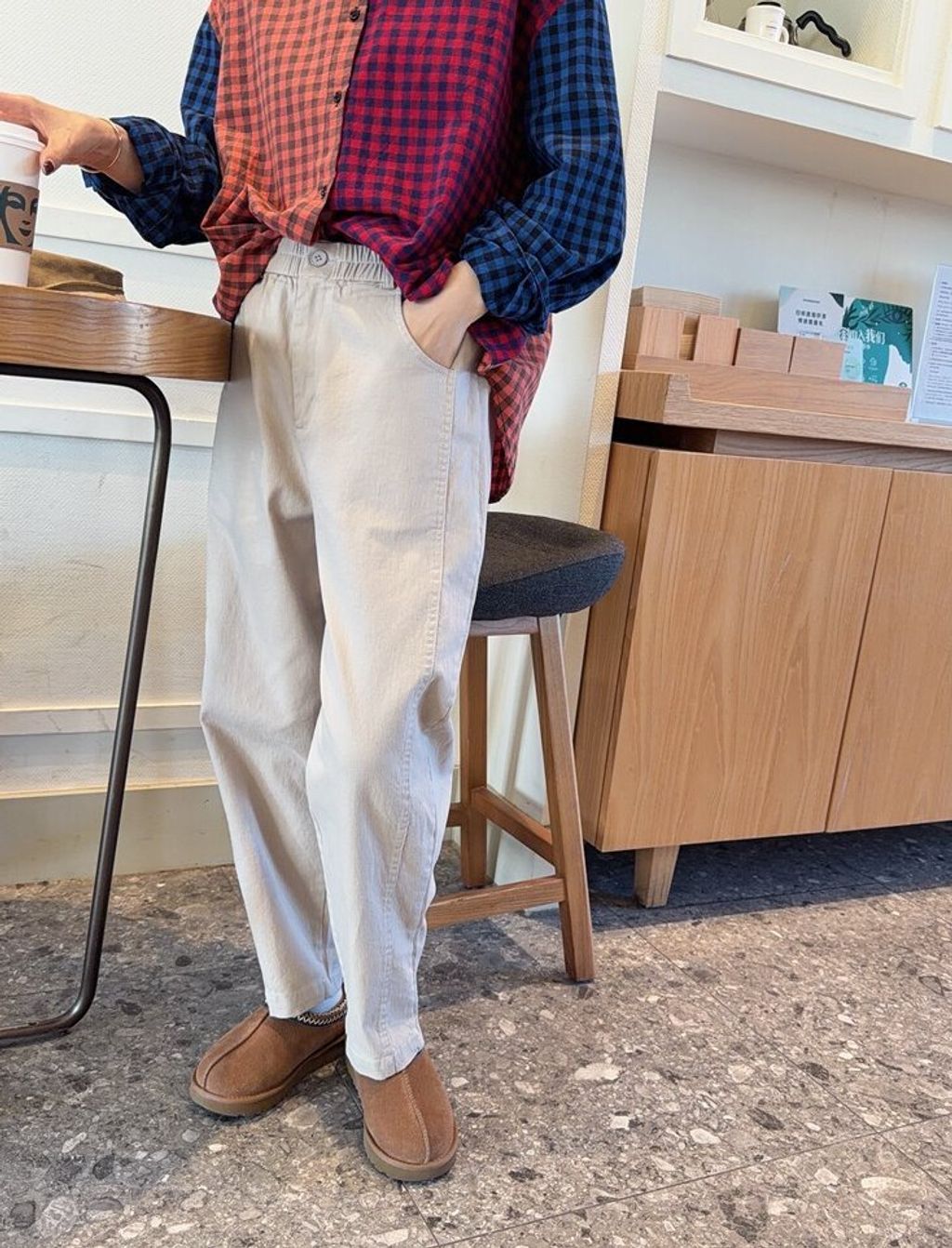 韓 清爽韓系風格鬆緊腰哈倫休閒褲*米*【S0228-113】