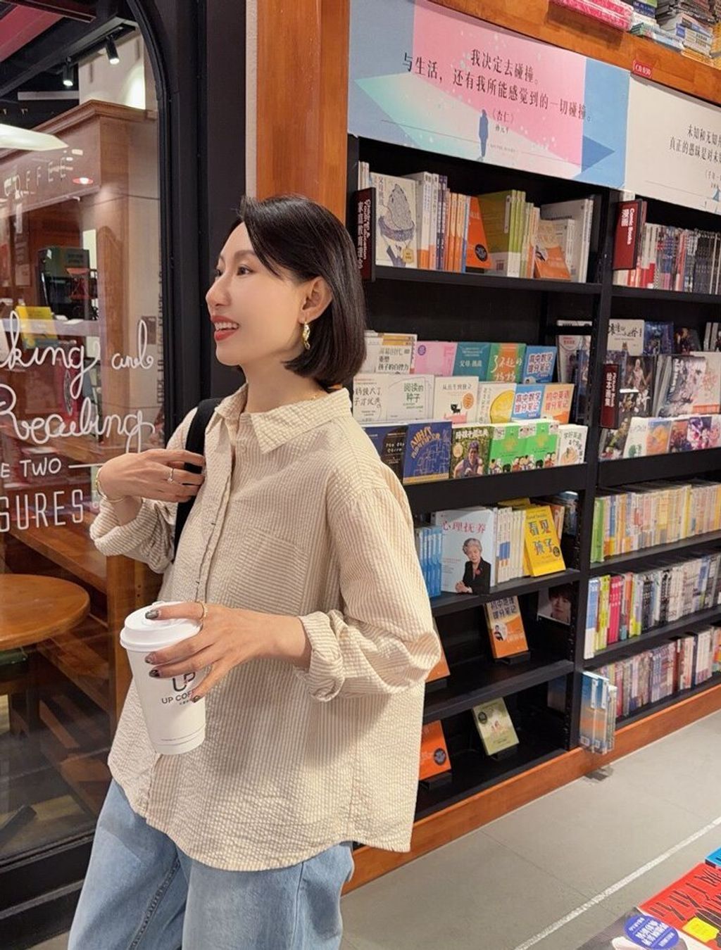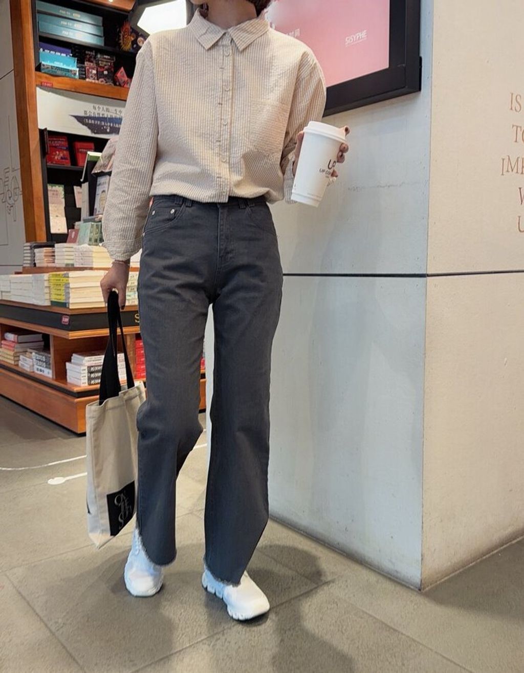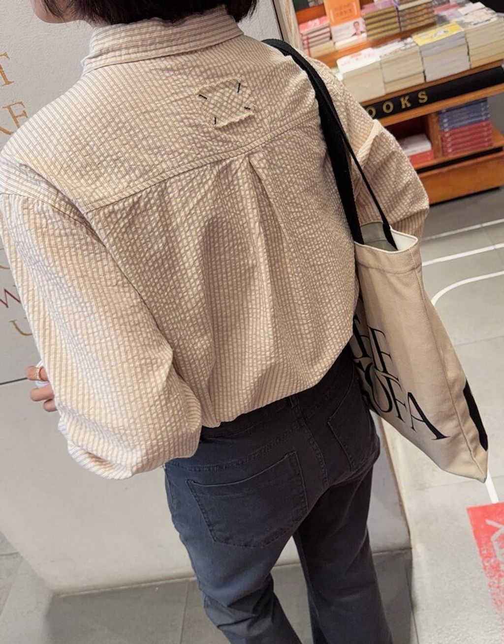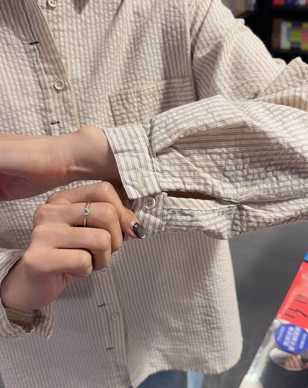 韓 溫柔米棕色直條紋寬鬆襯衫*米*【S0323-145】