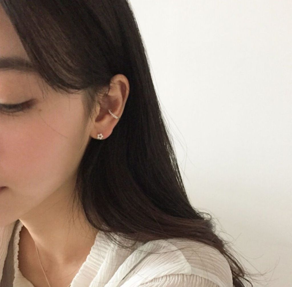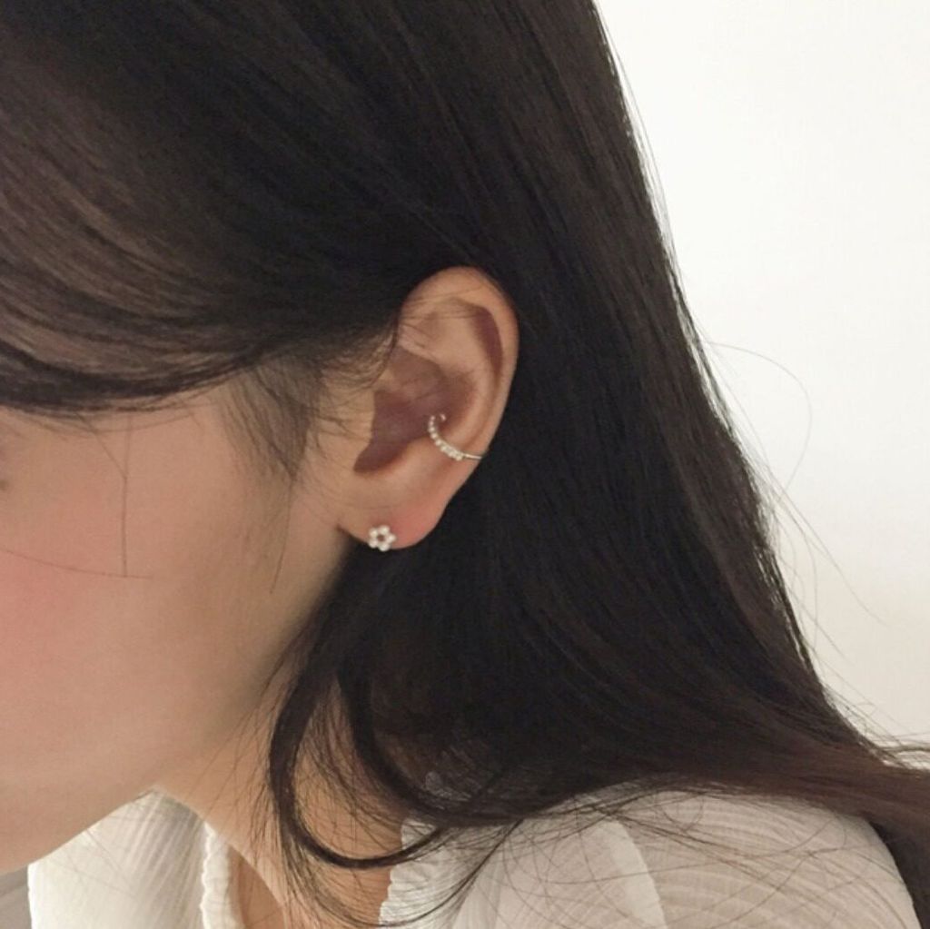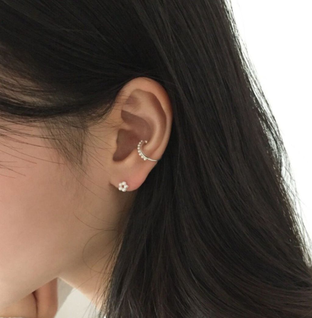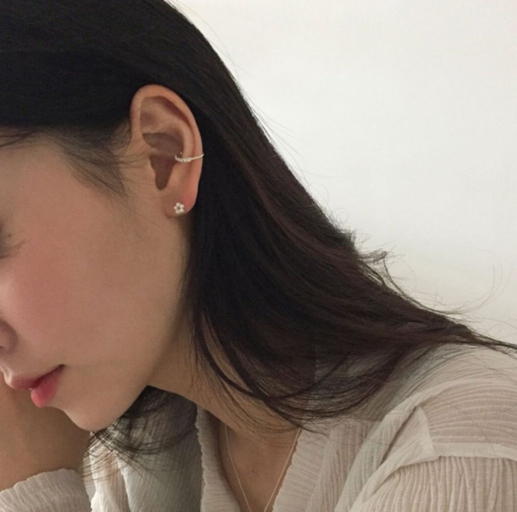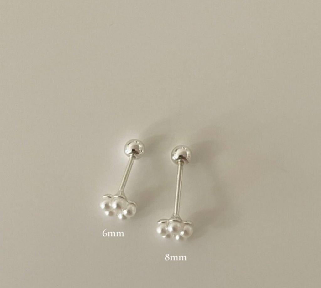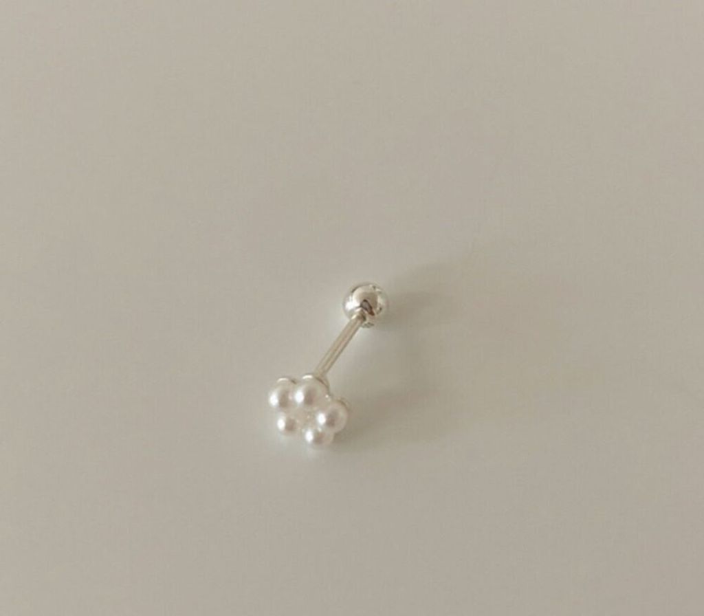 韓 精緻優雅珍珠小花純銀耳針*白*【S0228-81】