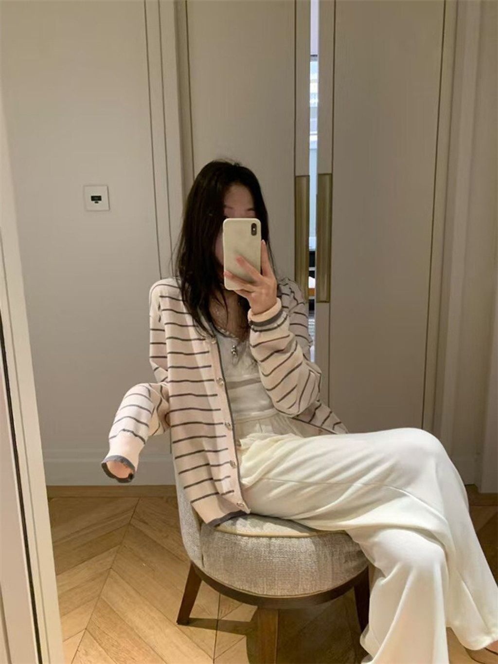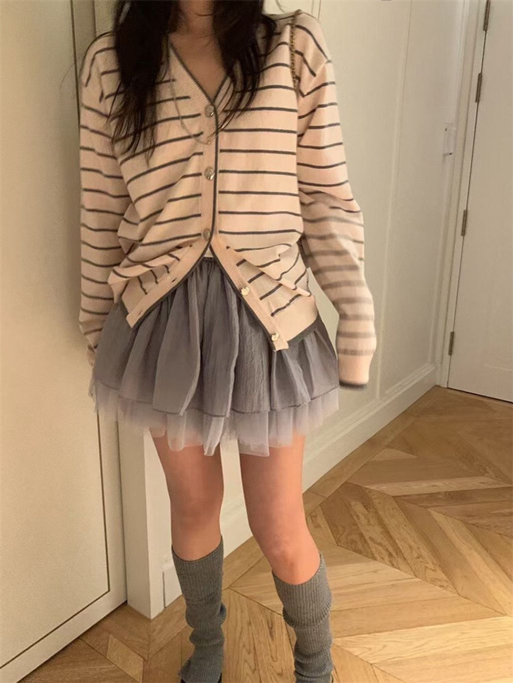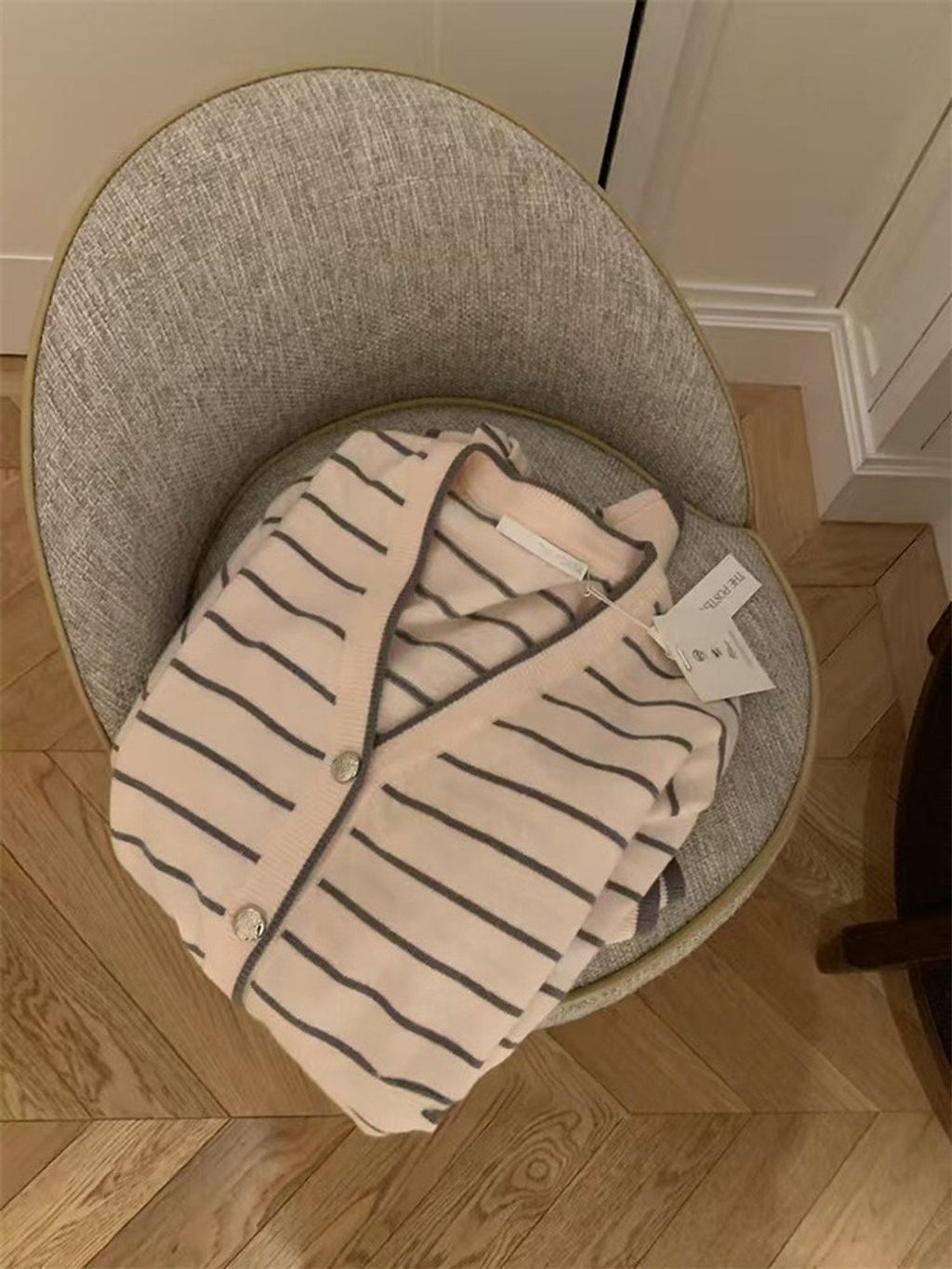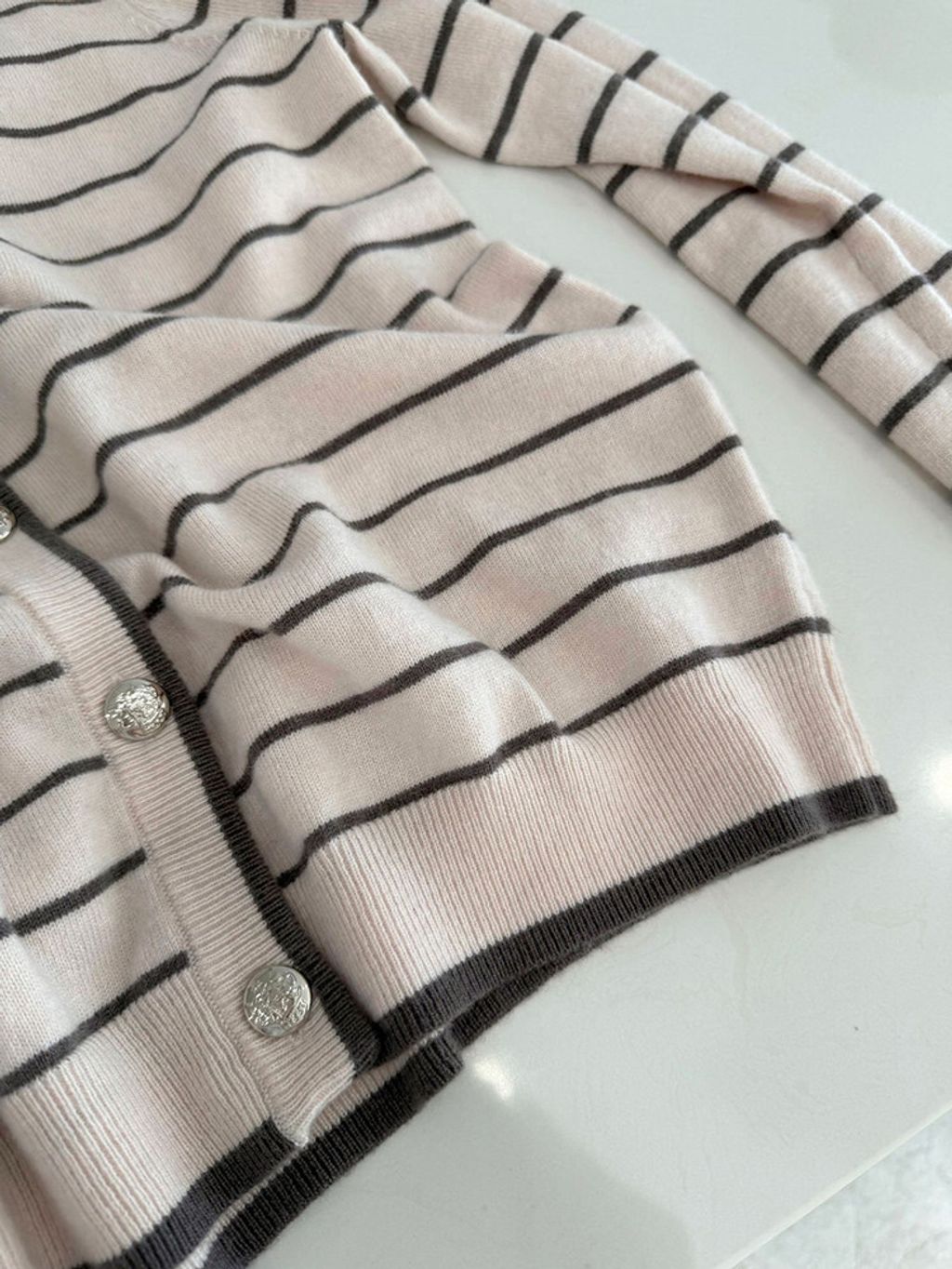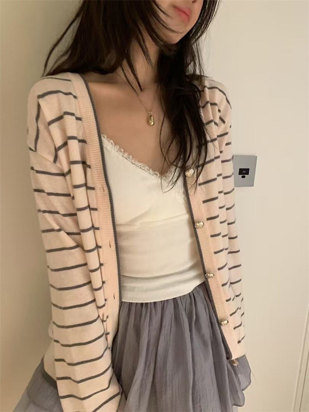 韓 韓系女孩溫柔條紋針織外套*粉條紋*【S0228-04】