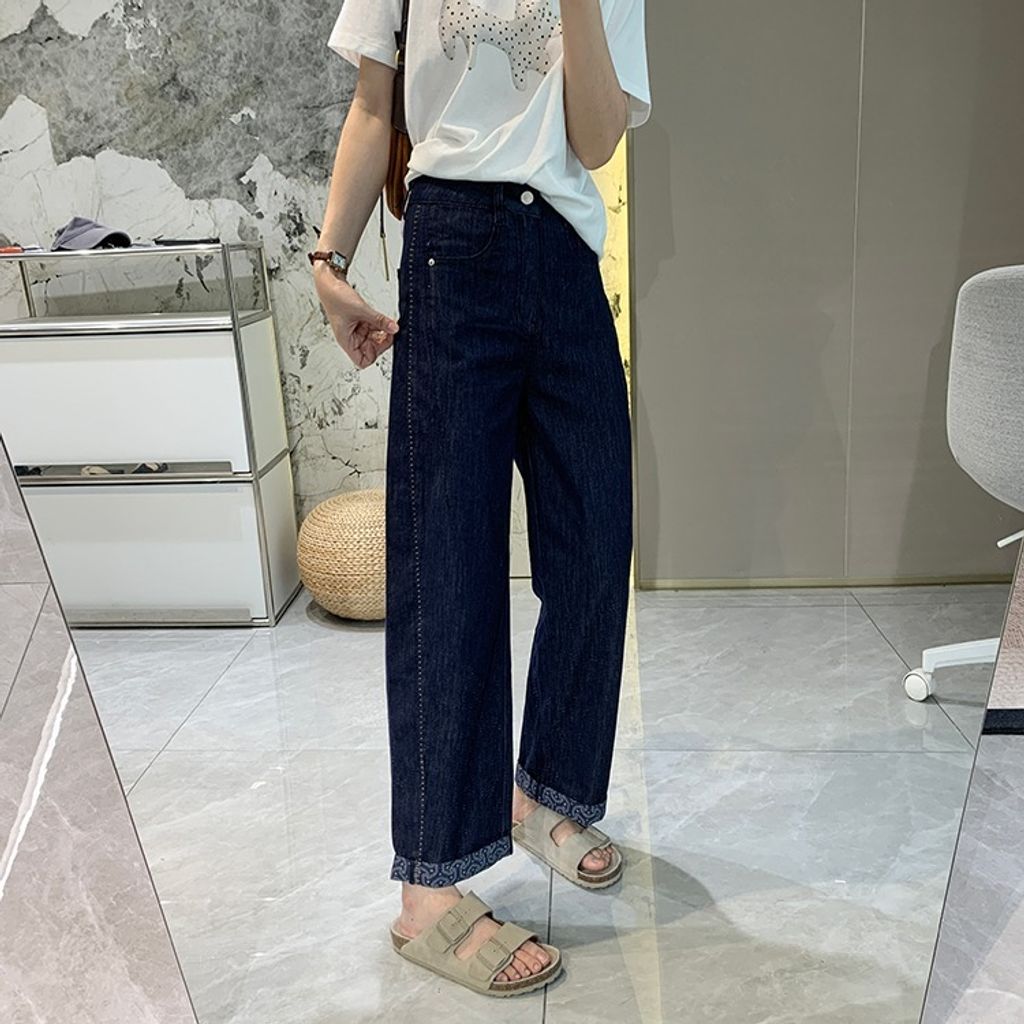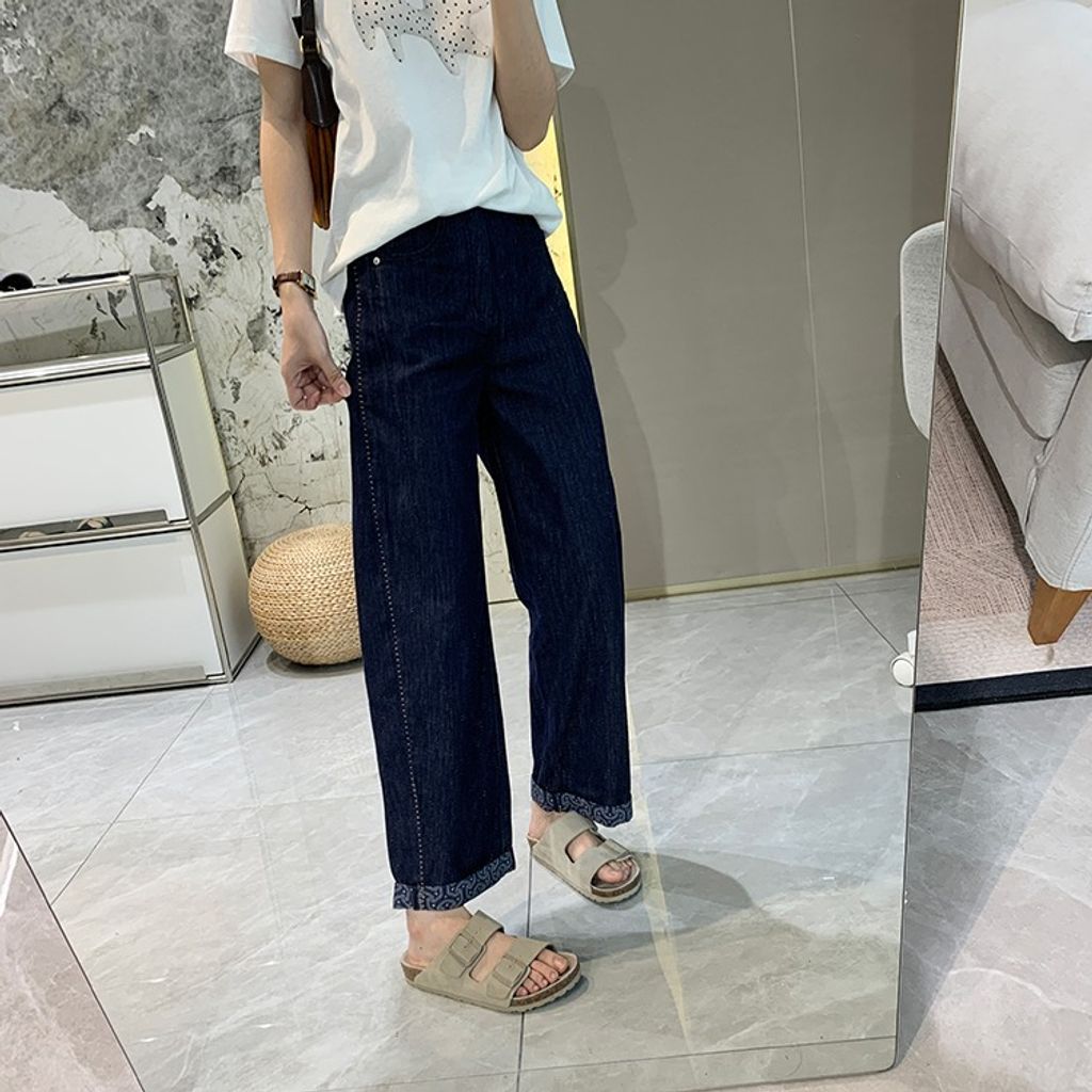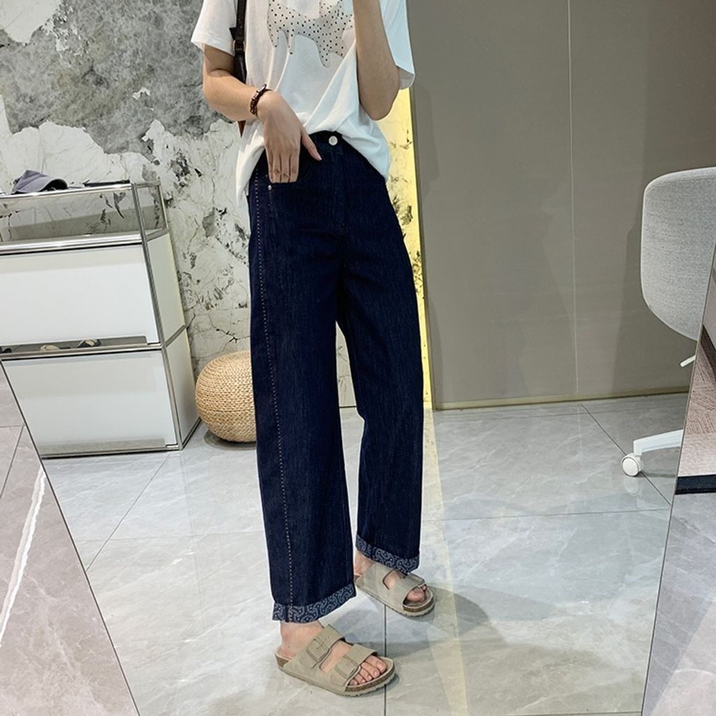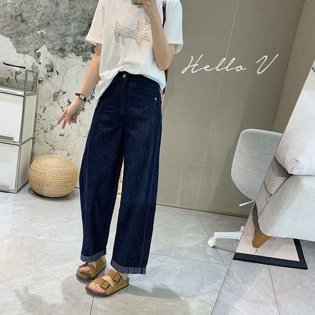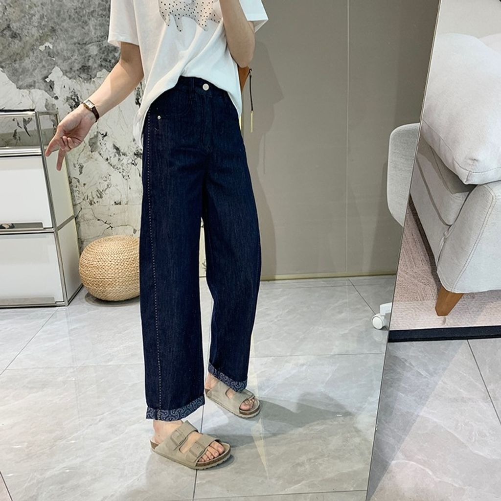 夏季必買!超薄涼感顯瘦寬鬆感捲邊牛仔褲*深藍*【H0630-41】