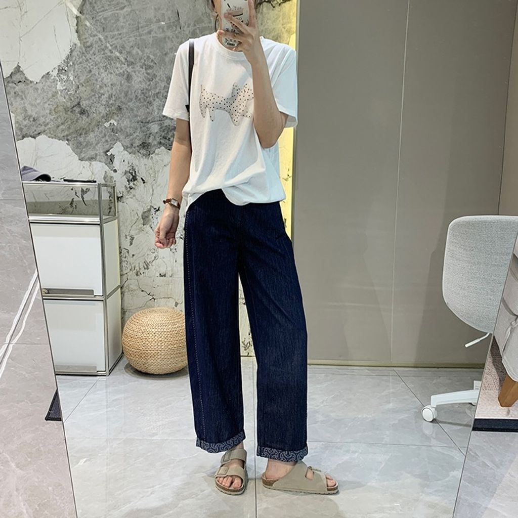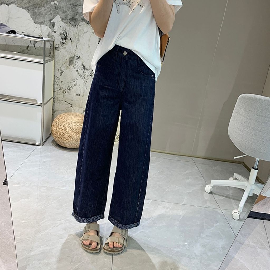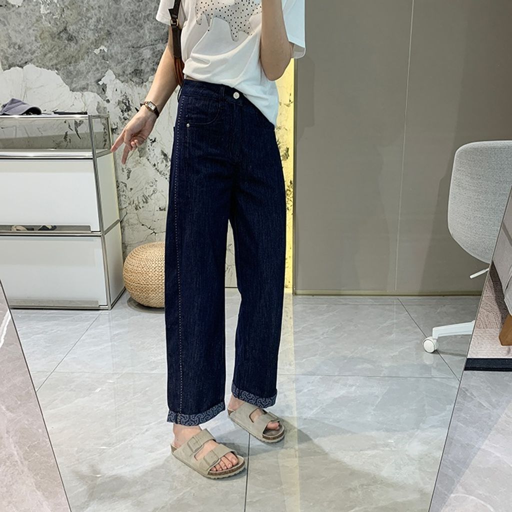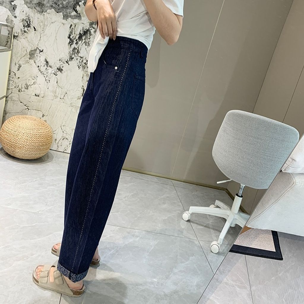 夏季必買!超薄涼感顯瘦寬鬆感捲邊牛仔褲*深藍*【H0630-41】