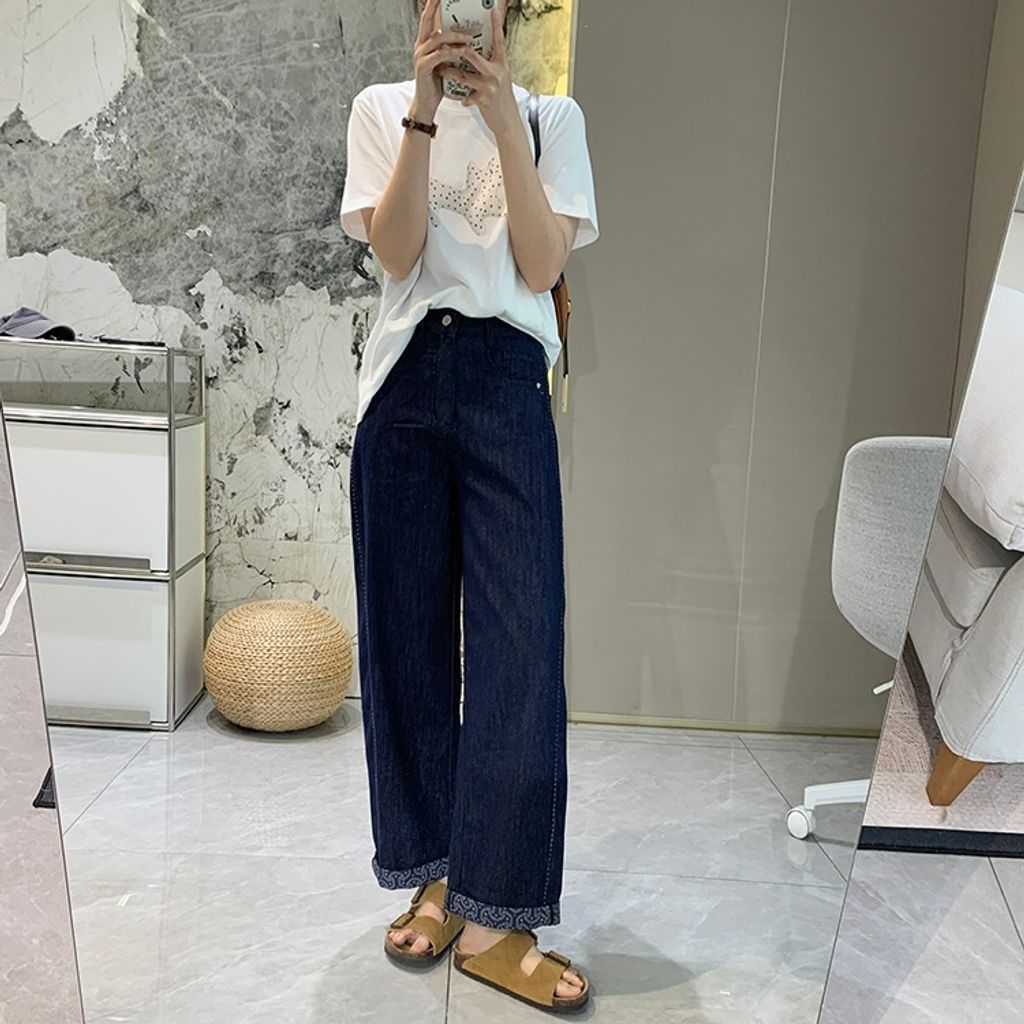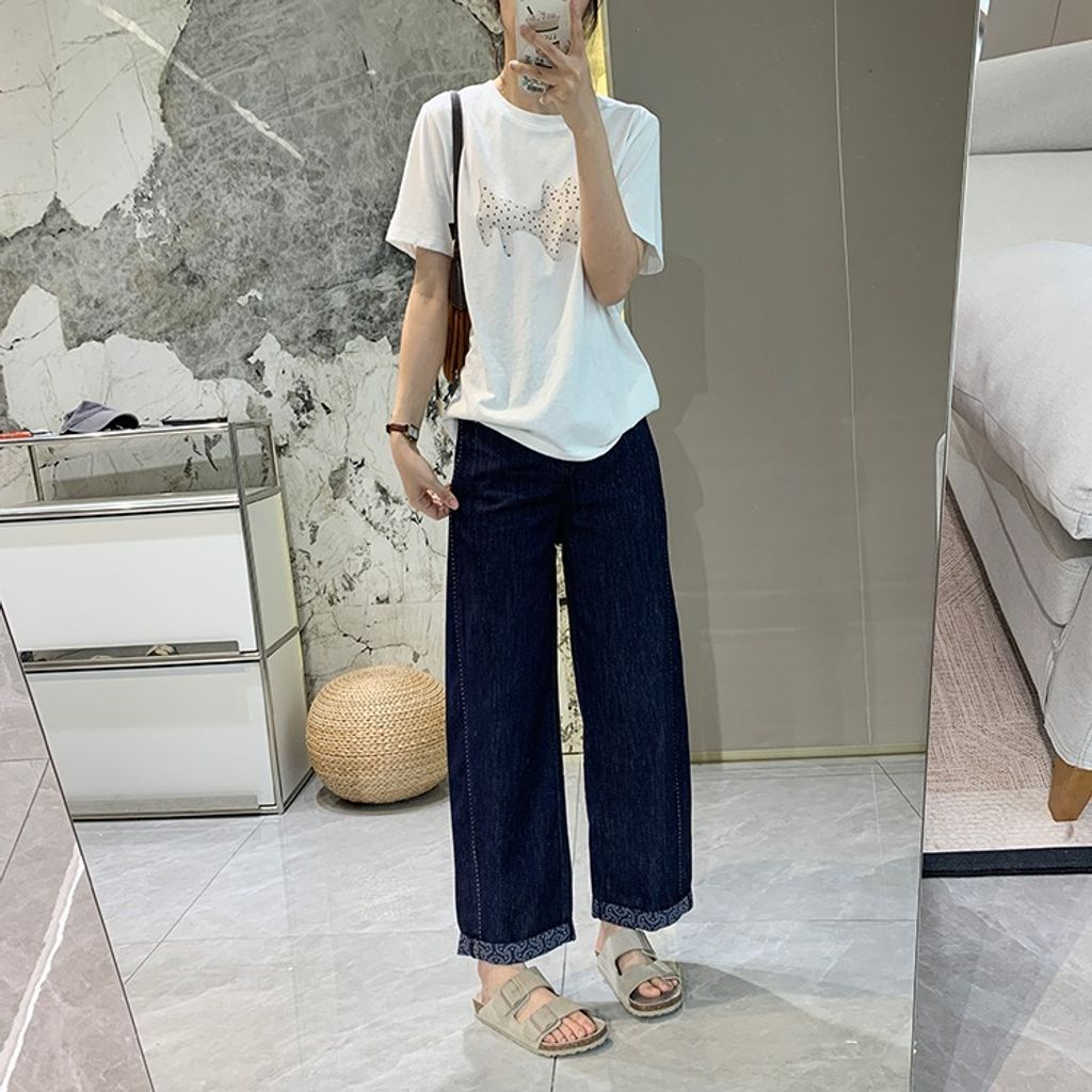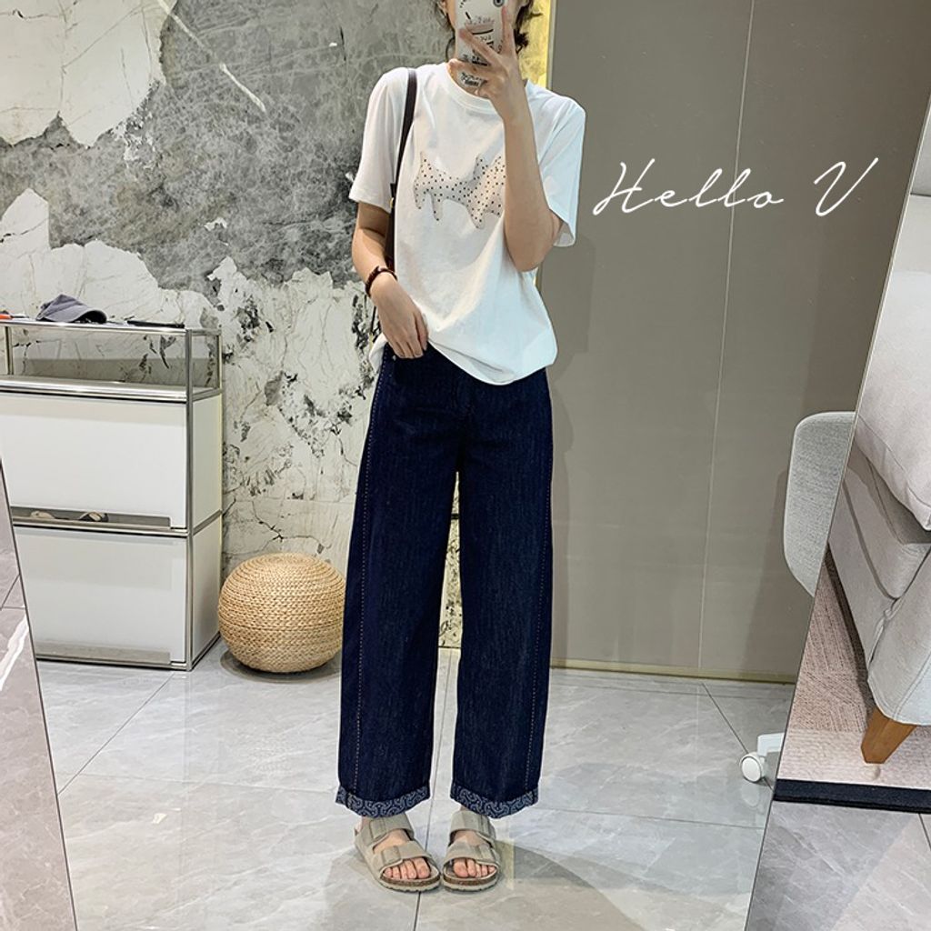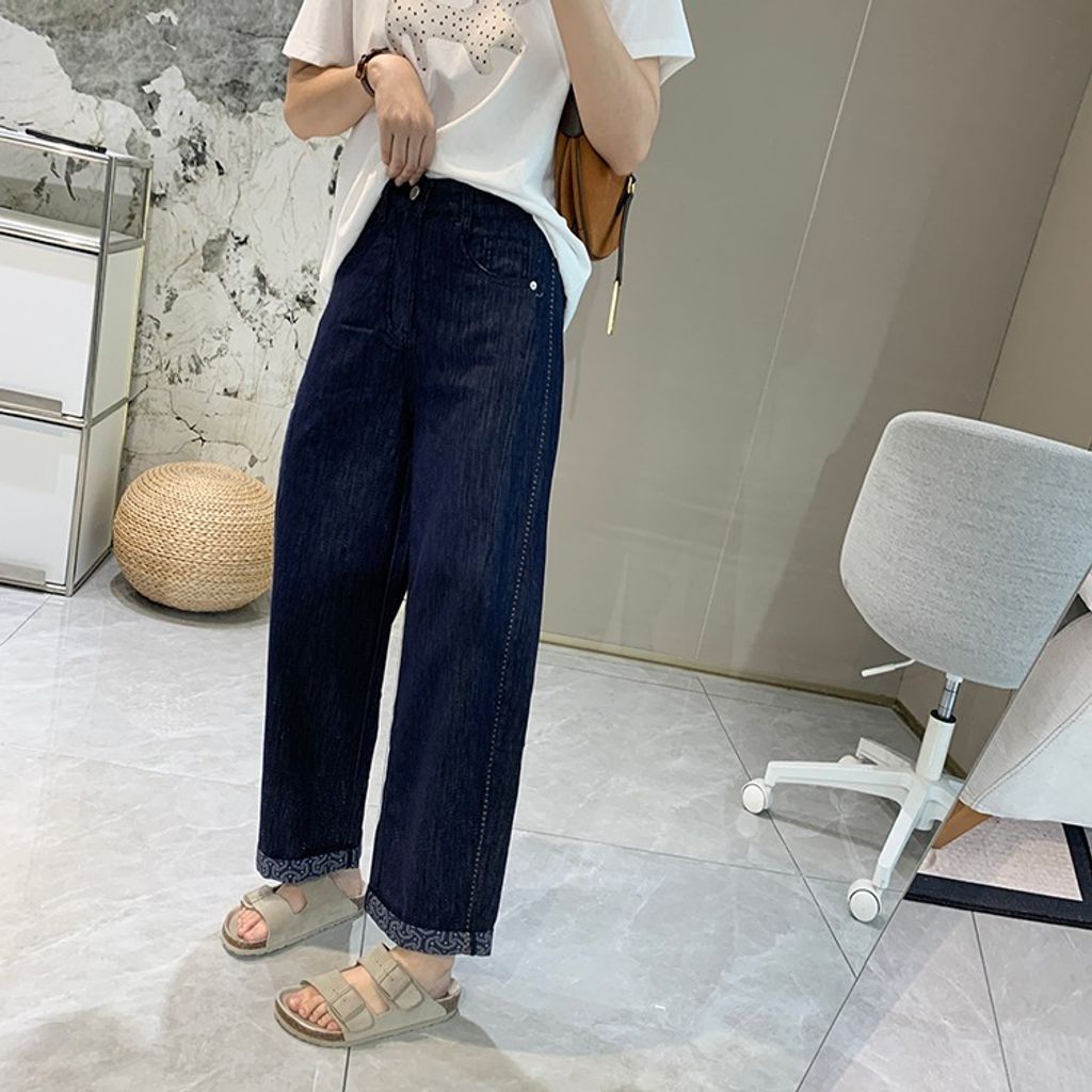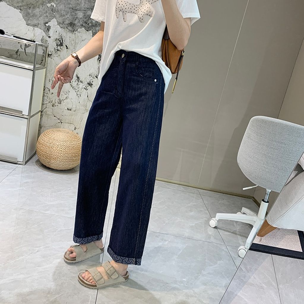 夏季必買!超薄涼感顯瘦寬鬆感捲邊牛仔褲*深藍*【H0630-41】