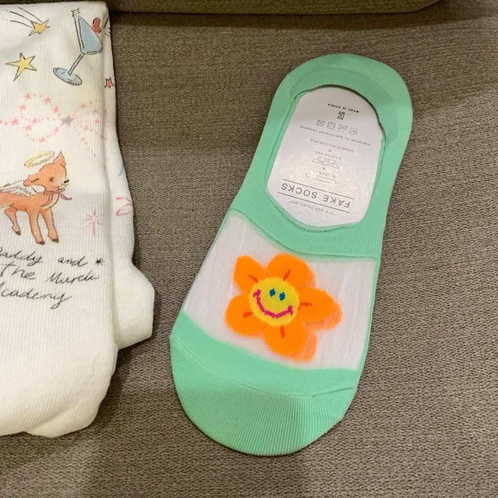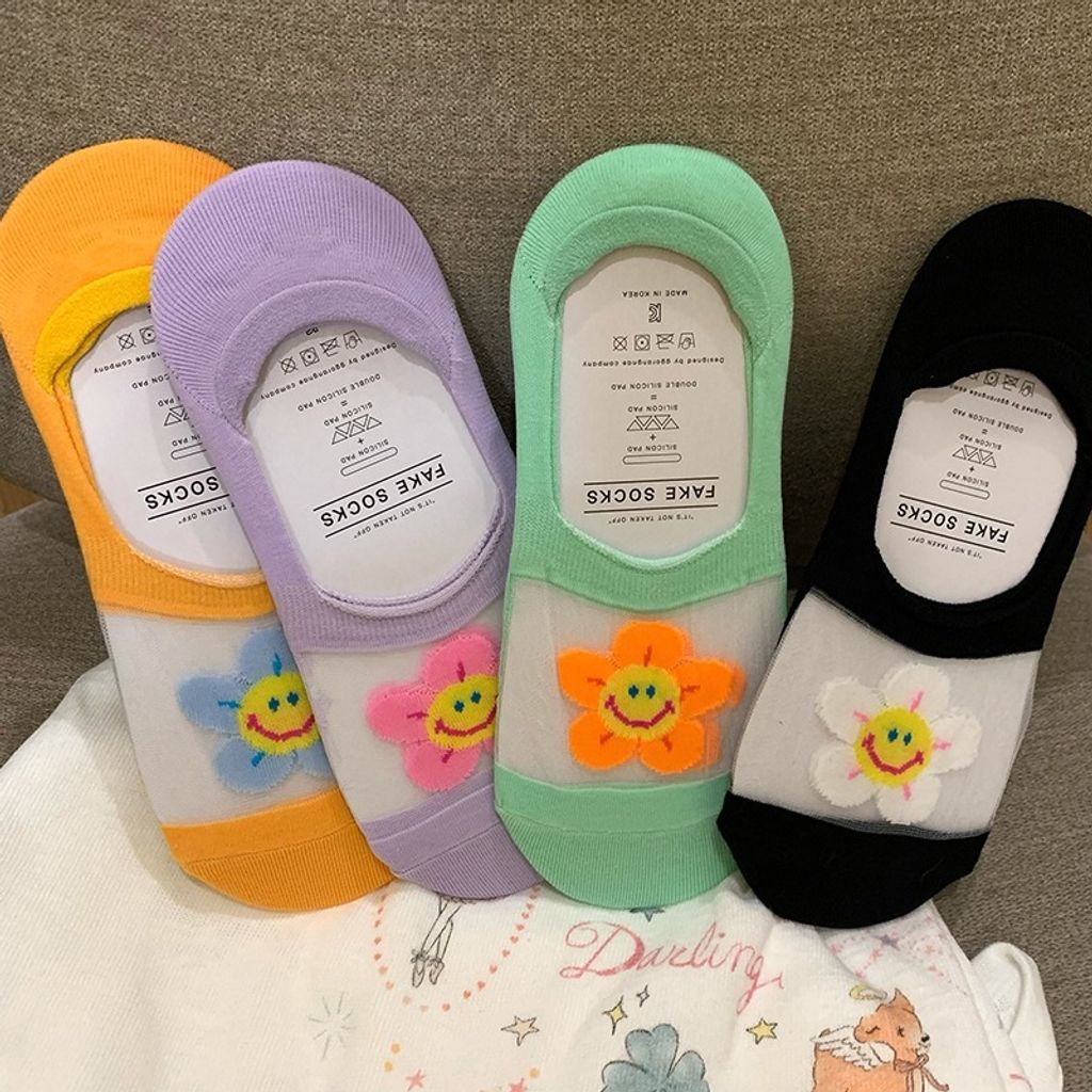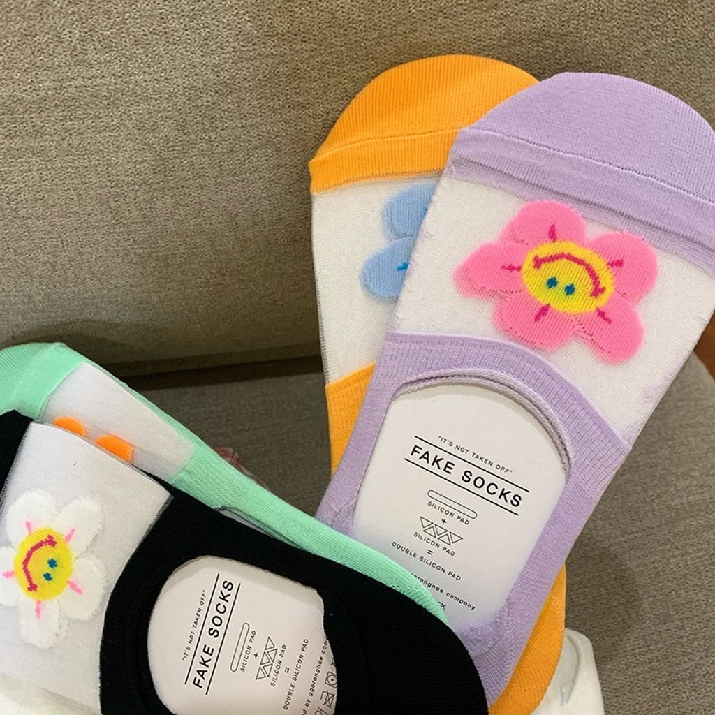 正韓 可愛亮眼花朵透視設計短襪隱形襪*黑紫綠橘*【H0630-102】