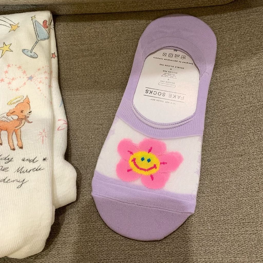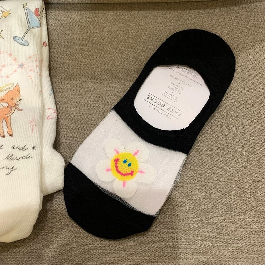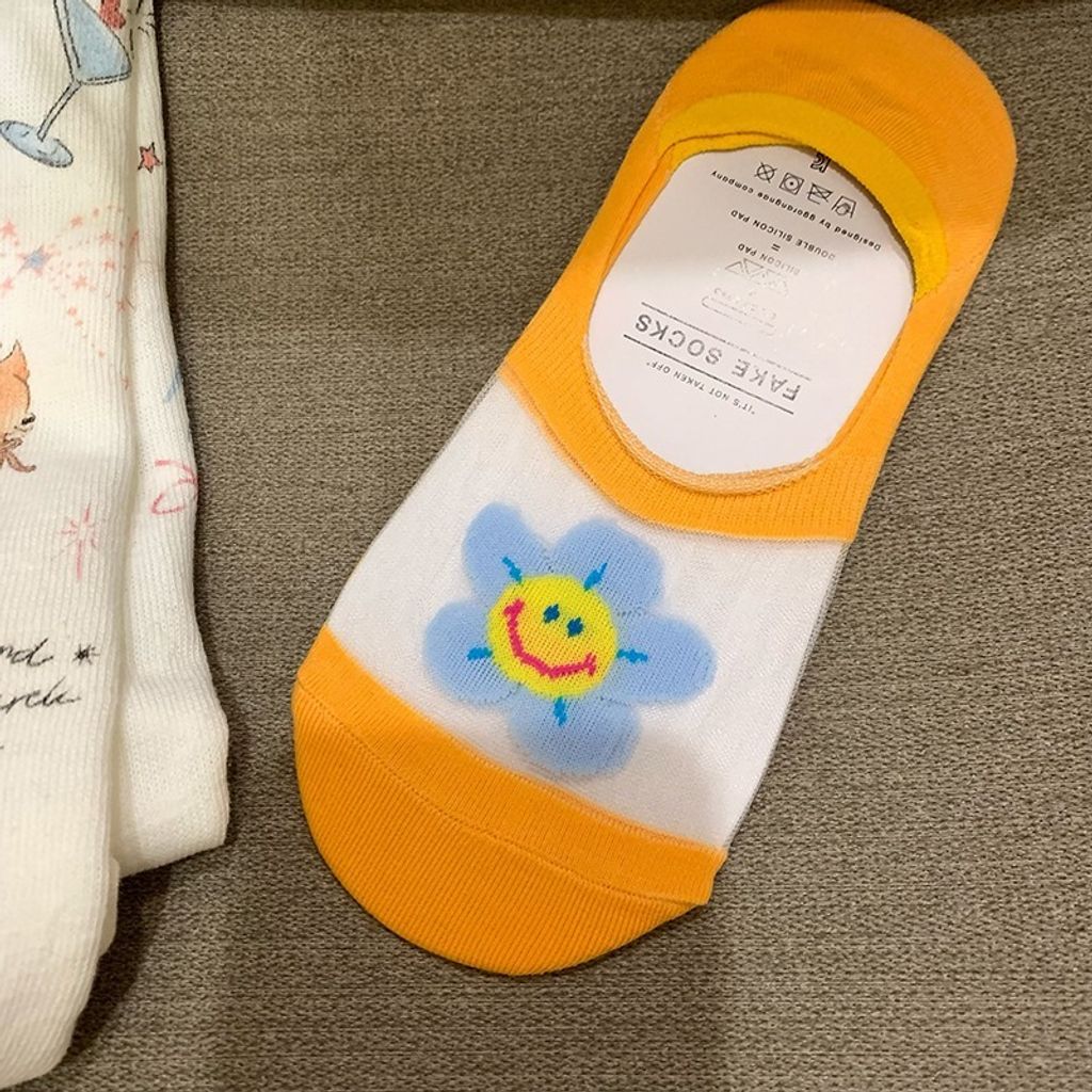 正韓 可愛亮眼花朵透視設計短襪隱形襪*黑紫綠橘*【H0630-102】