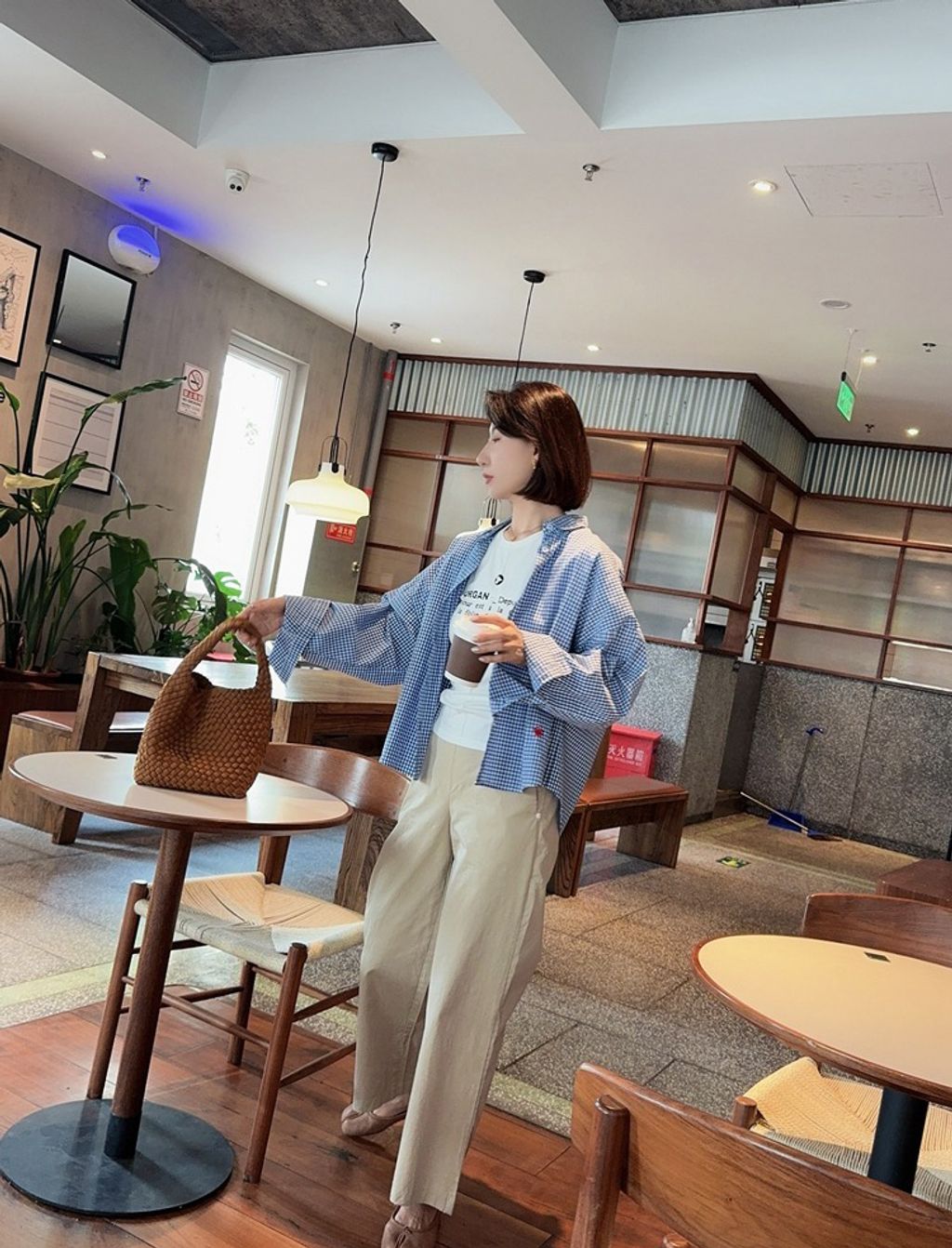 正韓 可愛拼接格紋口袋牛仔褲裙*深藍*【H0630-28】