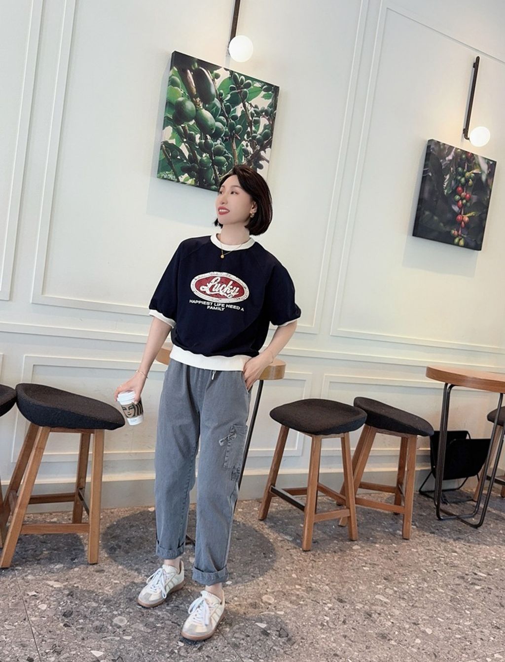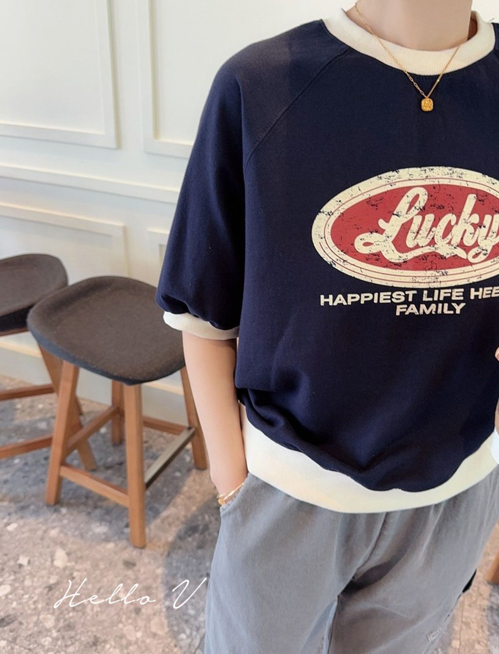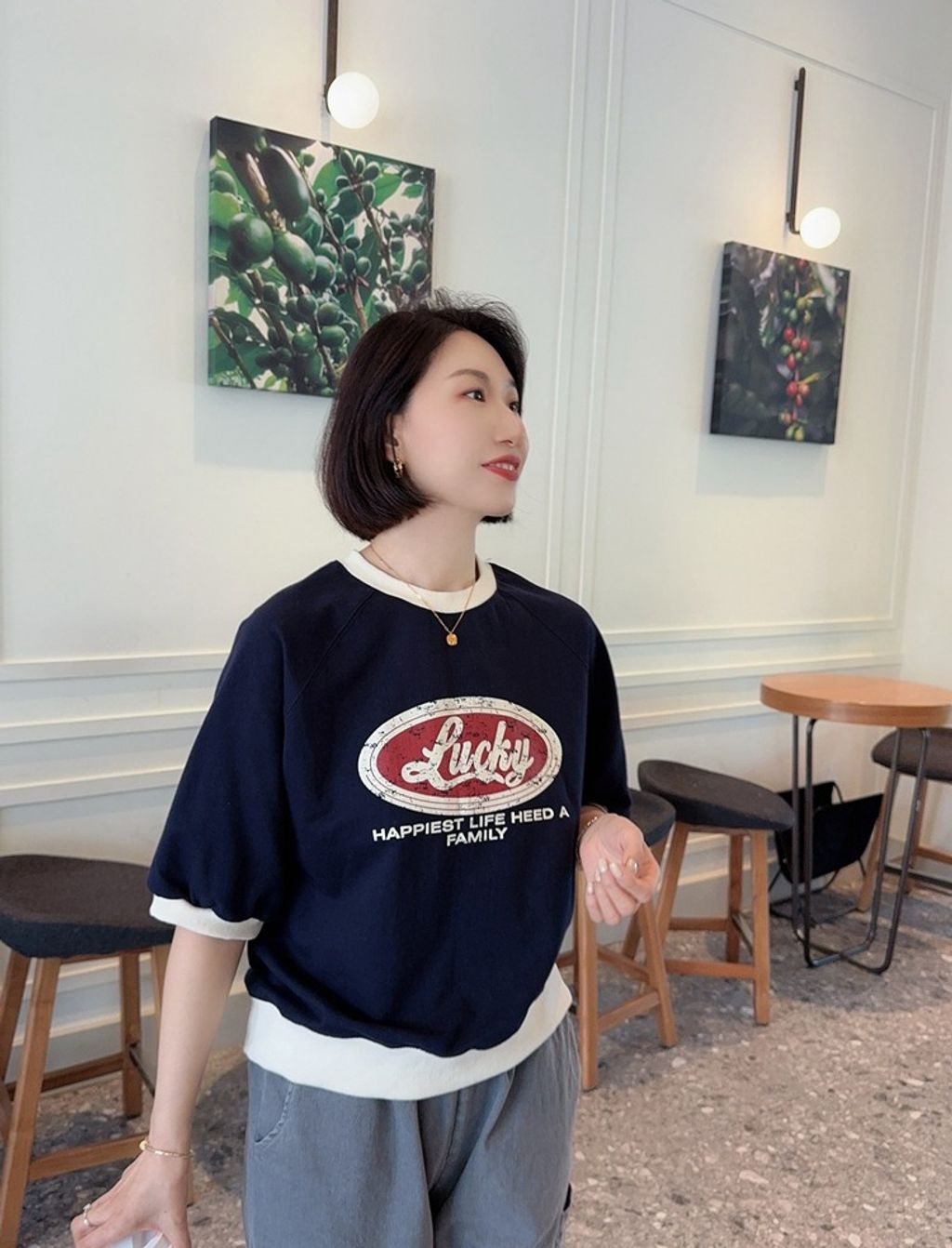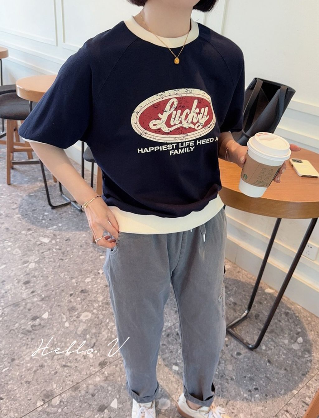 正韓 可愛撞色美式風格質感上衣*深藍淺灰*【H0630-24】