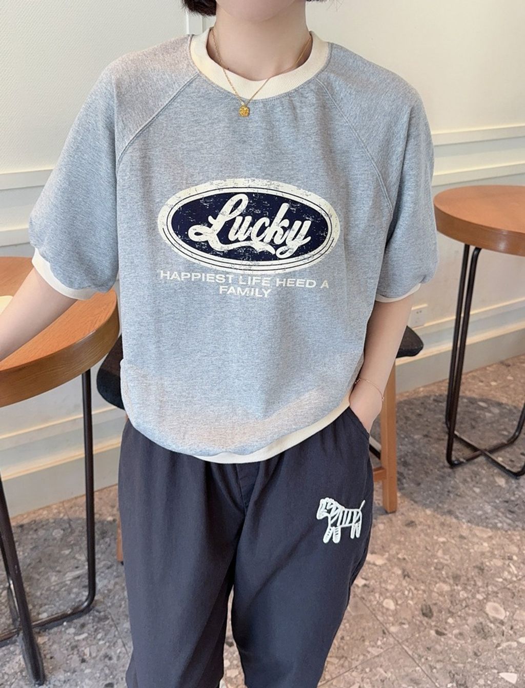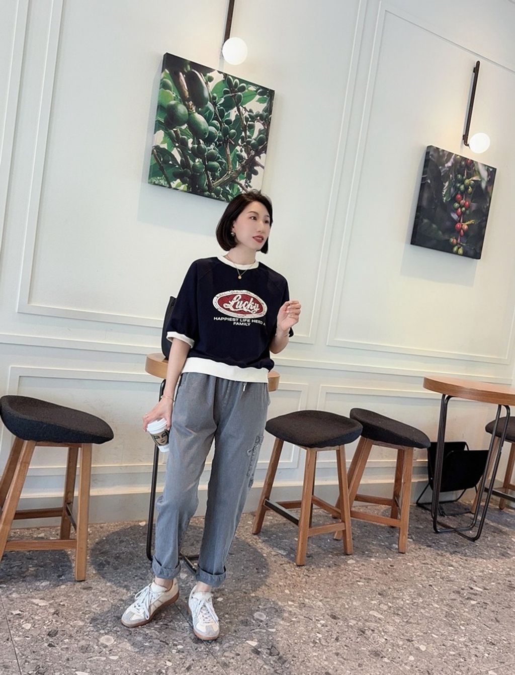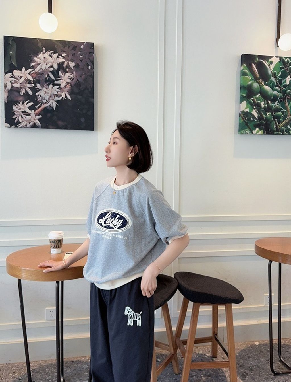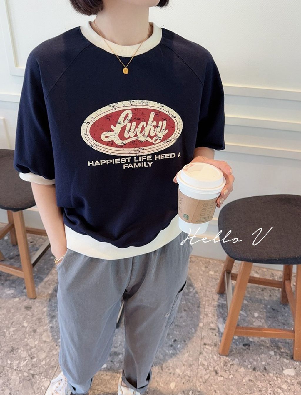 正韓 可愛撞色美式風格質感上衣*深藍淺灰*【H0630-24】