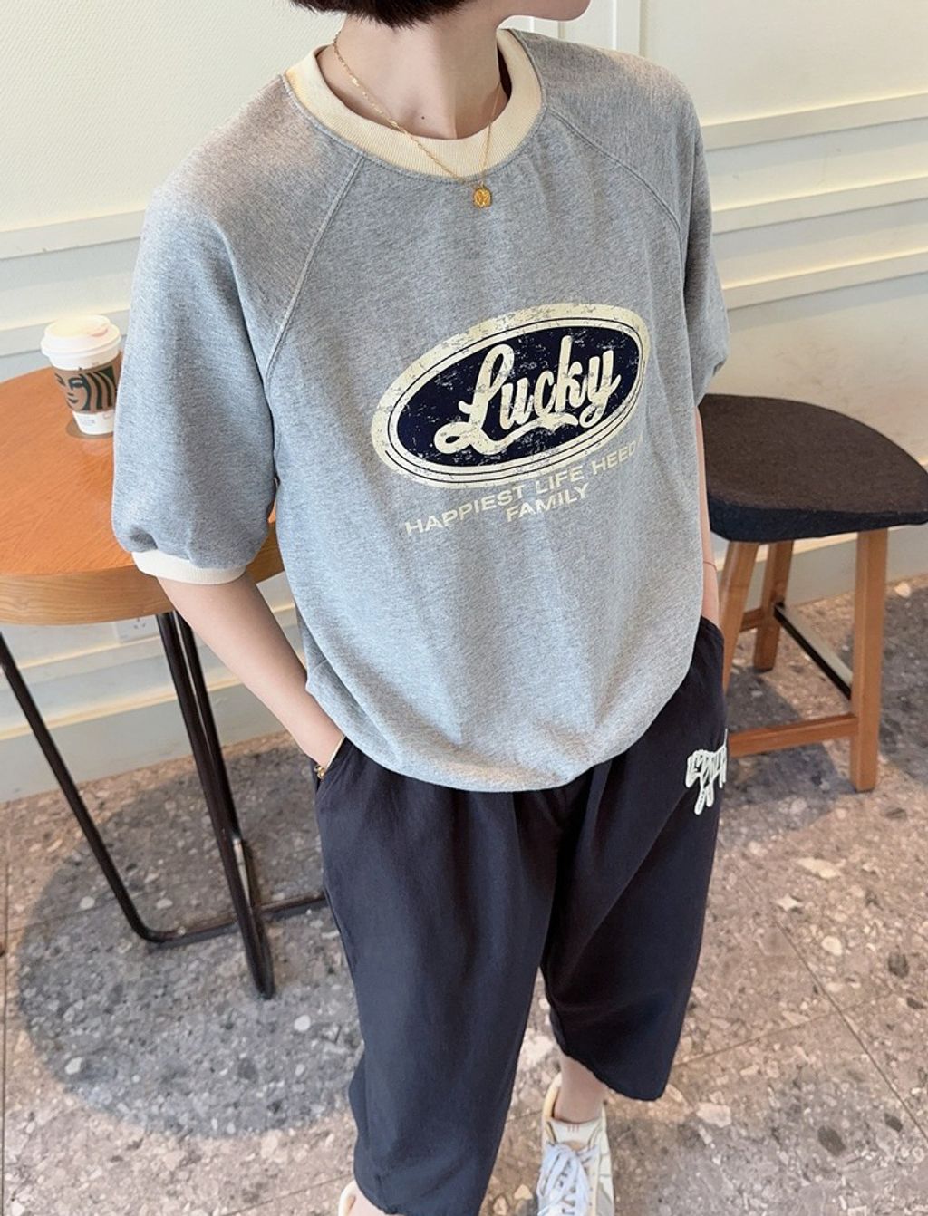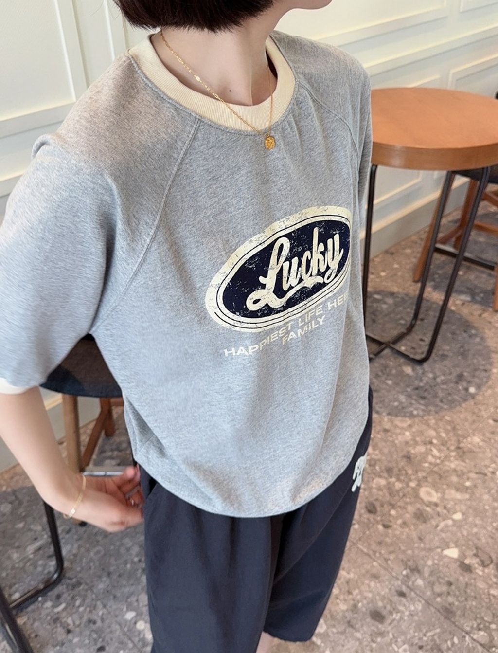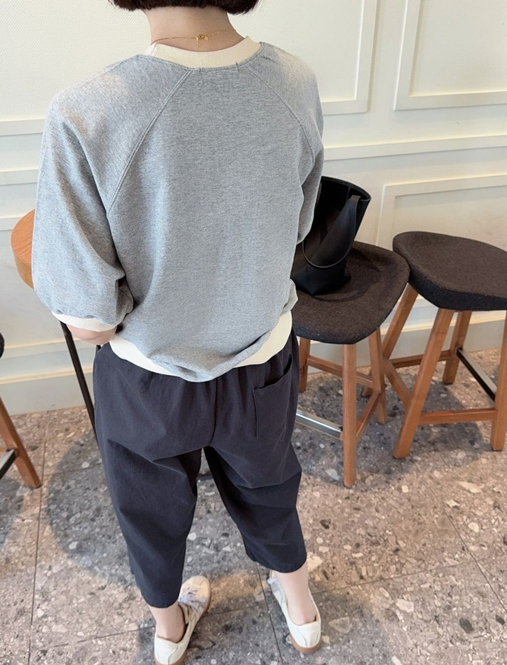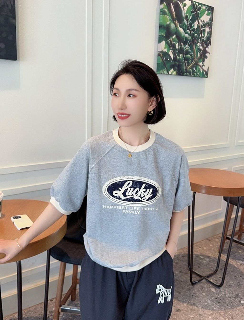正韓 可愛撞色美式風格質感上衣*深藍淺灰*【H0630-24】