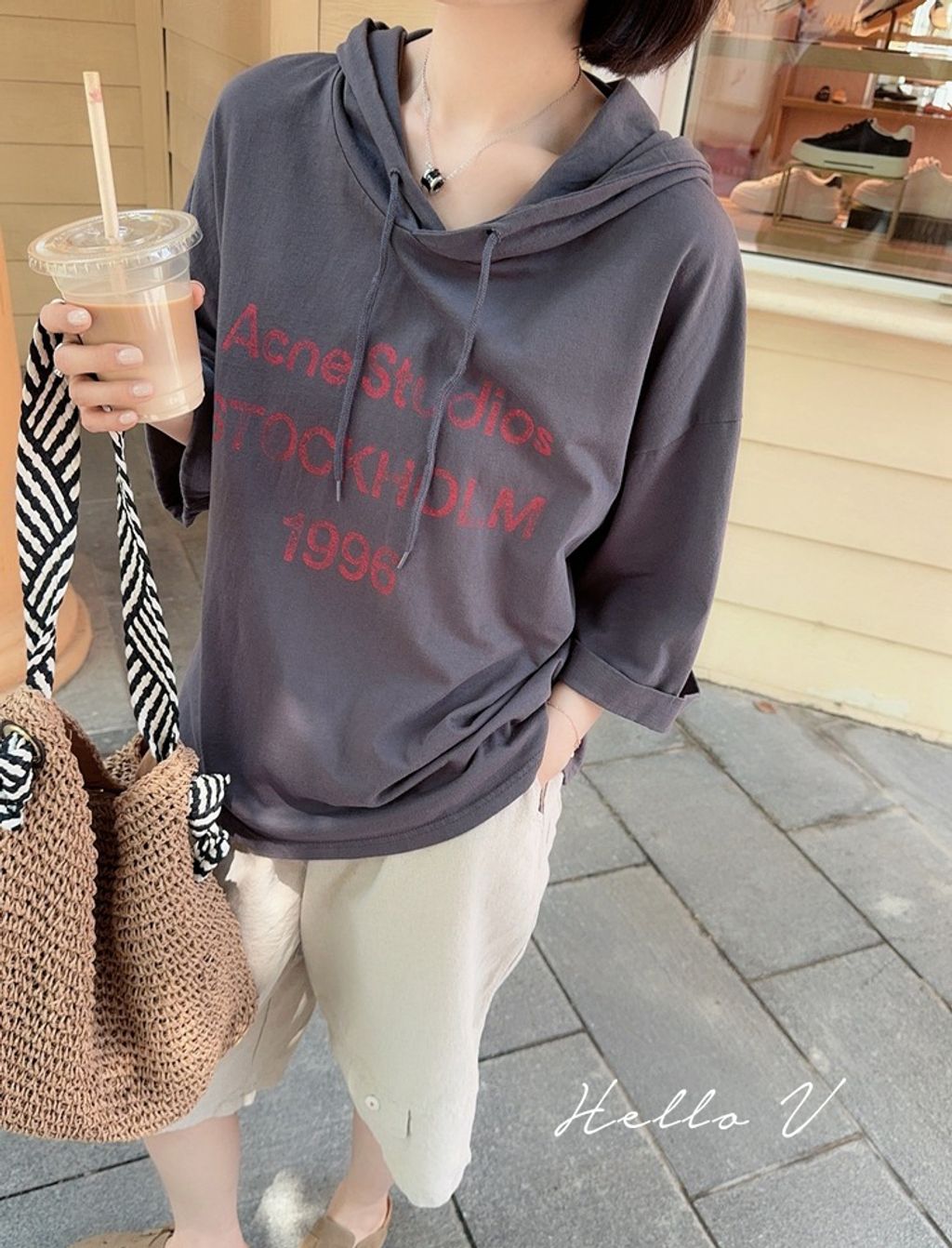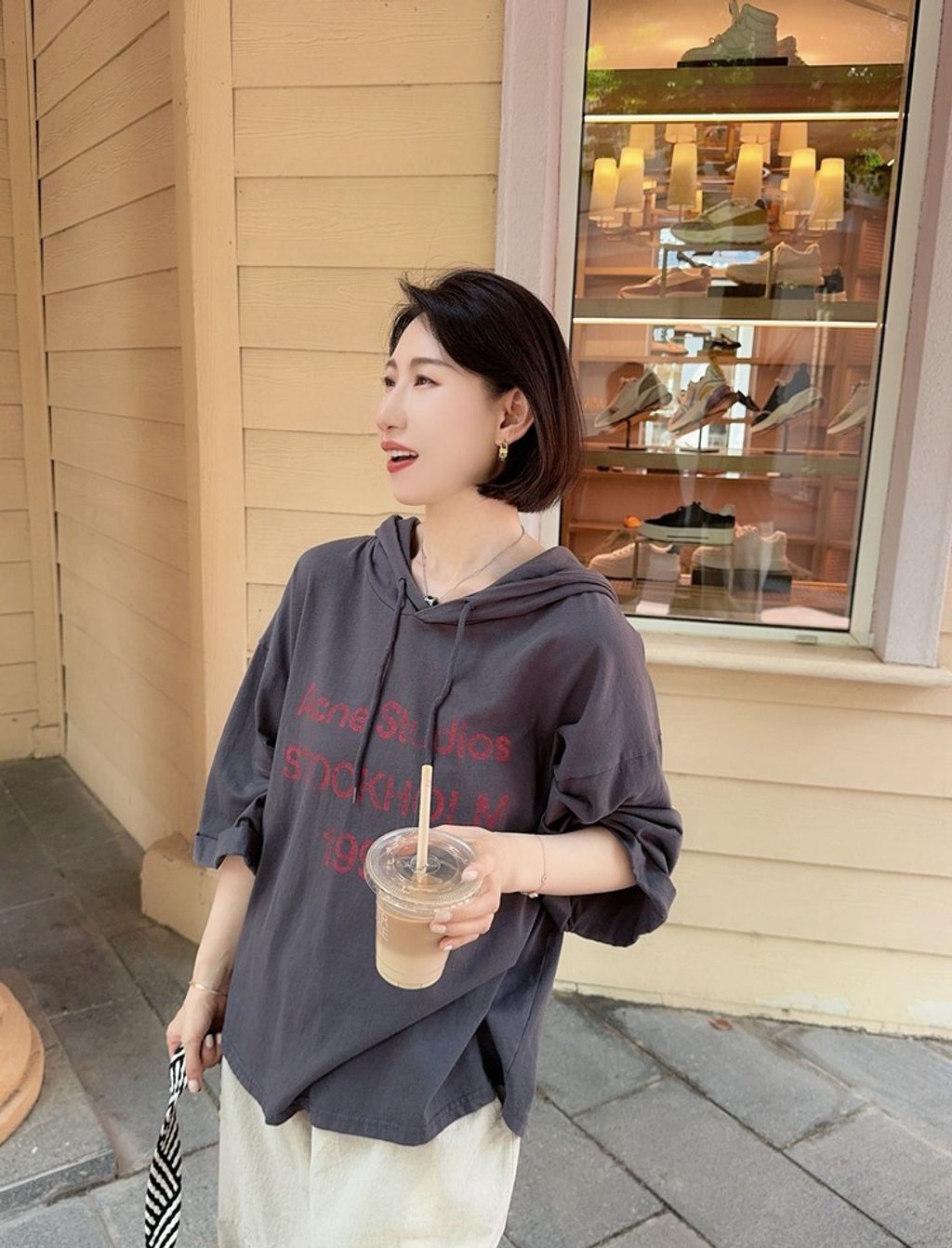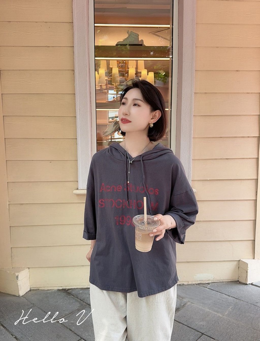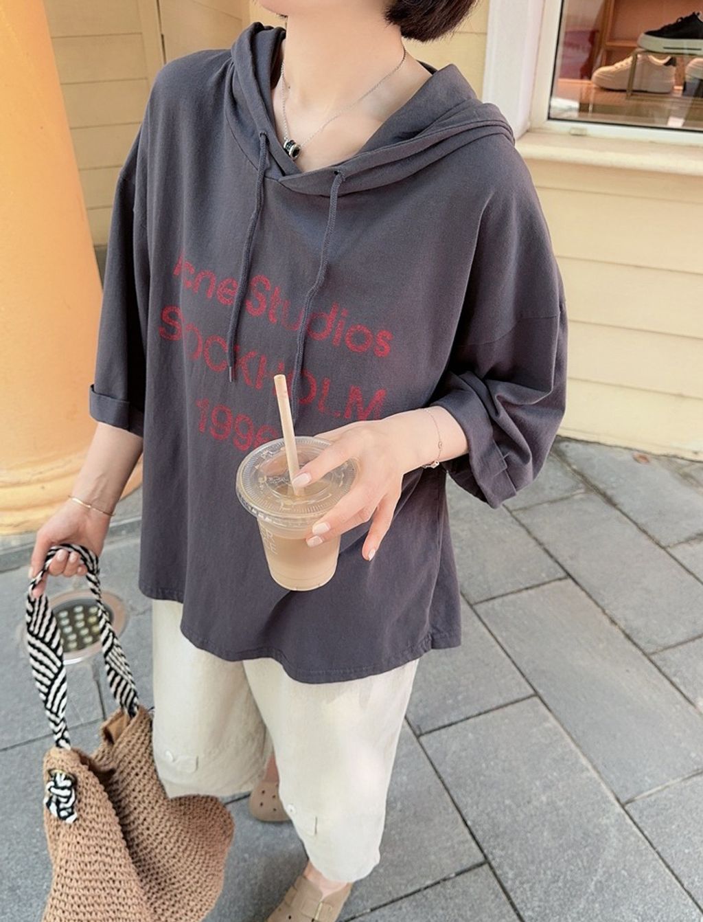 正韓 復古時尚字母設計連帽T*深灰*【H0630-18】