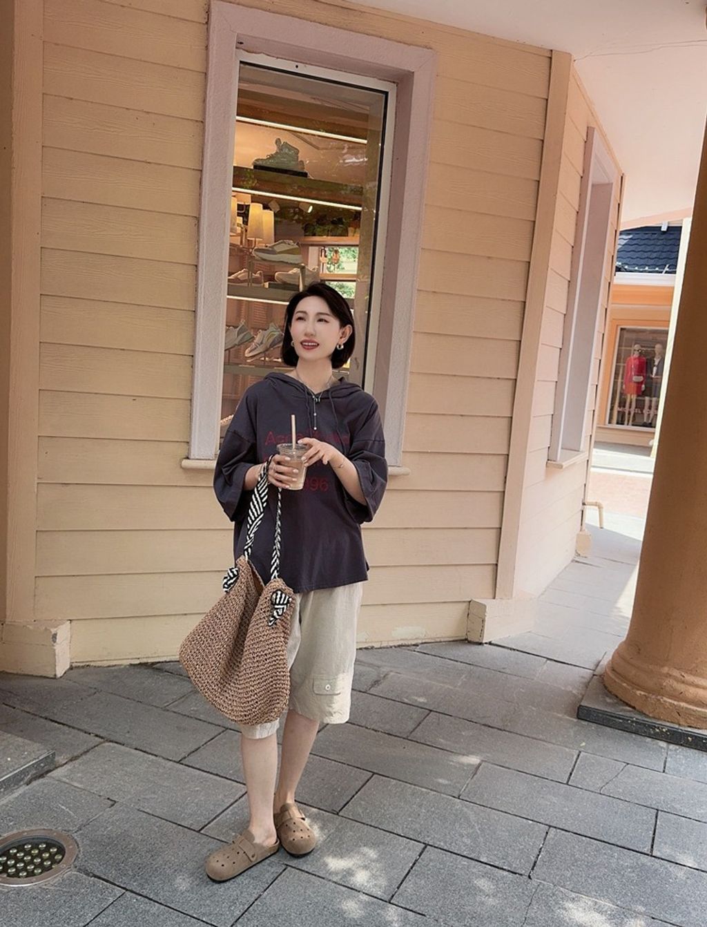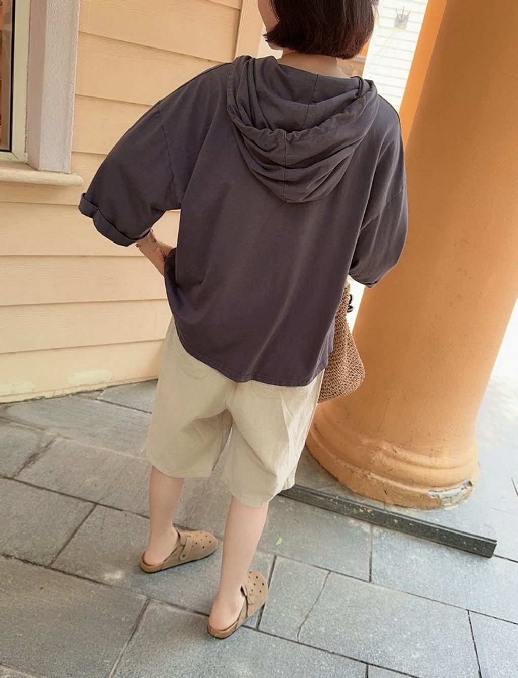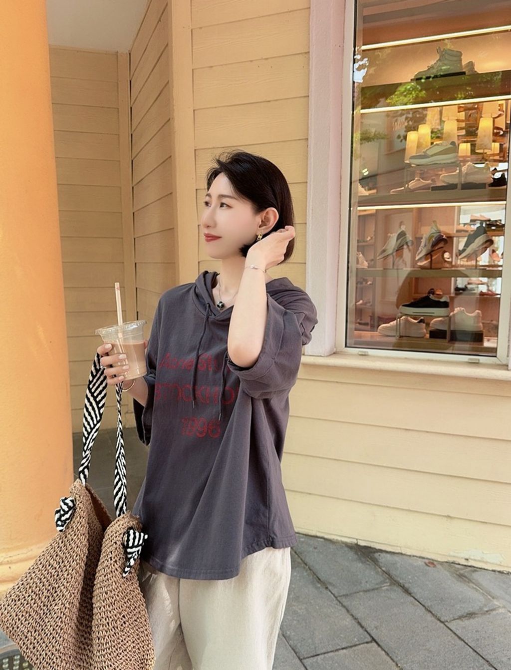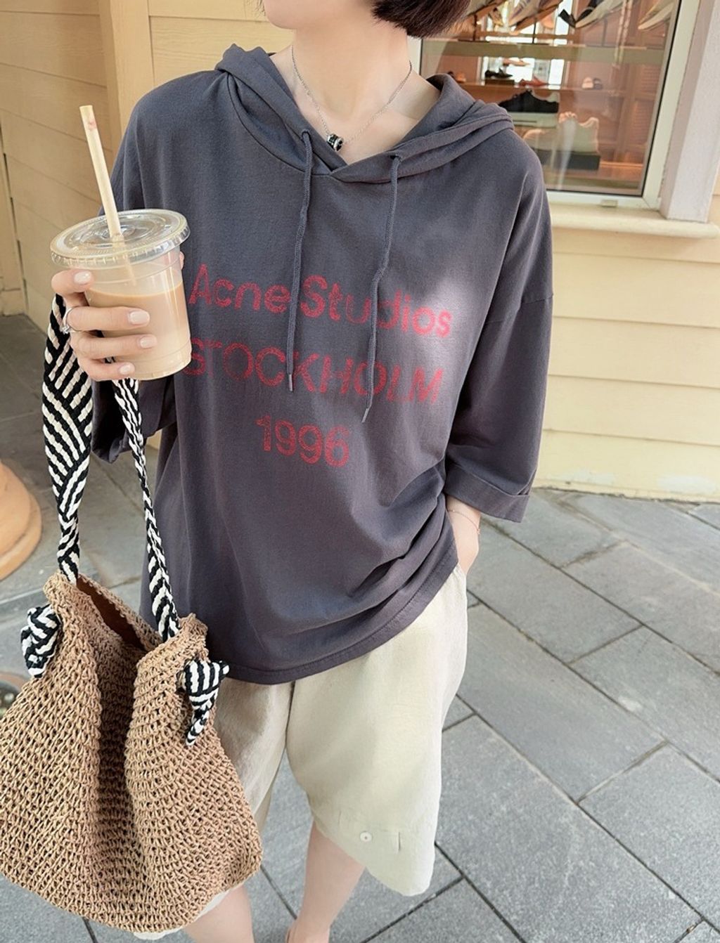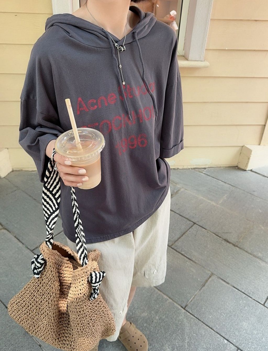 正韓 復古時尚字母設計連帽T*深灰*【H0630-18】