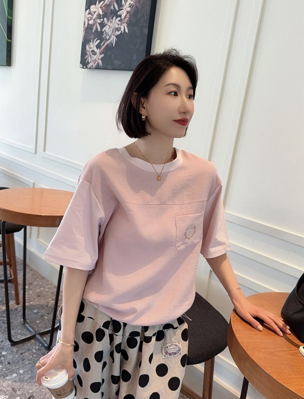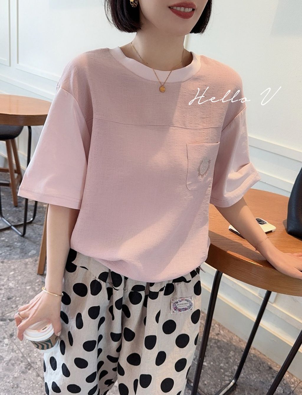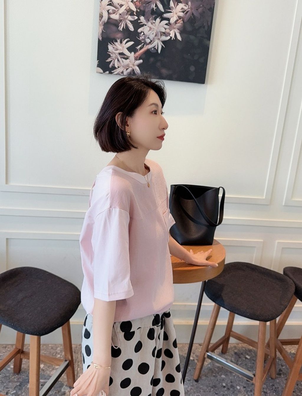 正韓 法式優雅設計感拼接質感上衣*淺粉*【H0630-09】