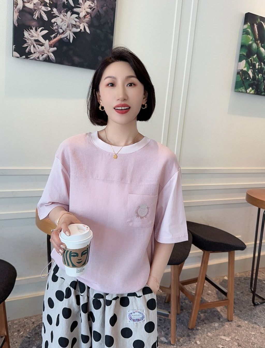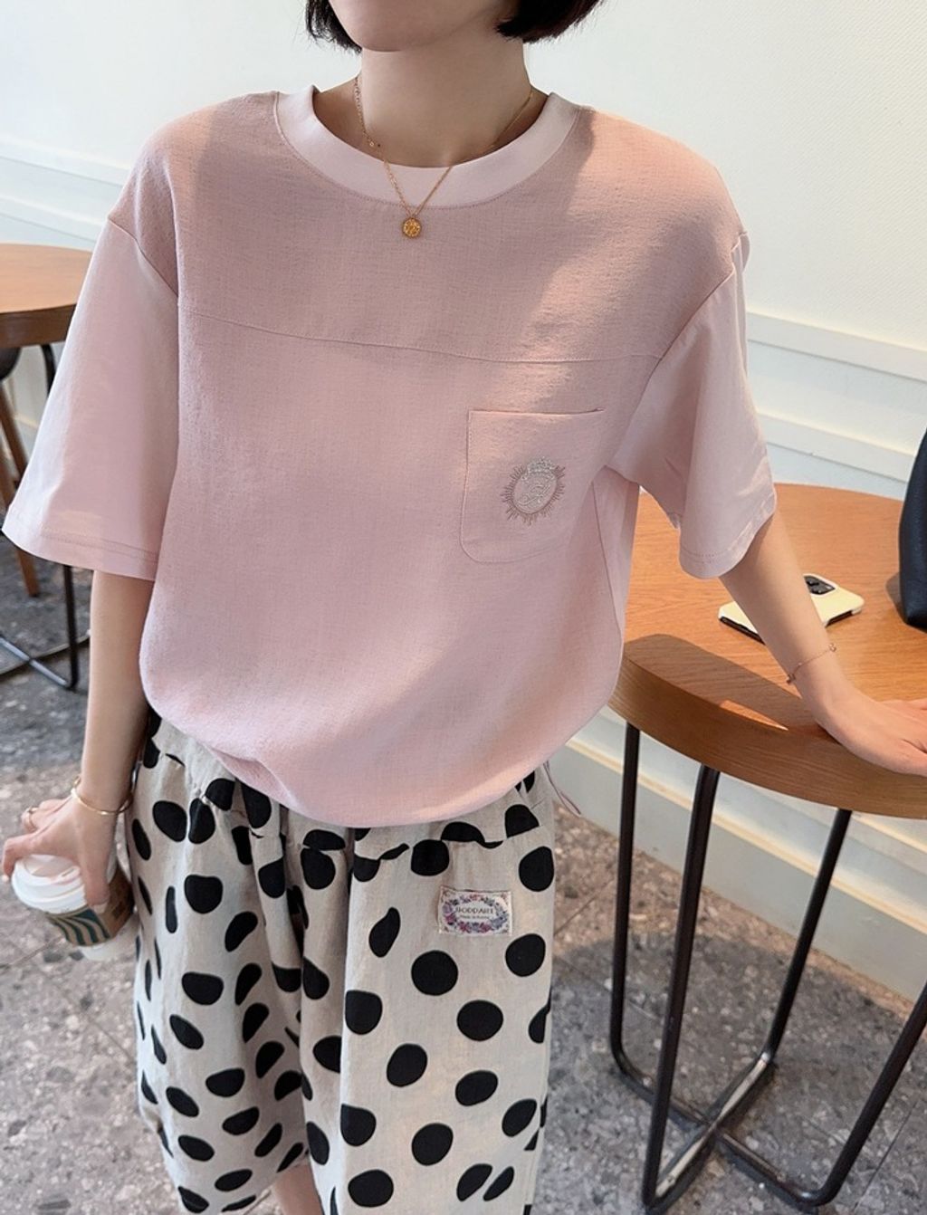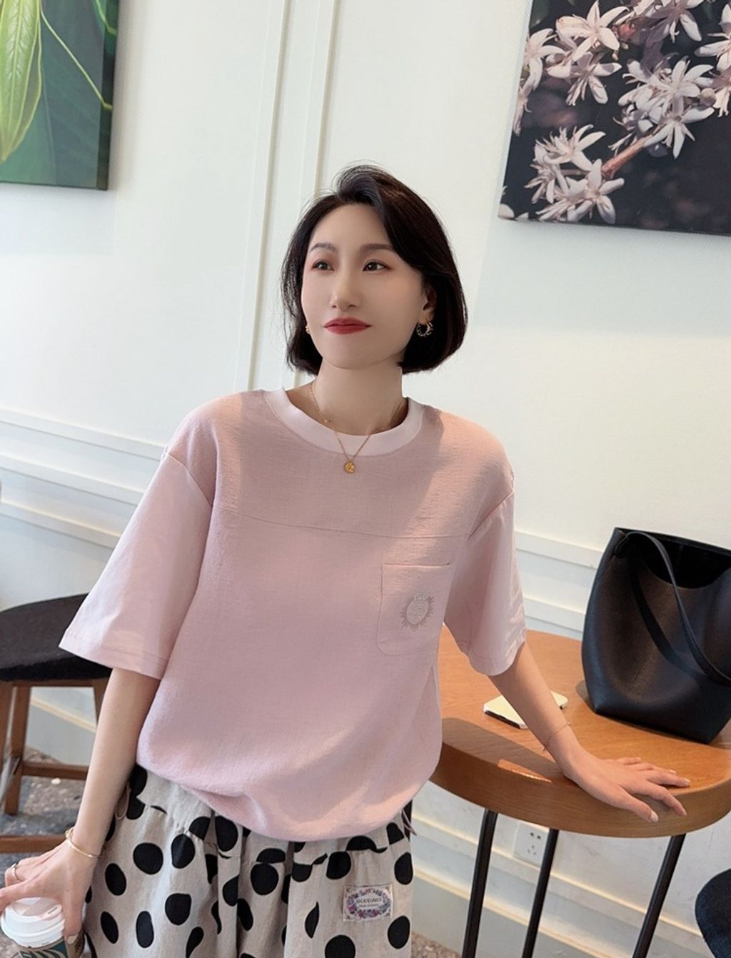 正韓 法式優雅設計感拼接質感上衣*淺粉*【H0630-09】