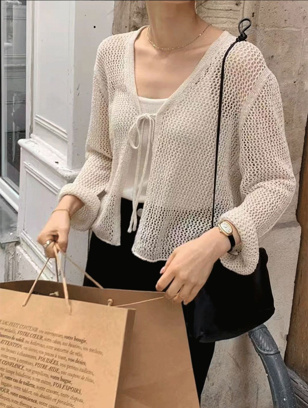 正韓 法式溫柔氣質薄針織小外套*米*【H0630-109】