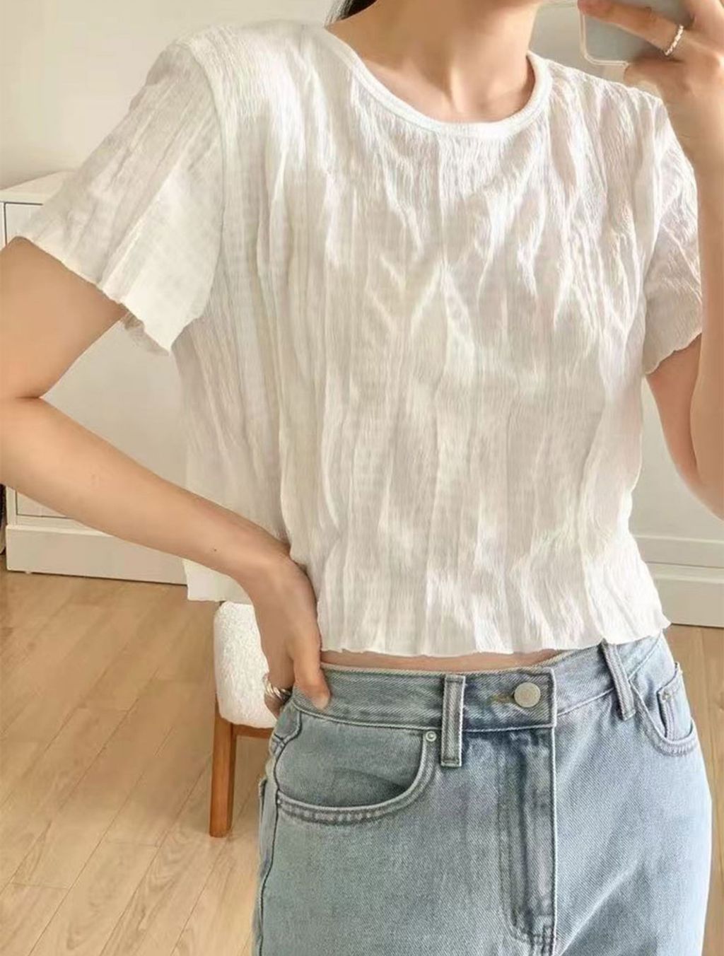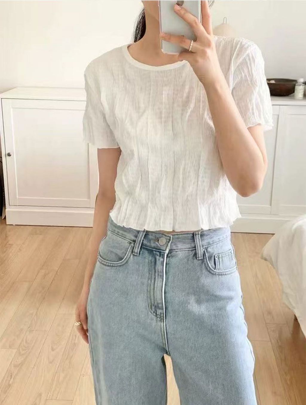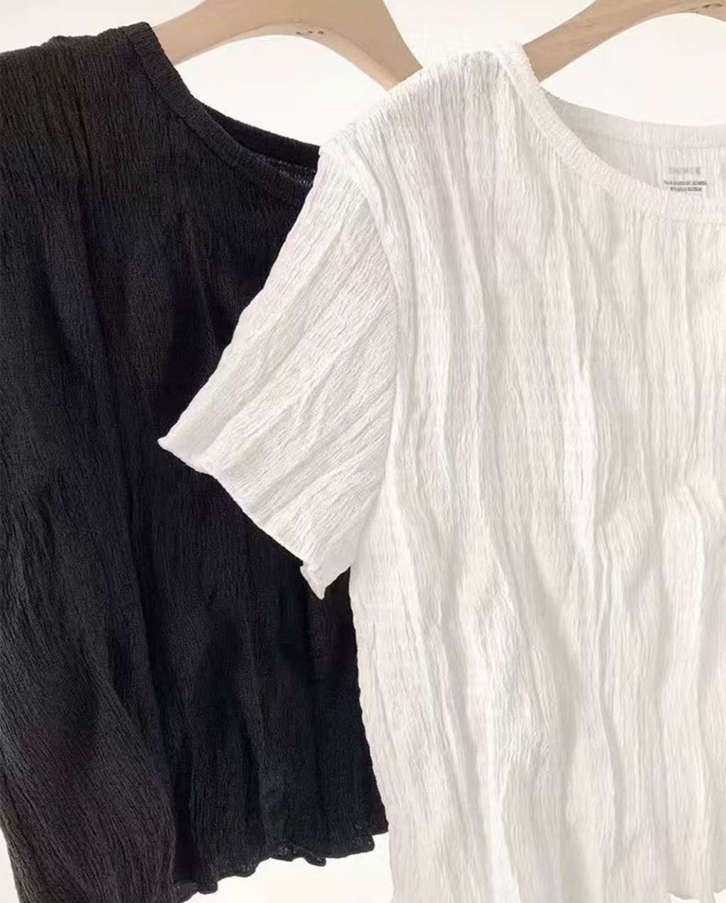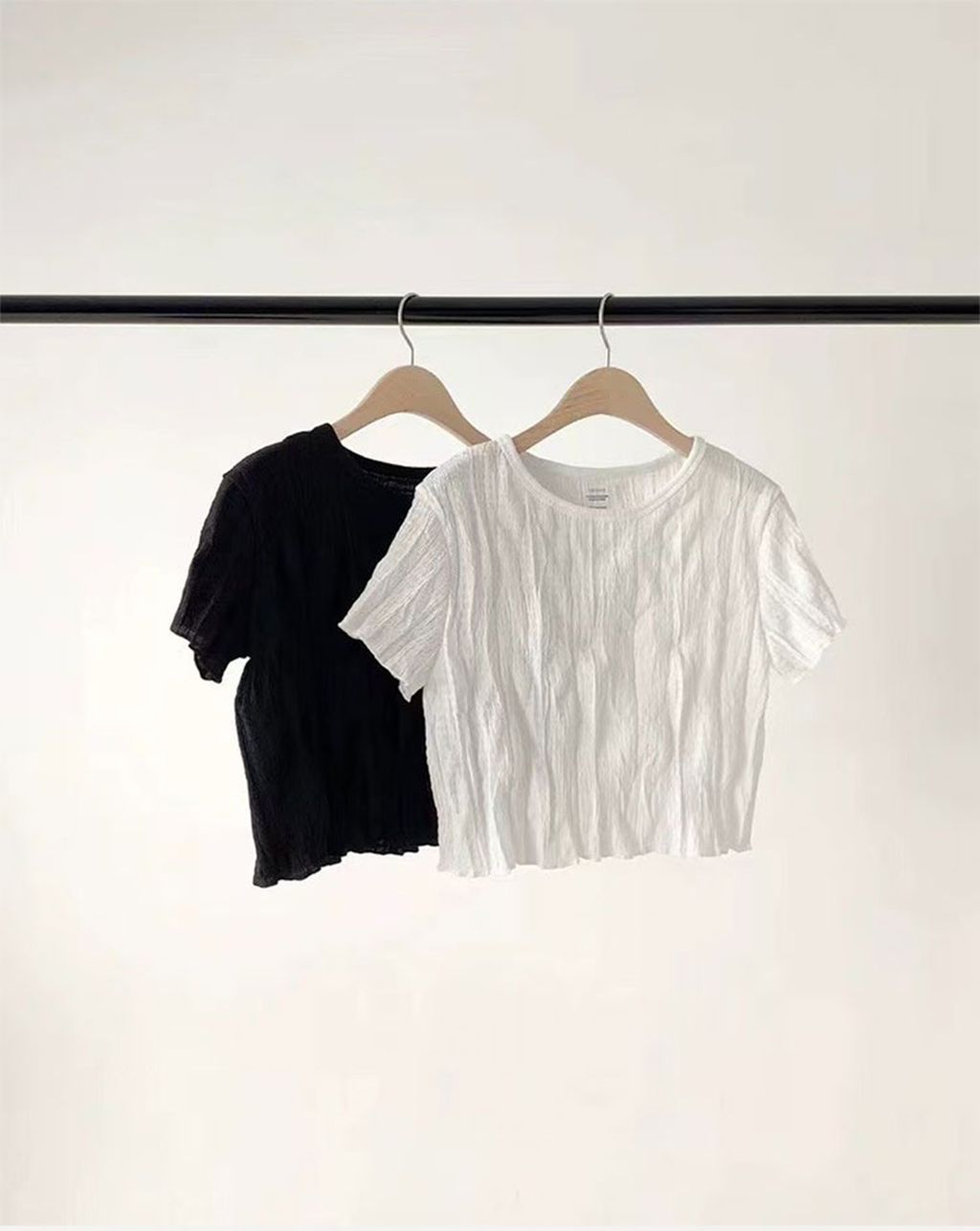 正韓 甜美設計感皺褶質感上衣*白黑*【H0630-106】