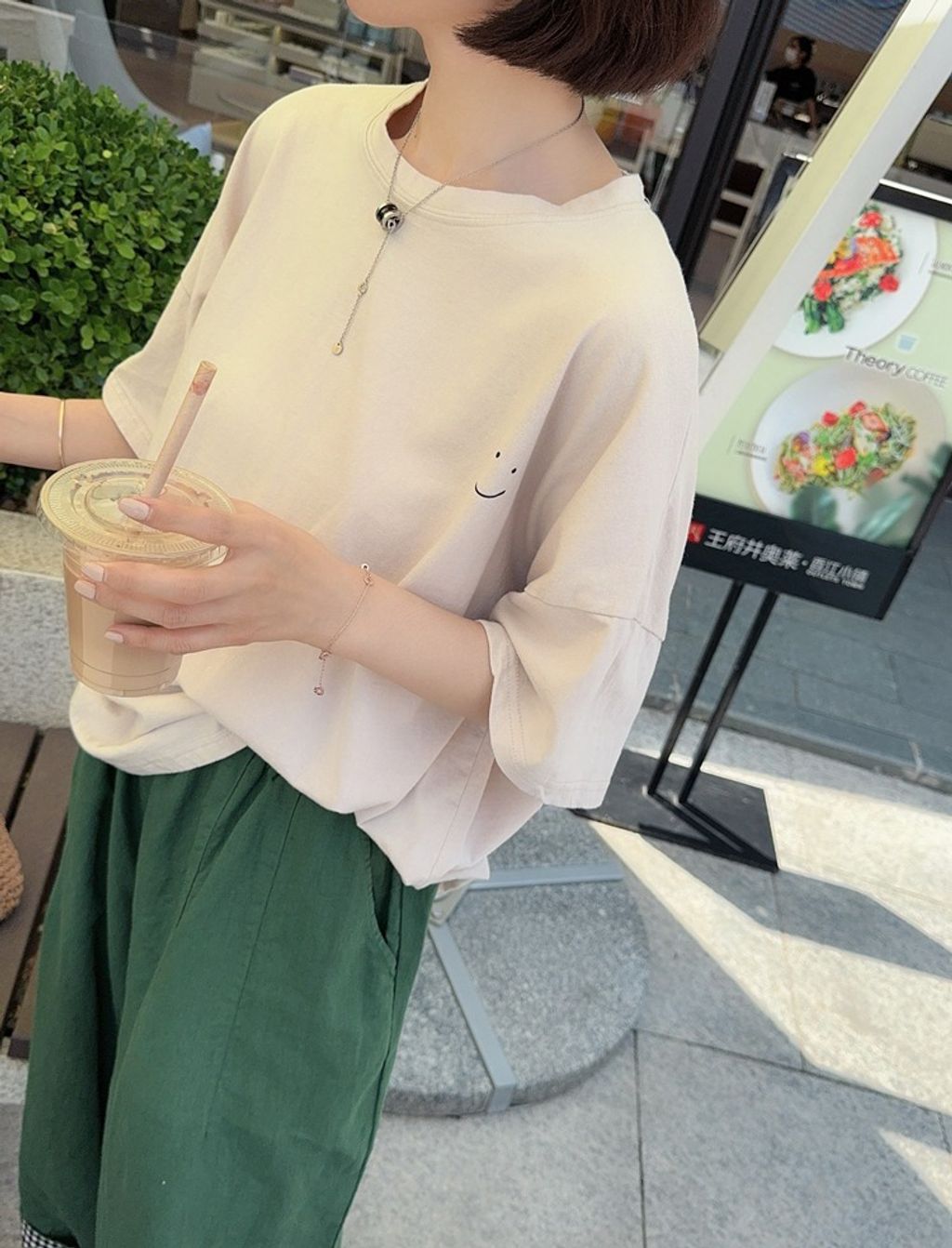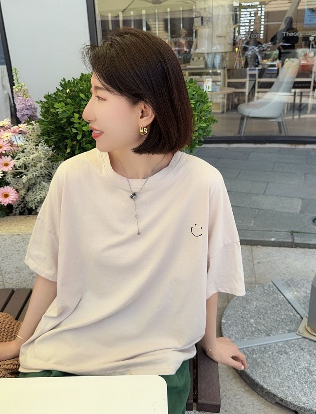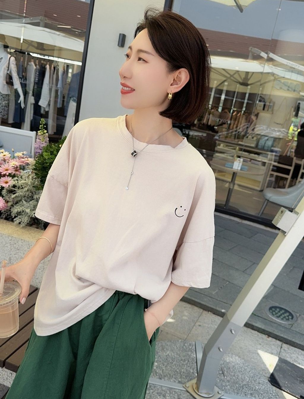 正韓 簡約設計感笑臉寬鬆短T*米*【H0630-17】