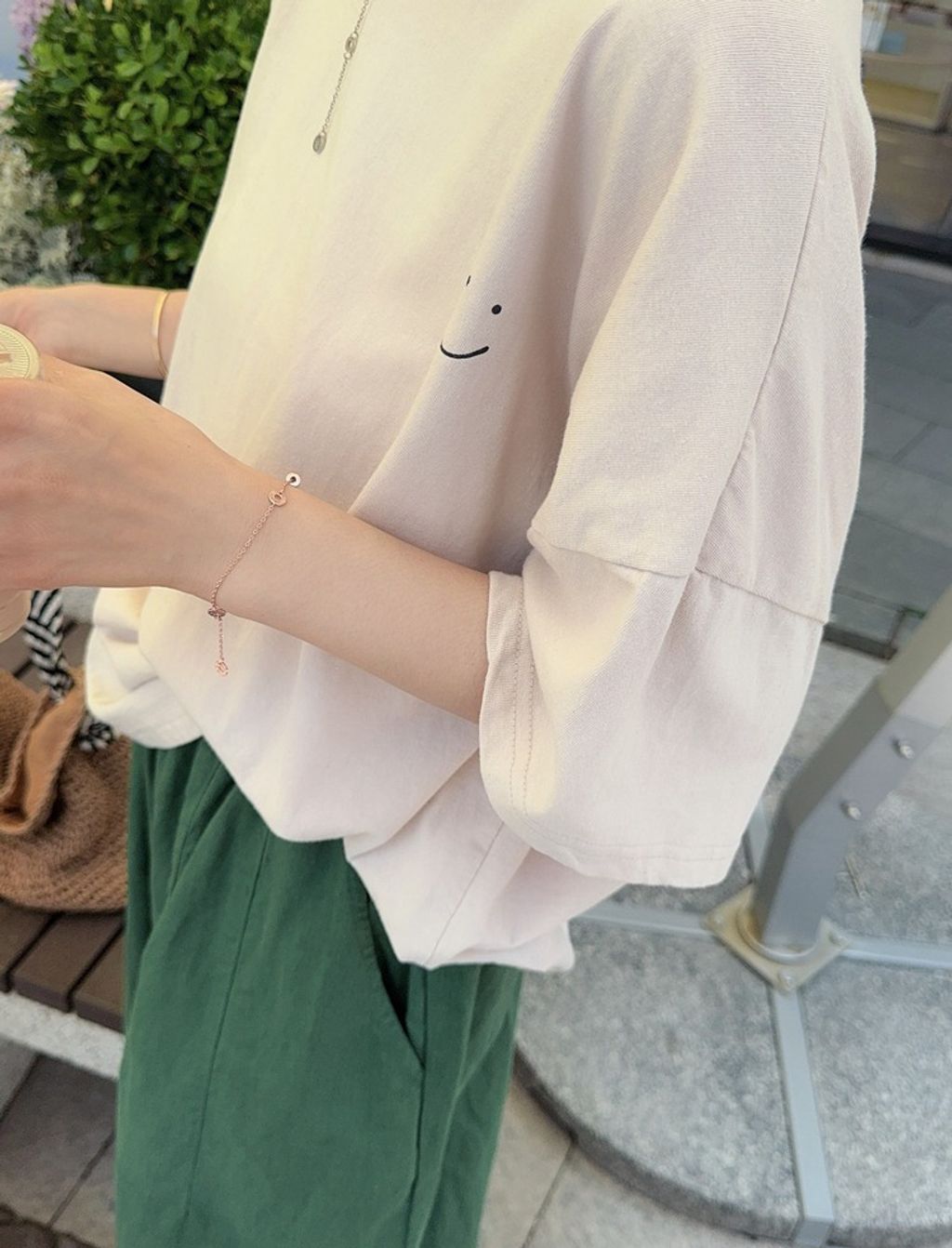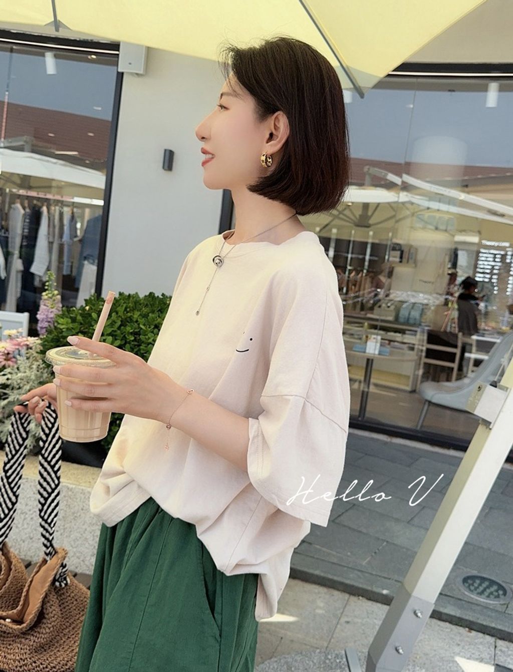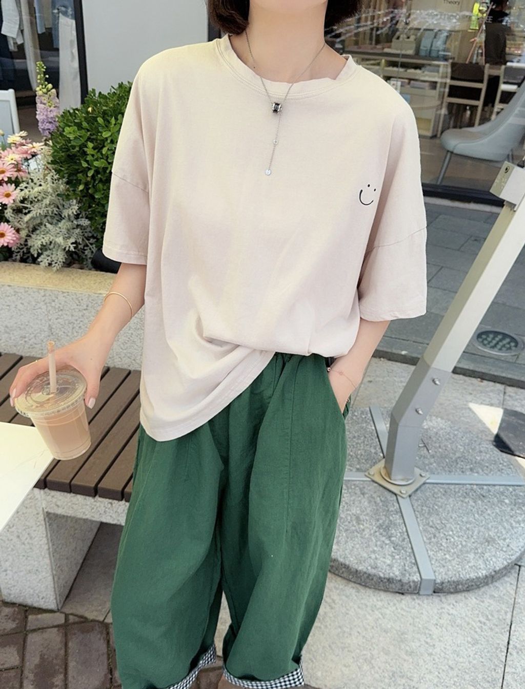 正韓 簡約設計感笑臉寬鬆短T*米*【H0630-17】