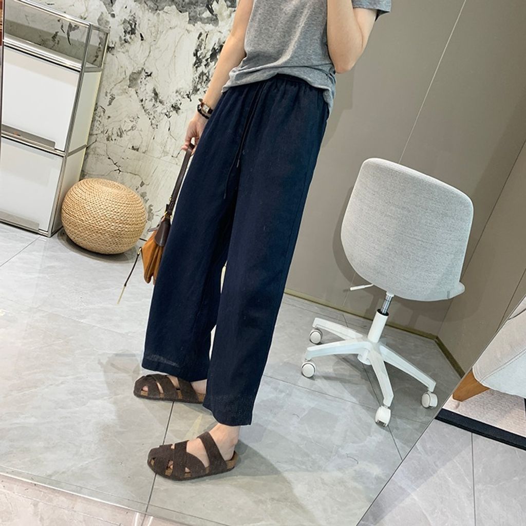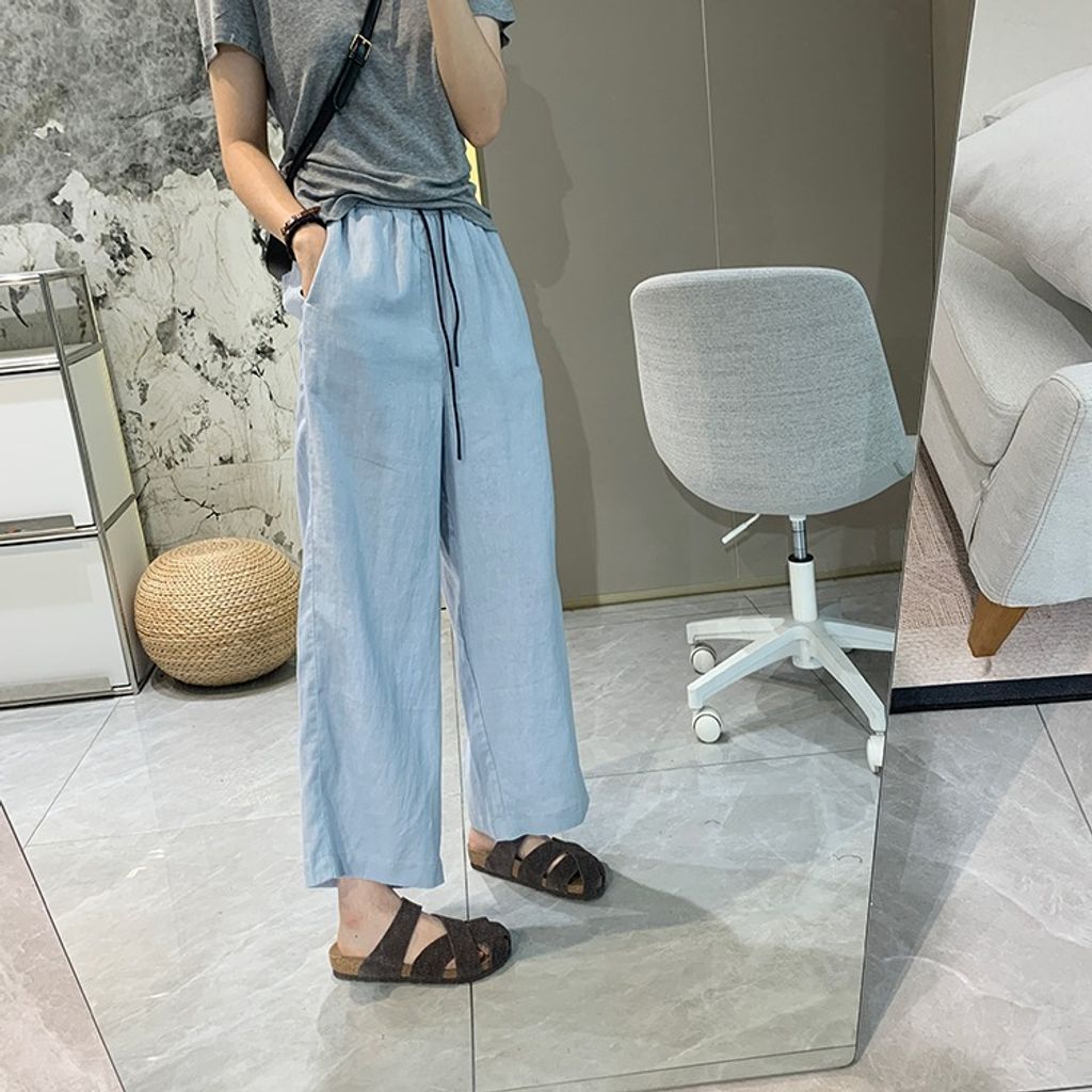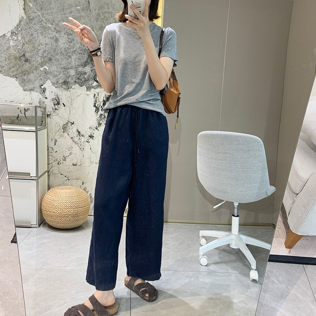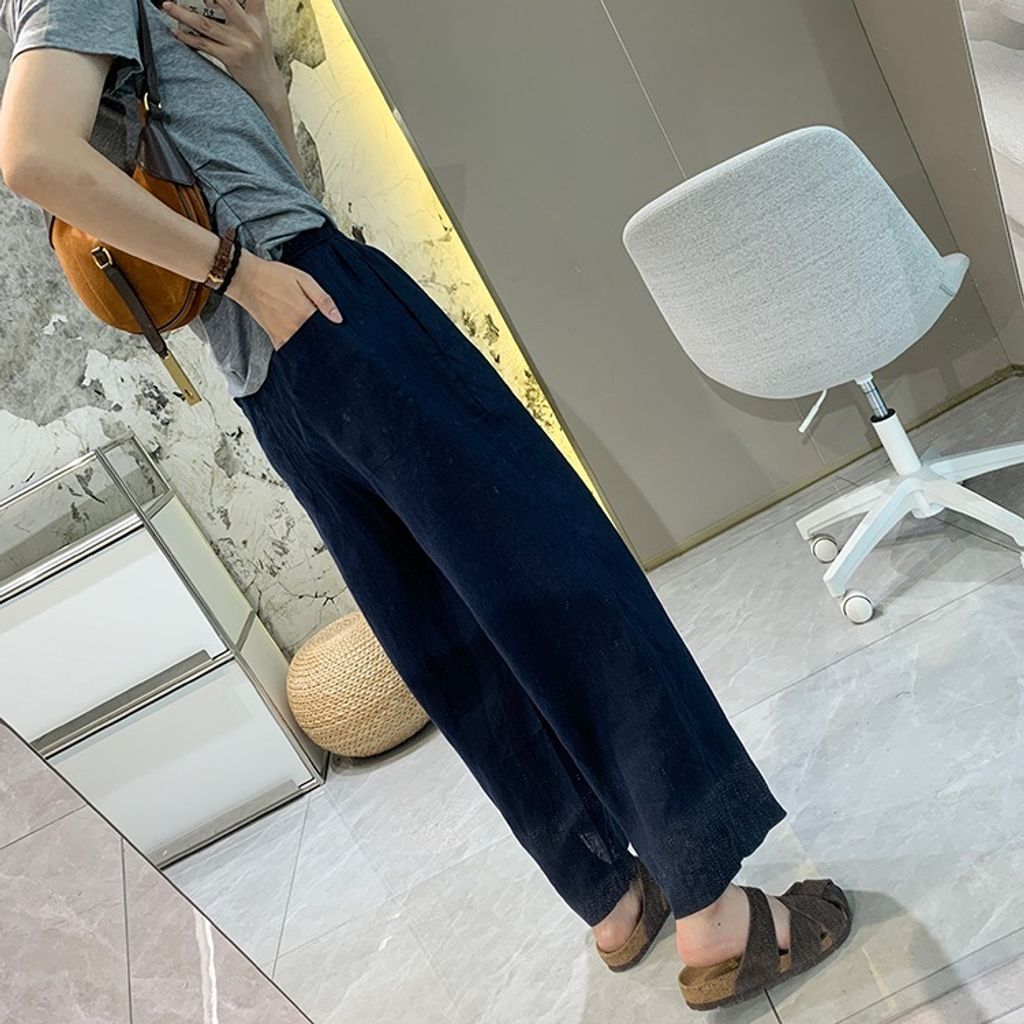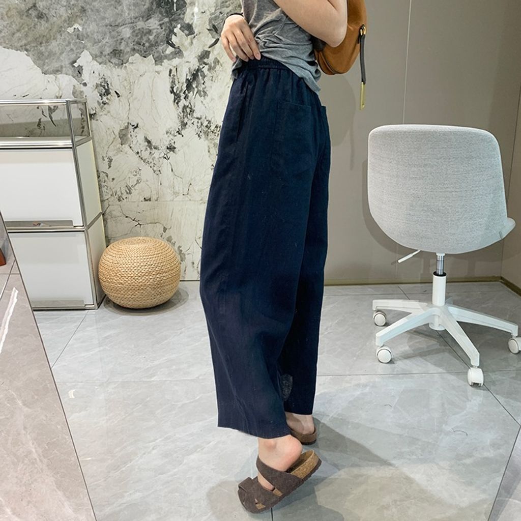 簡約氣質好穿亞麻鬆緊腰休閒褲*天藍深藍杏*【E0710-51】