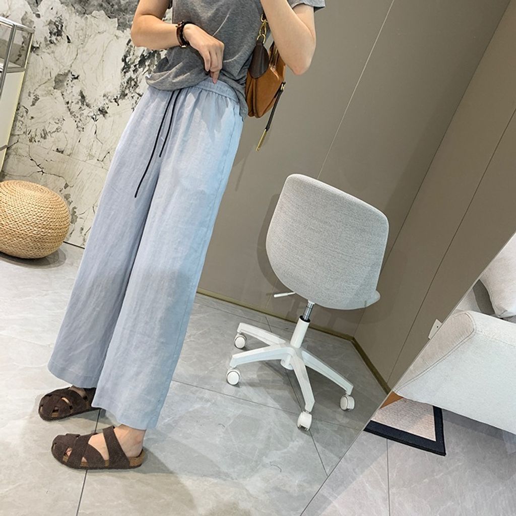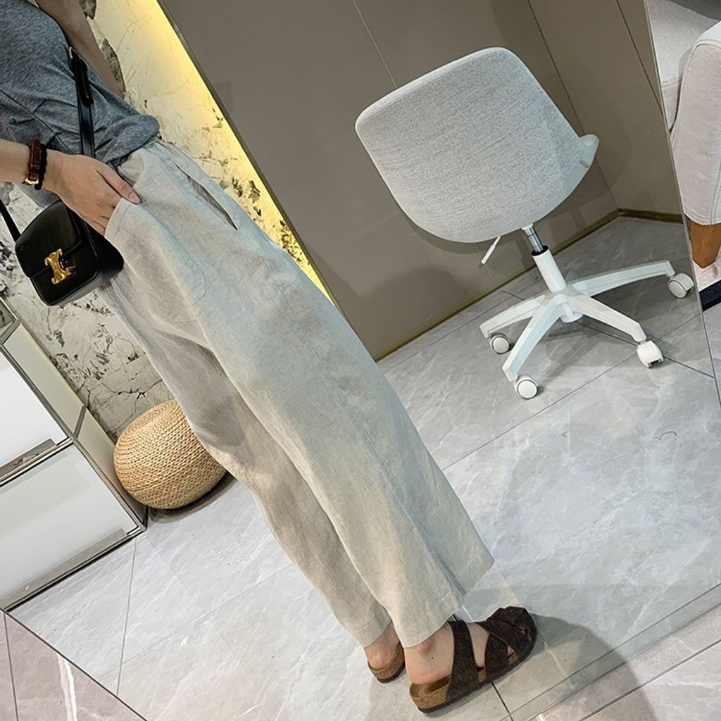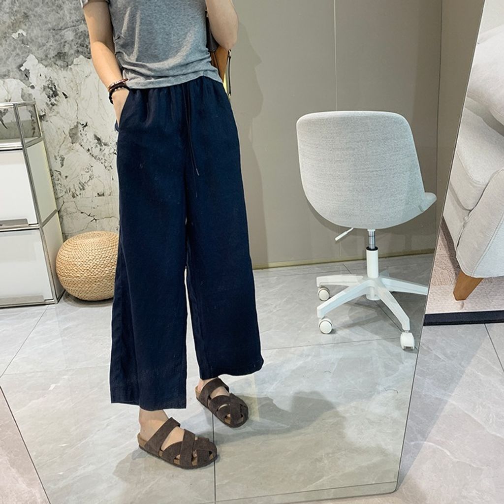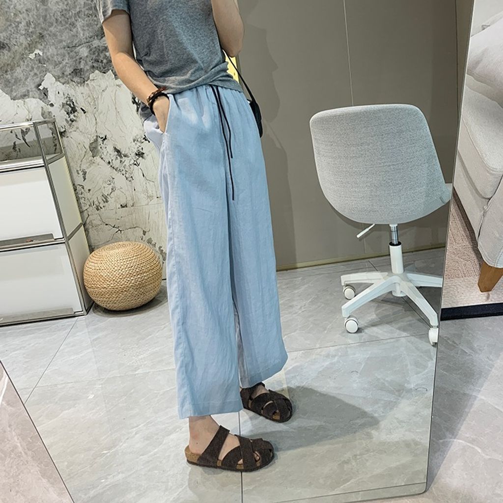 簡約氣質好穿亞麻鬆緊腰休閒褲*天藍深藍杏*【E0710-51】