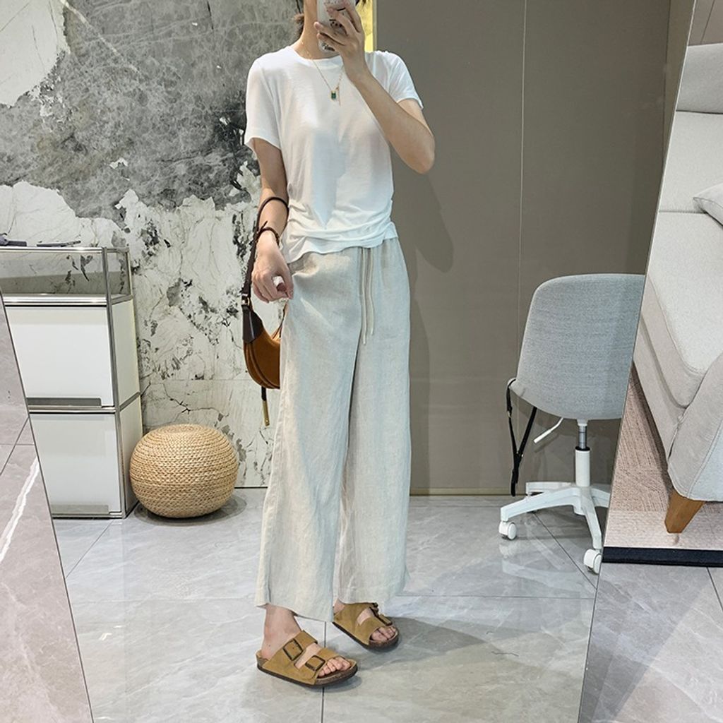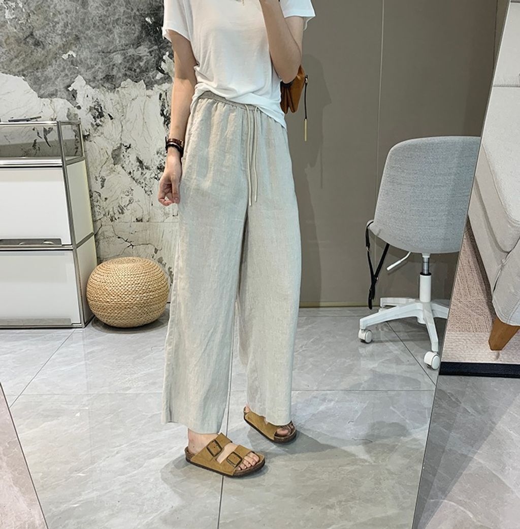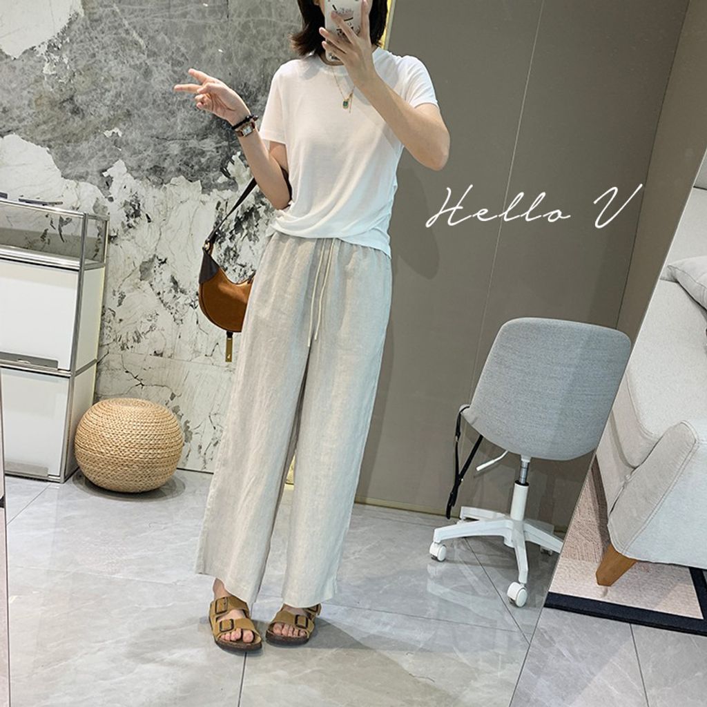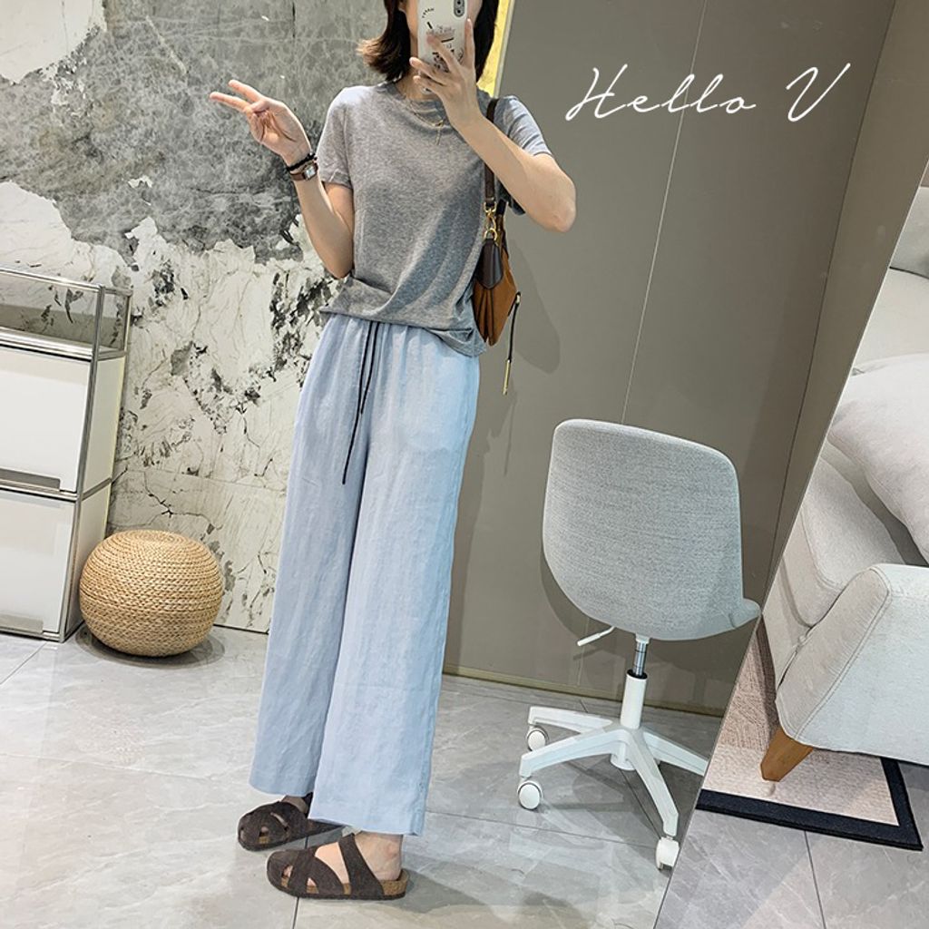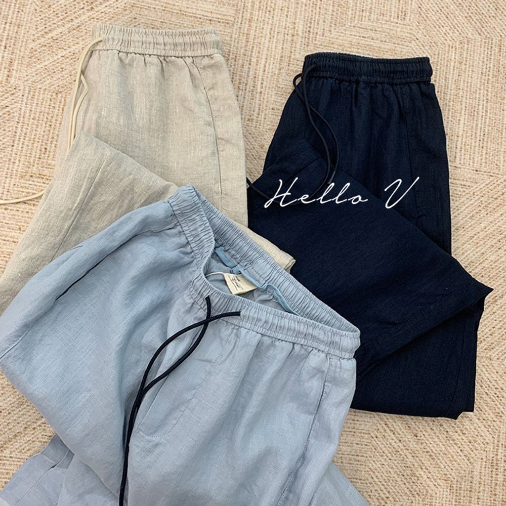 簡約氣質好穿亞麻鬆緊腰休閒褲*天藍深藍杏*【E0710-51】