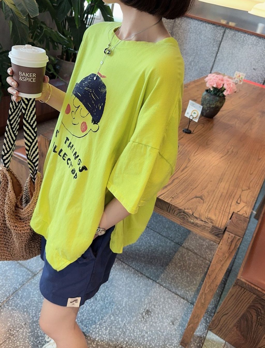 正韓 可愛亮眼小男孩圖樣寬鬆短T*黃*【N0731-95】