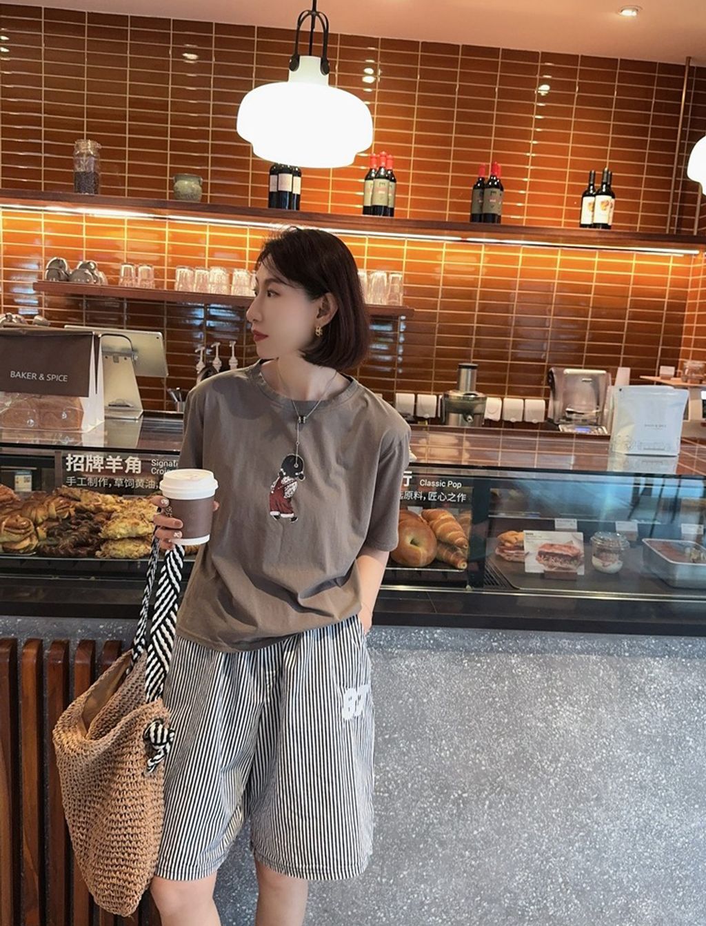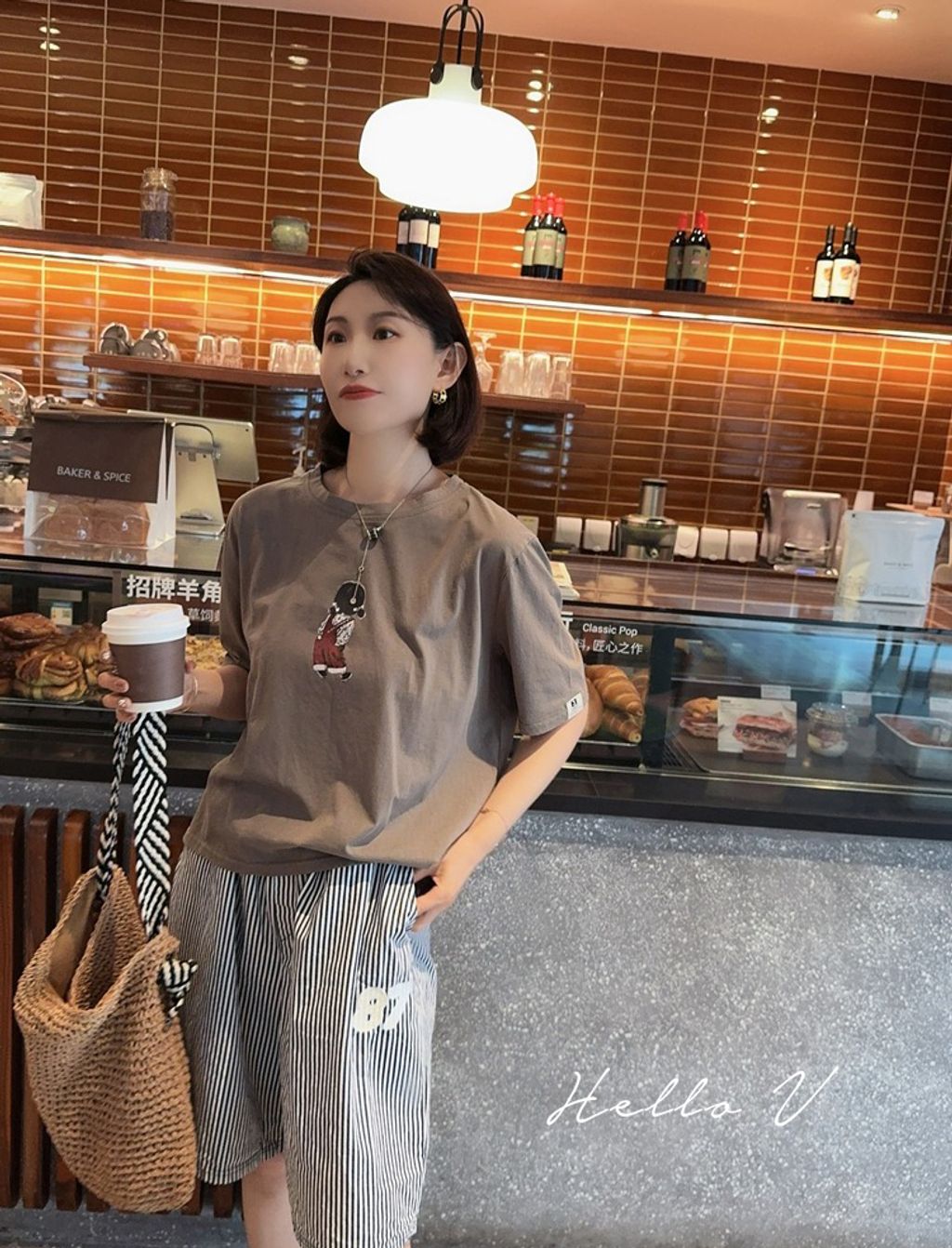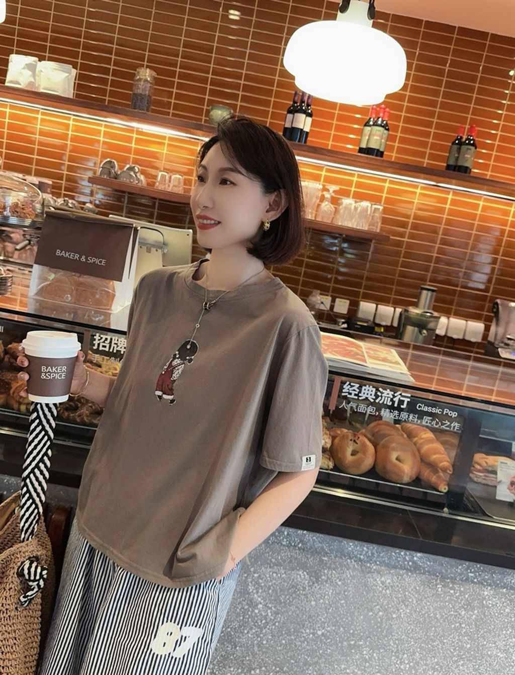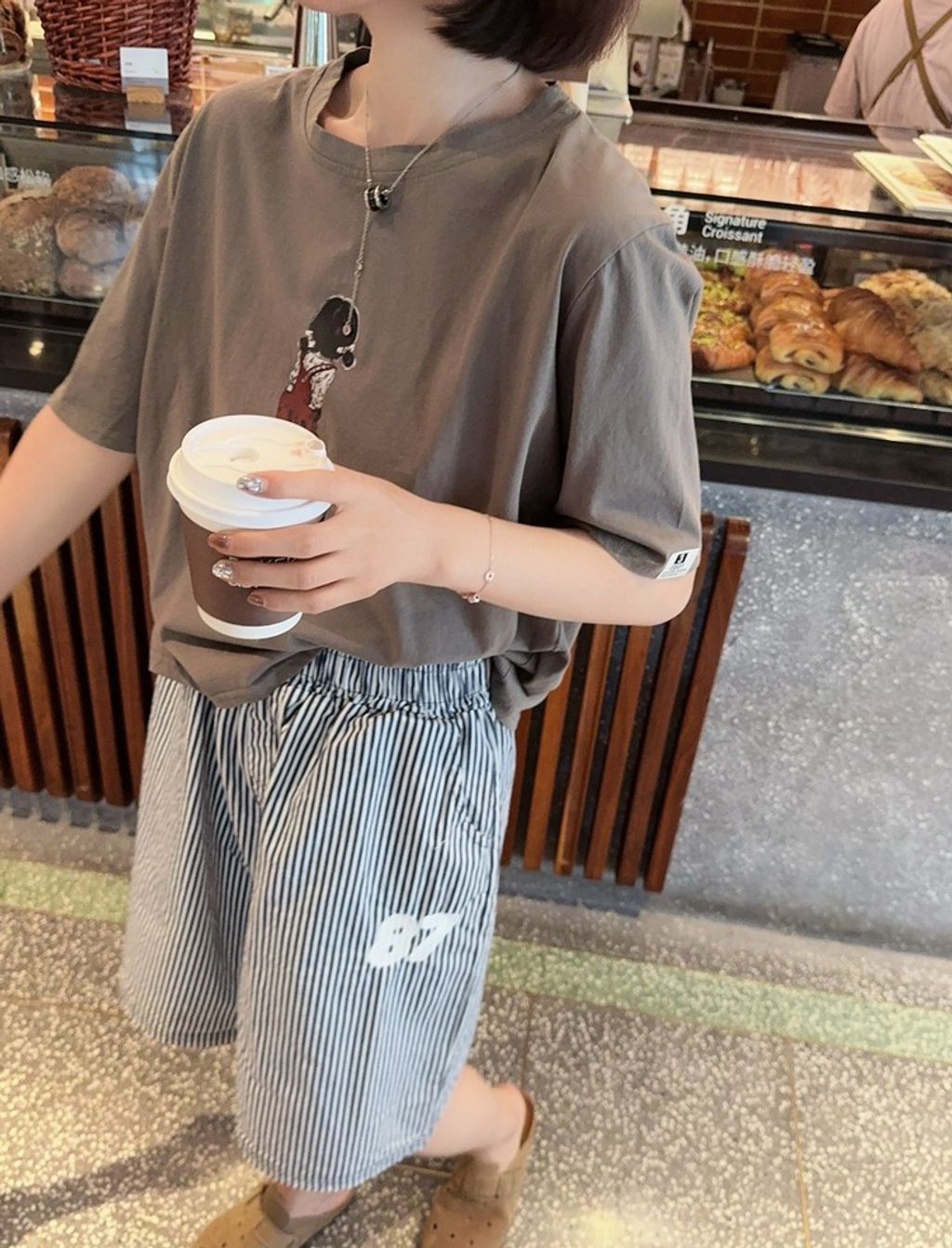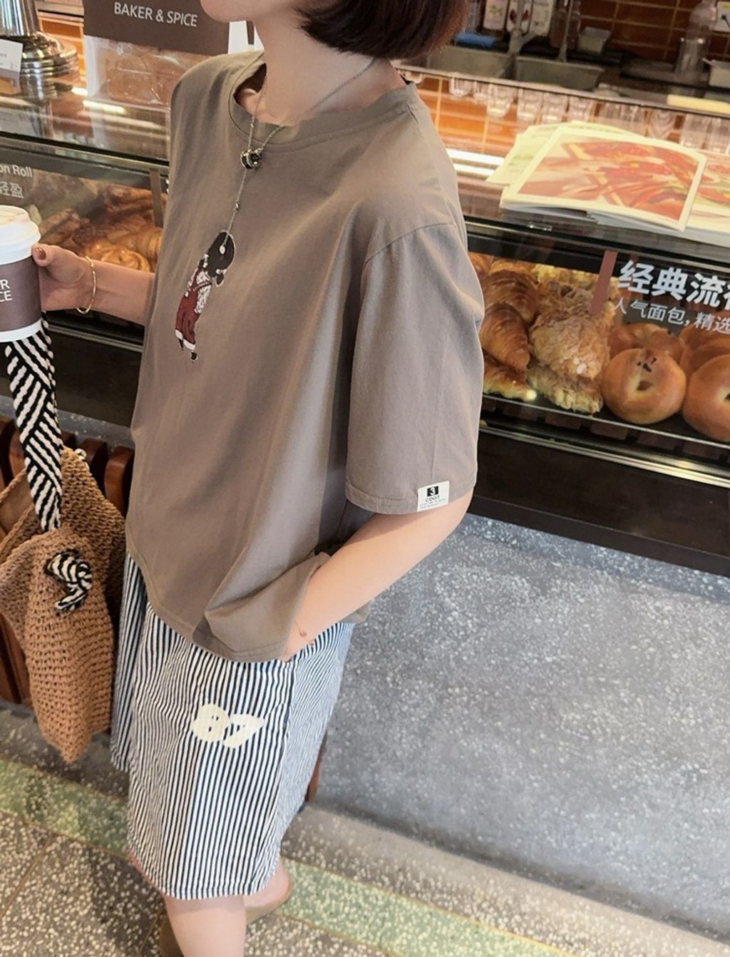 正韓 復古個性小女孩寬鬆短T*灰綠*【N0731-81】