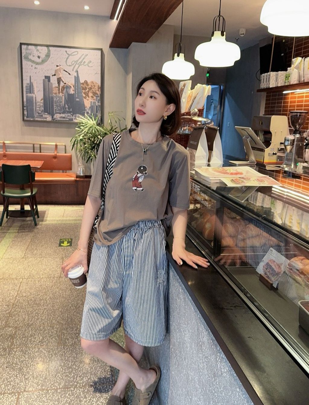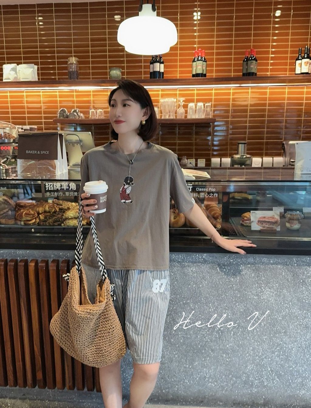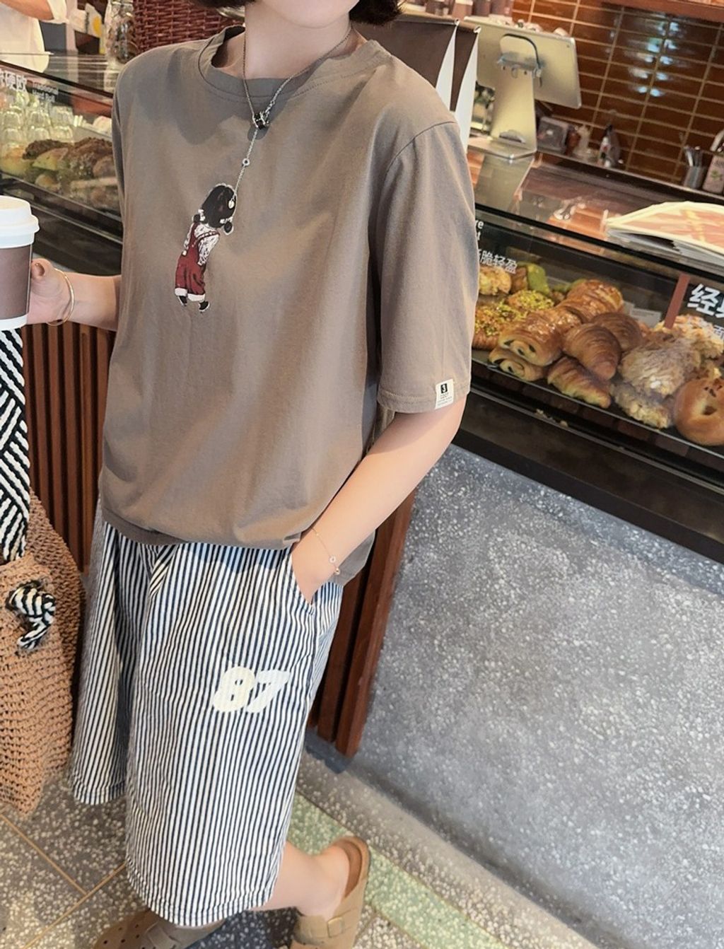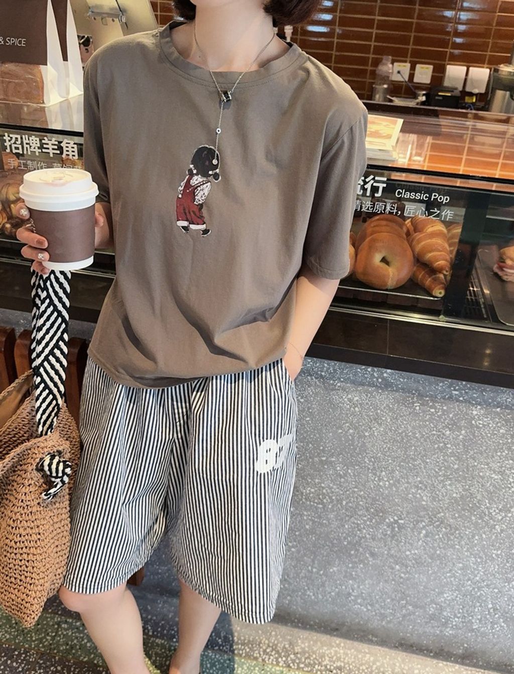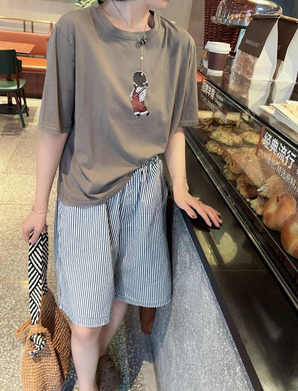 正韓 復古個性小女孩寬鬆短T*灰綠*【N0731-81】