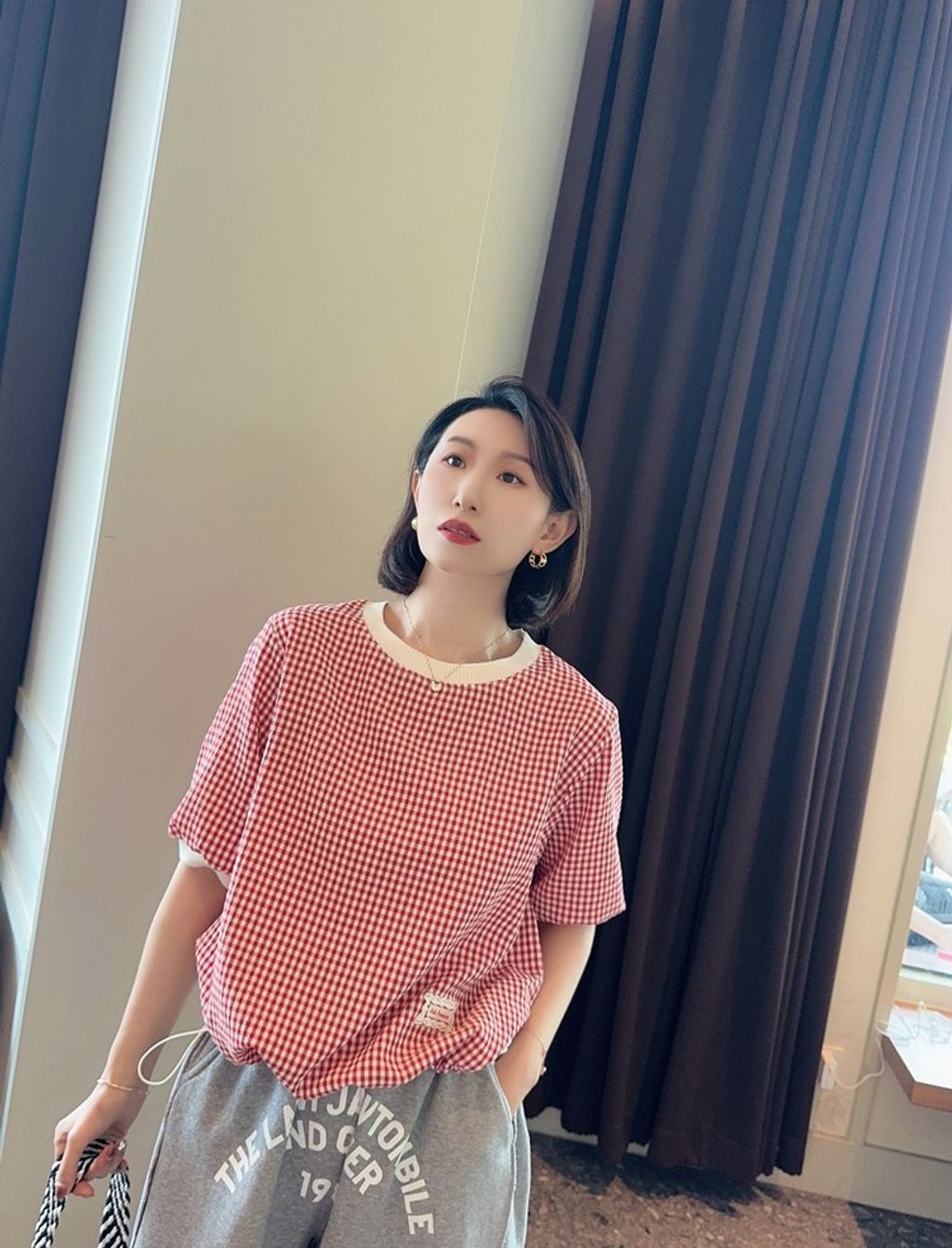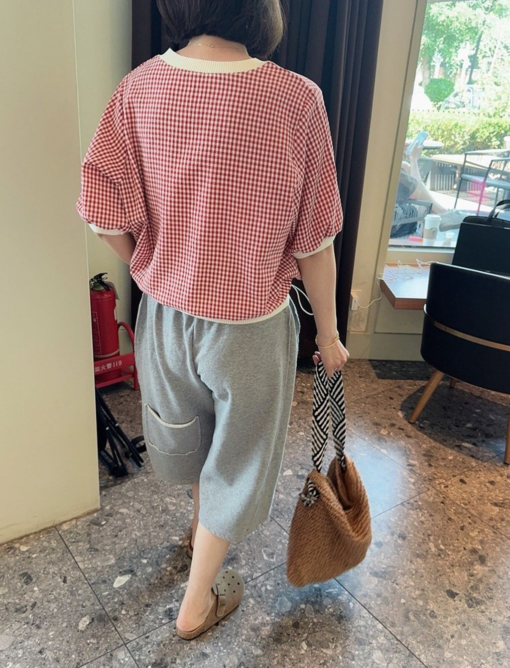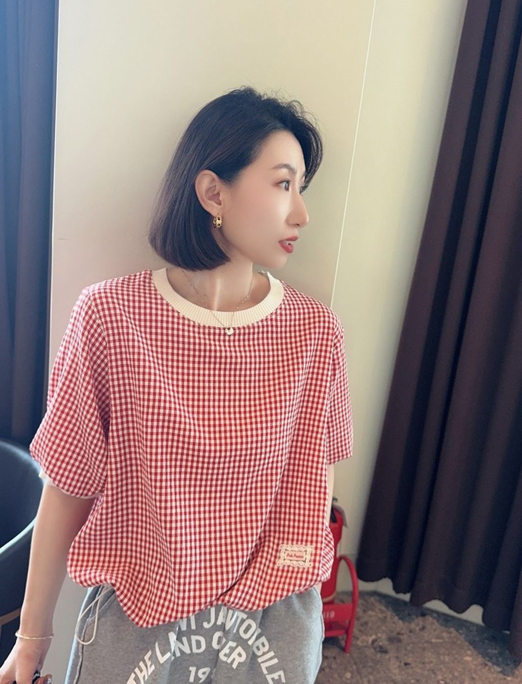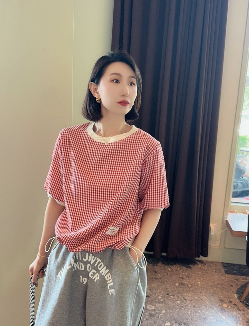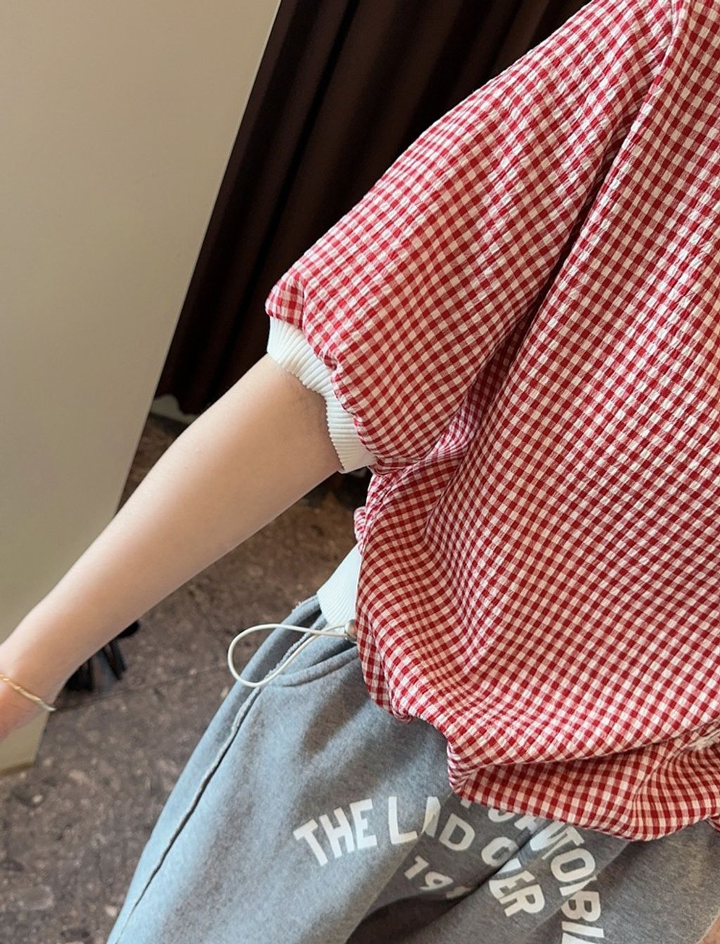 正韓 復古甜美格紋抽繩可愛上衣*紅*【N0731-79】