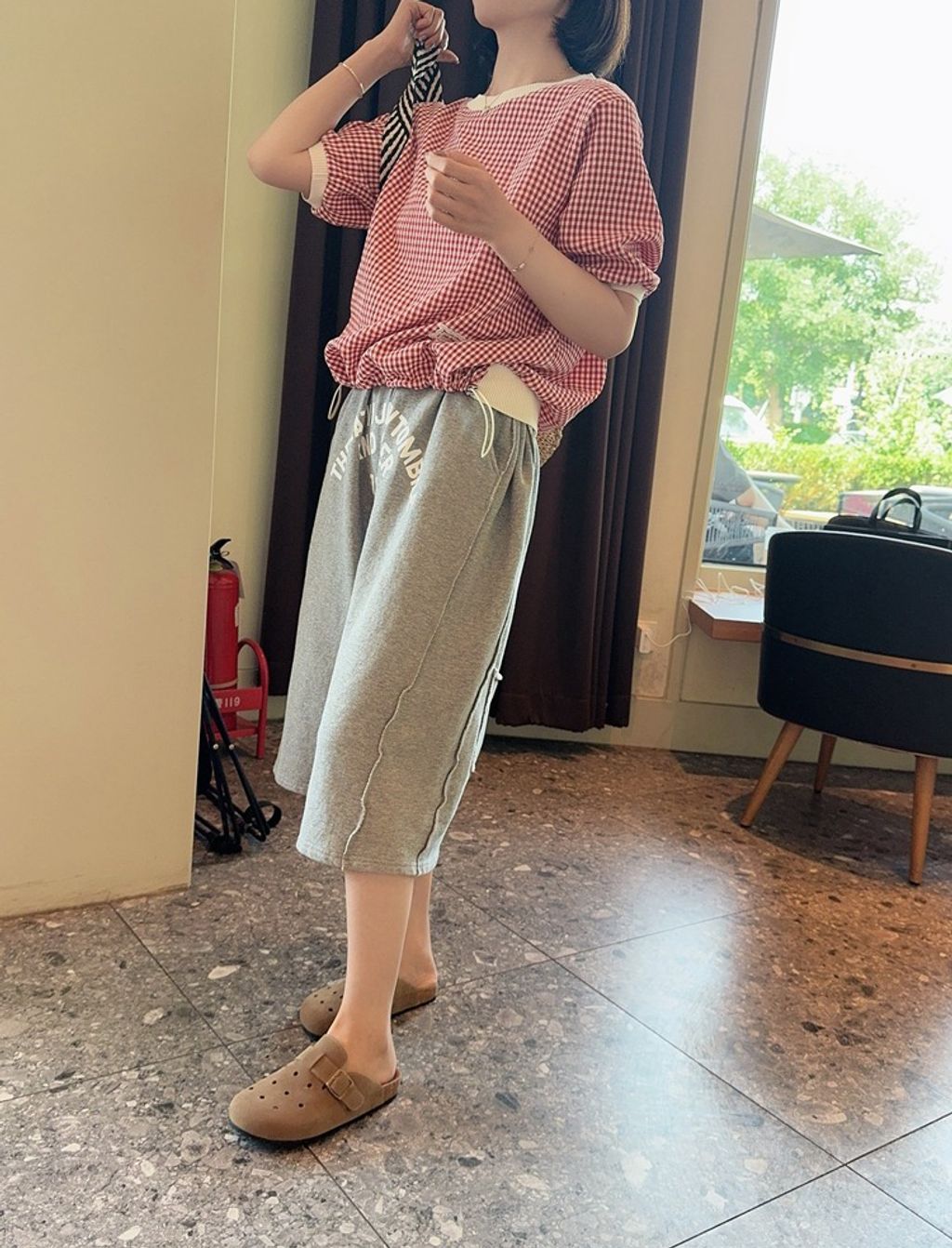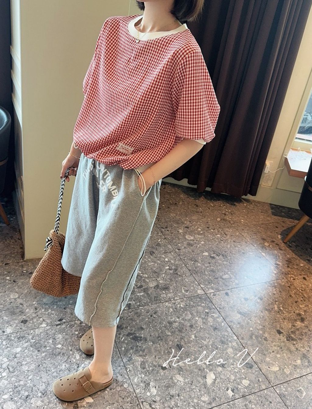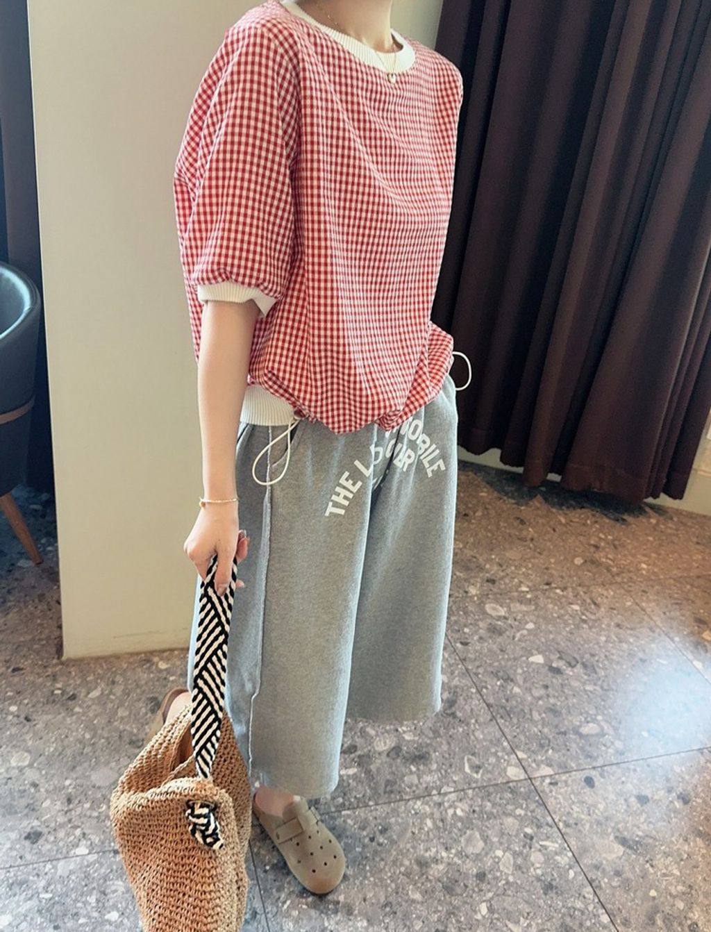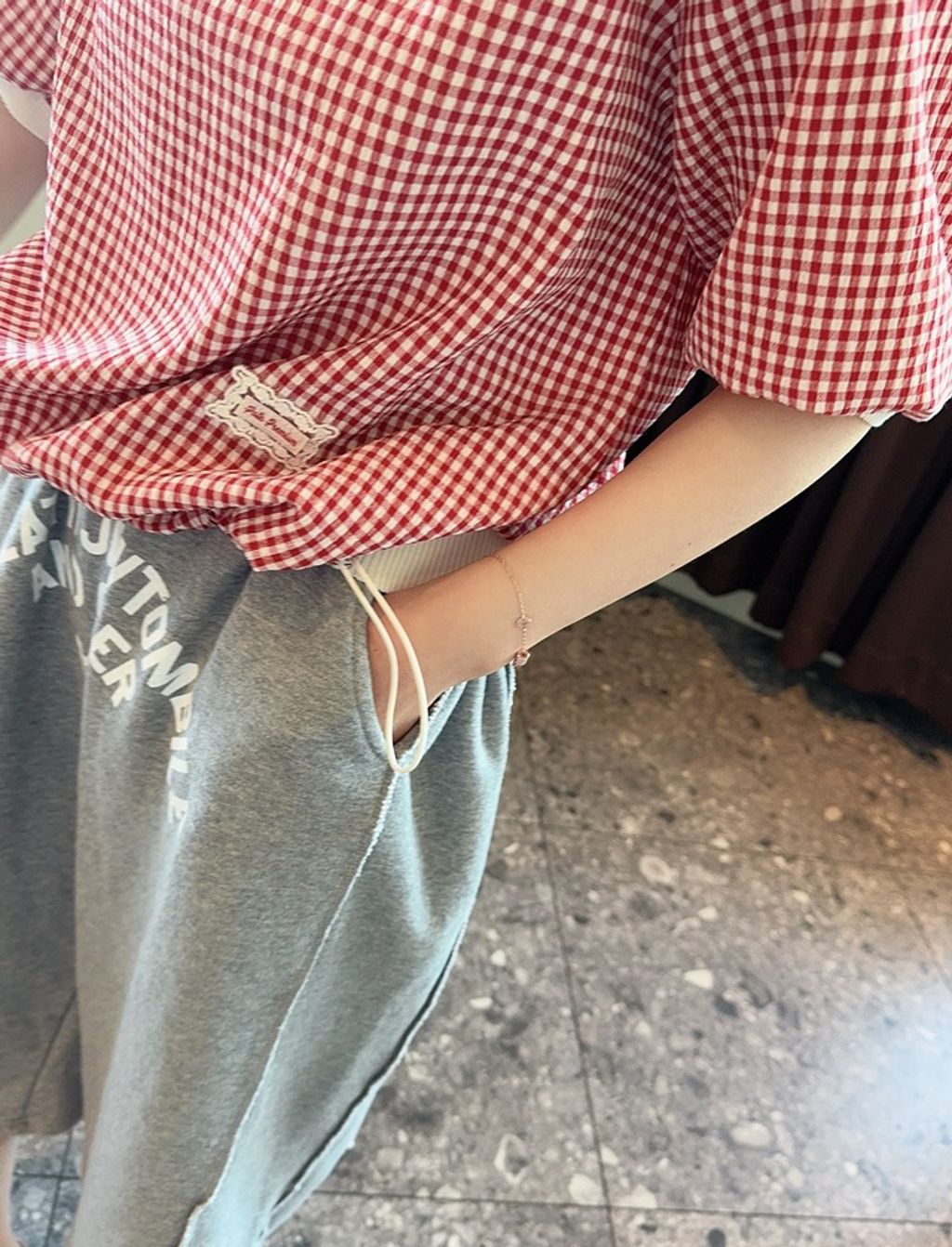 正韓 復古甜美格紋抽繩可愛上衣*紅*【N0731-79】