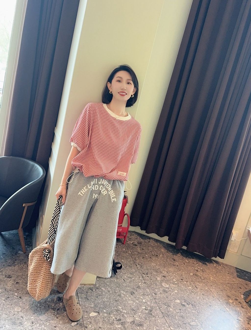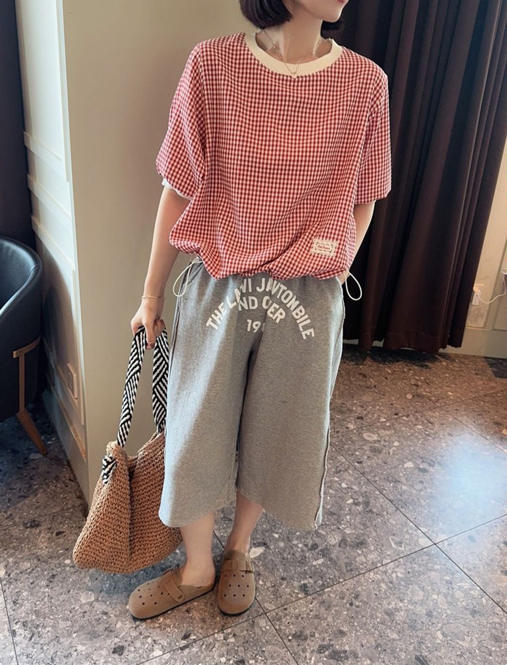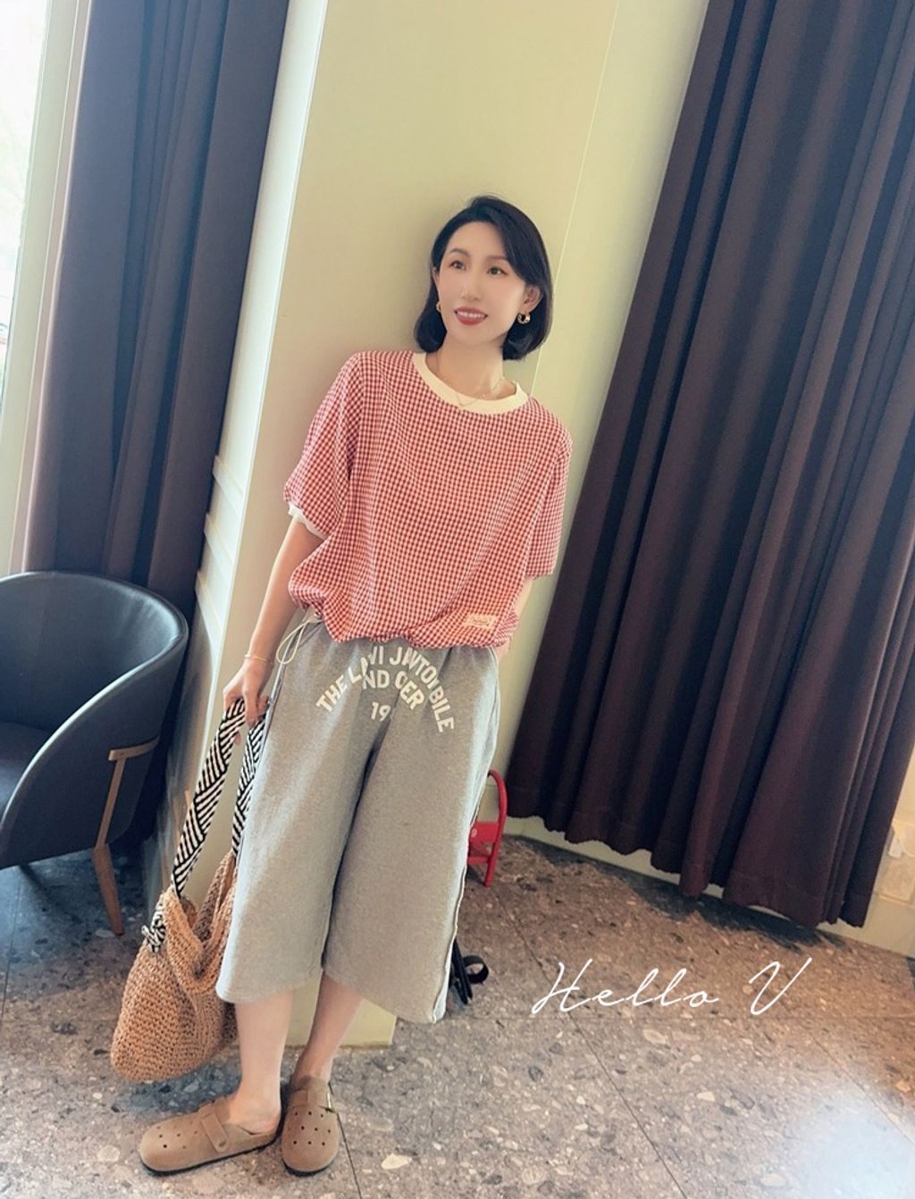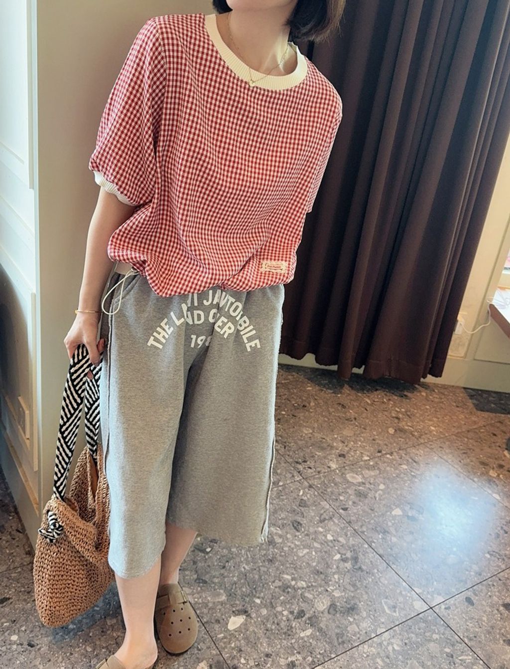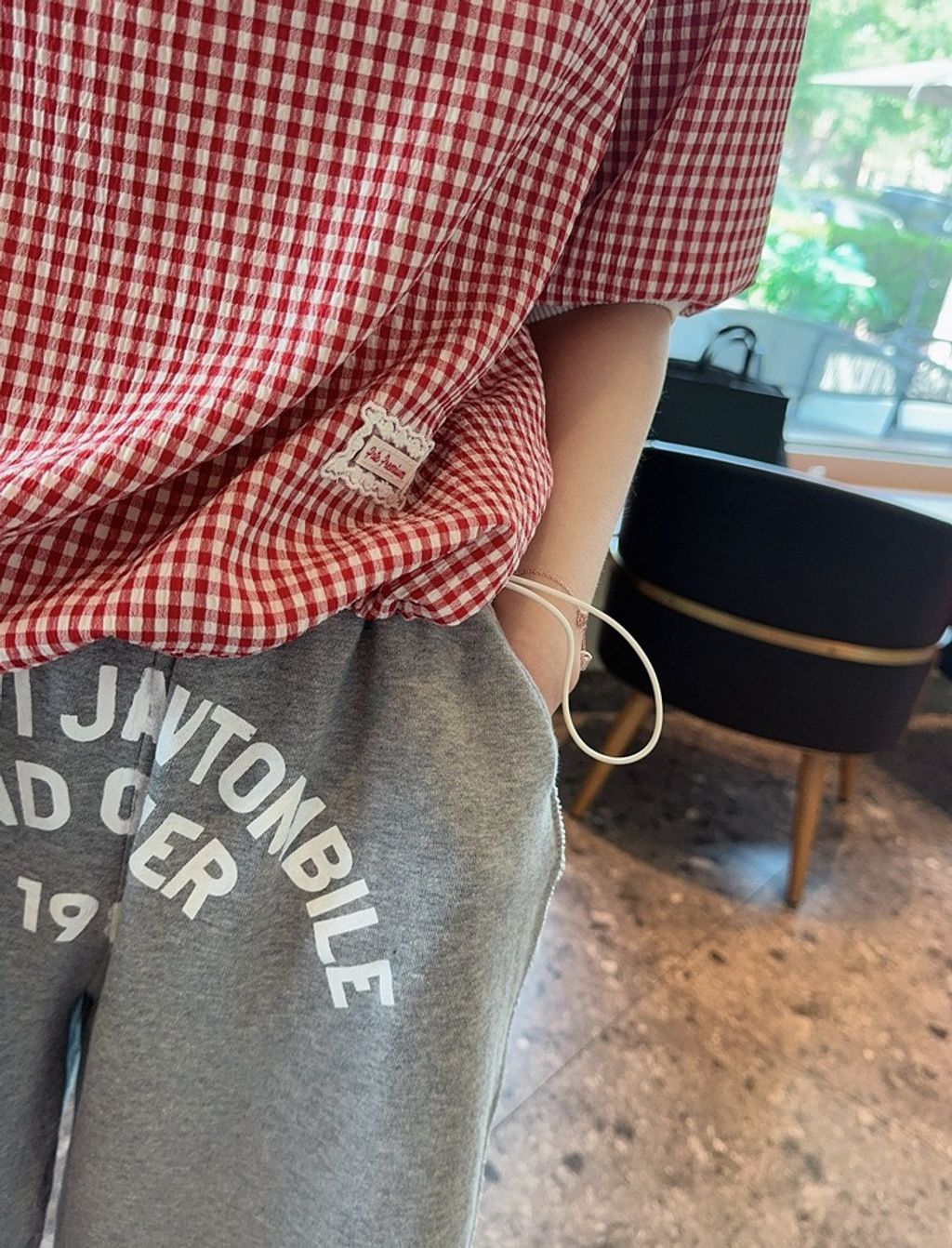 正韓 復古甜美格紋抽繩可愛上衣*紅*【N0731-79】