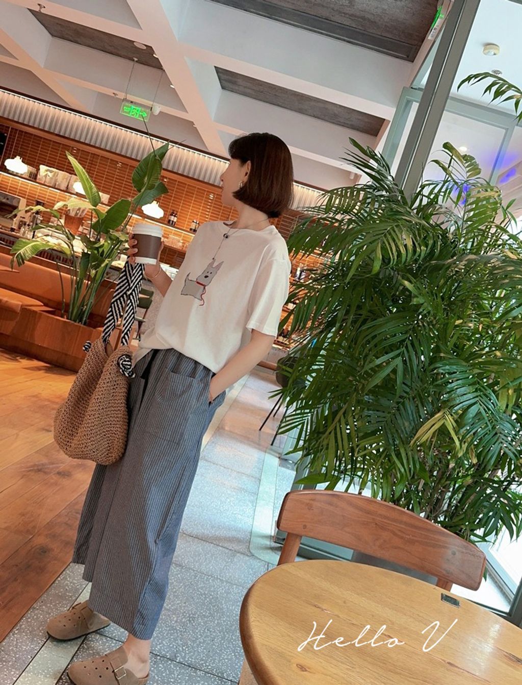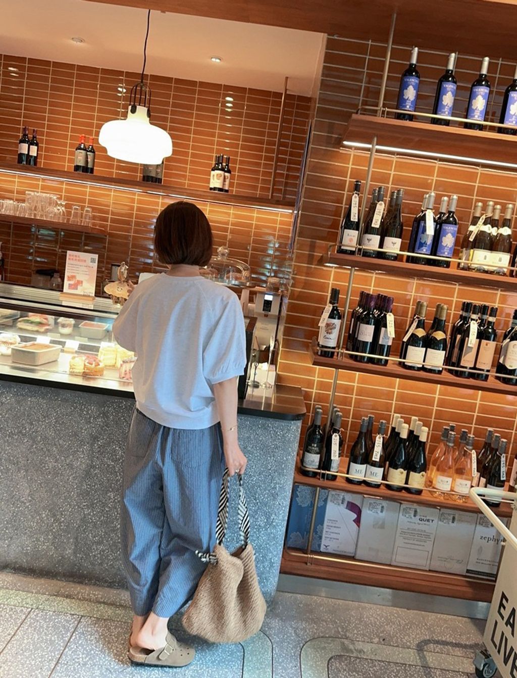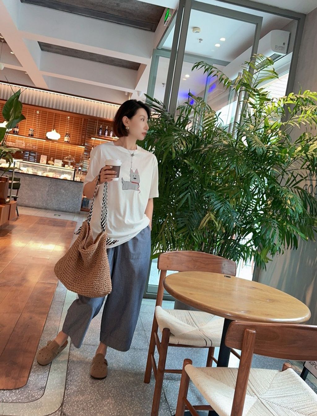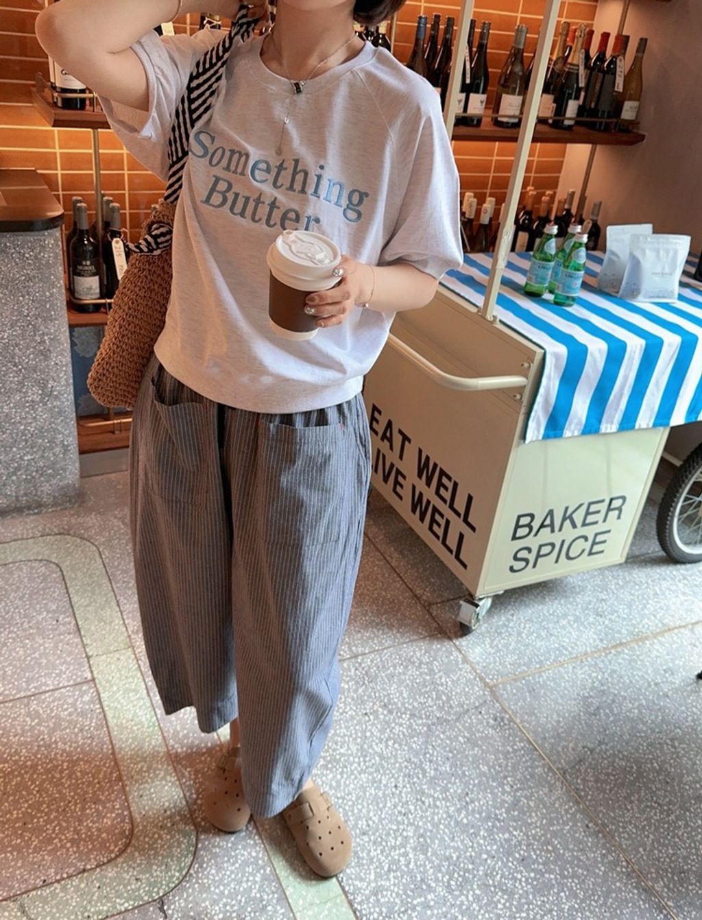 正韓 日系清新風格直條紋寬鬆感休閒褲*灰藍*【N0731-75】