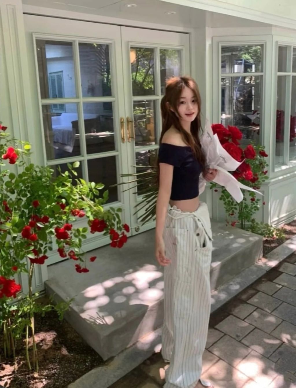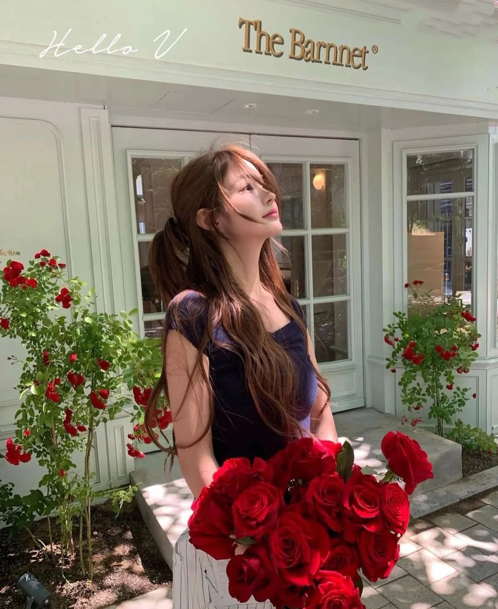 正韓 氣質甜美小花邊上衣*藍紅*【N0731-58】