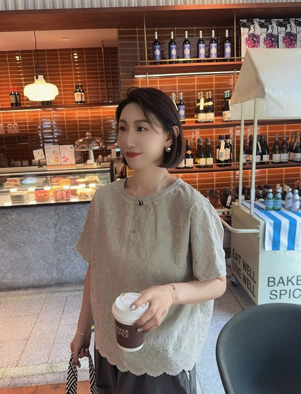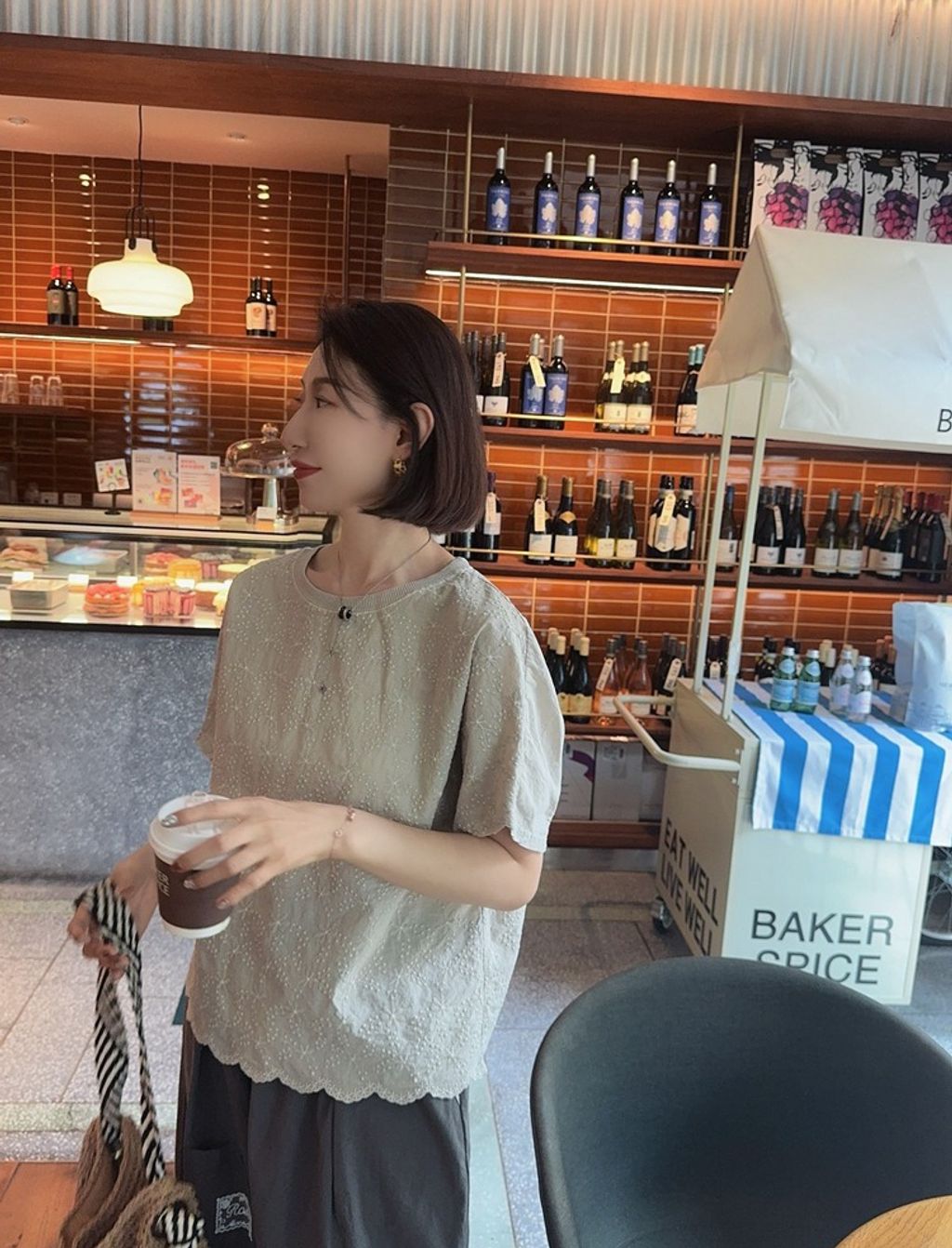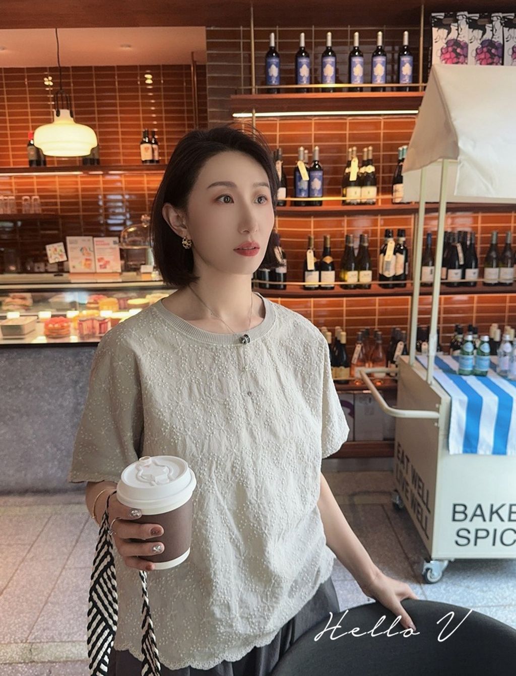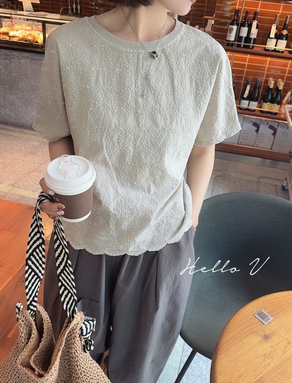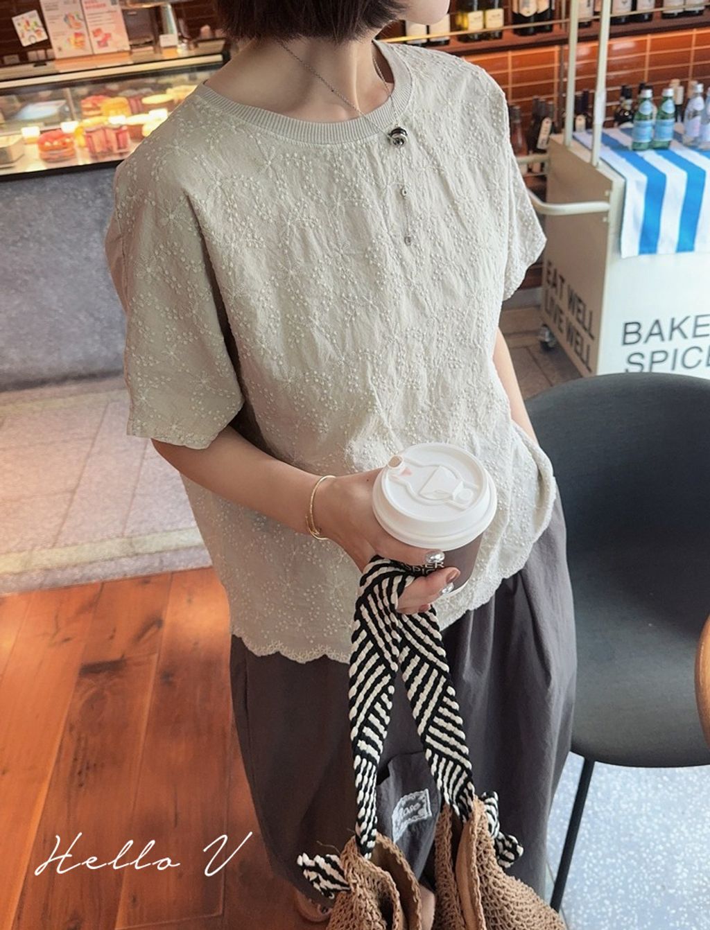 正韓 法式復古雕花刺繡質感上衣*淺灰*【N0731-99】
